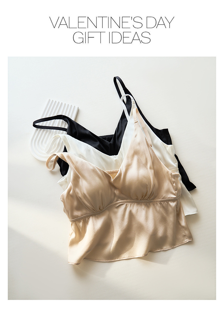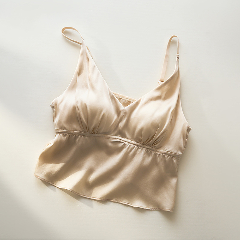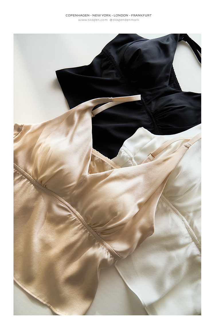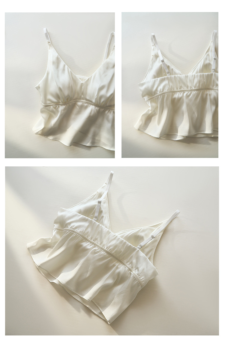 봄과 여름 편안한 프랑스 스타일 트라이앵글 컵 스틸 링없이 진짜 실크 브라 슬링 아름다운 백 뽕나무 실크 속옷 여성용 브래지어