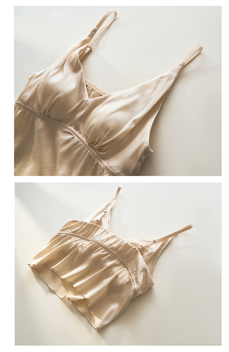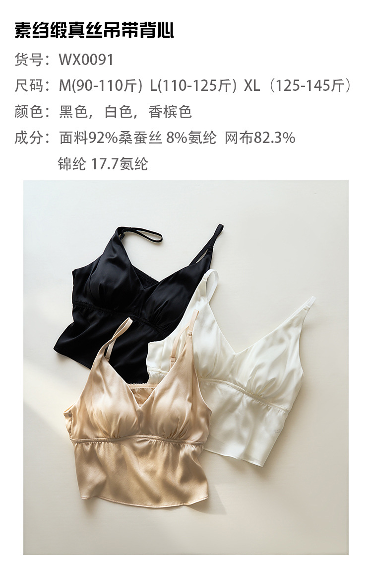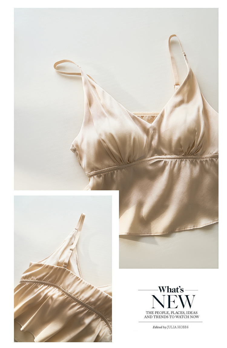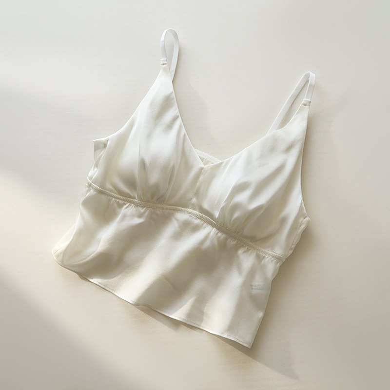 봄과 여름 편안한 프랑스 스타일 트라이앵글 컵 스틸 링없이 진짜 실크 브라 슬링 아름다운 백 뽕나무 실크 속옷 여성용 브래지어