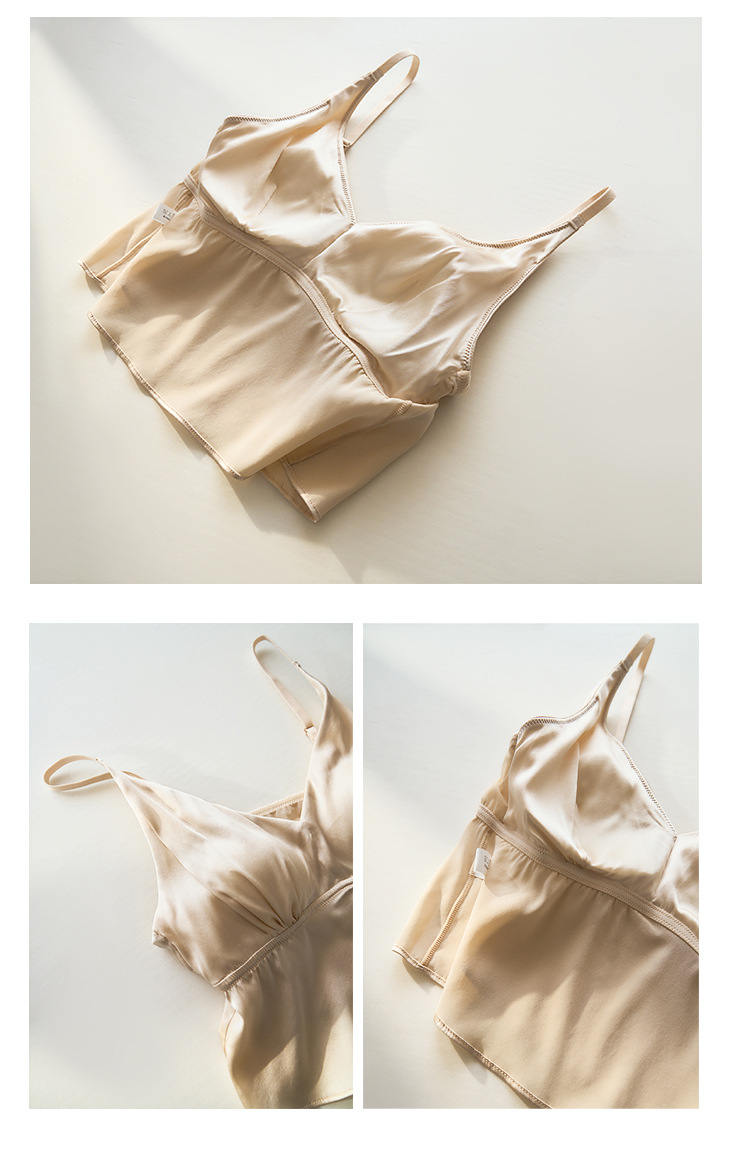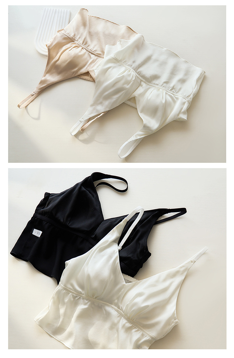 봄과 여름 편안한 프랑스 스타일 트라이앵글 컵 스틸 링없이 진짜 실크 브라 슬링 아름다운 백 뽕나무 실크 속옷 여성용 브래지어스토어 가기