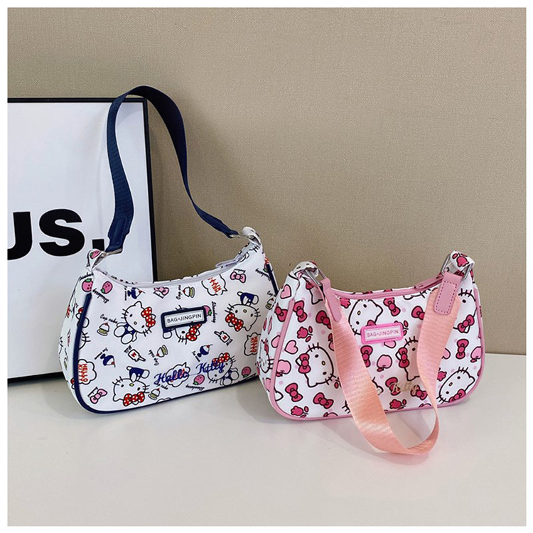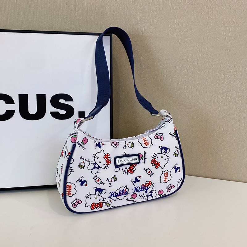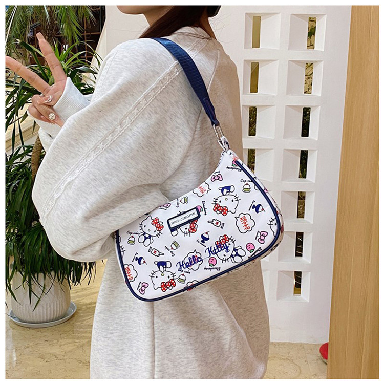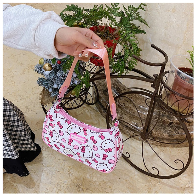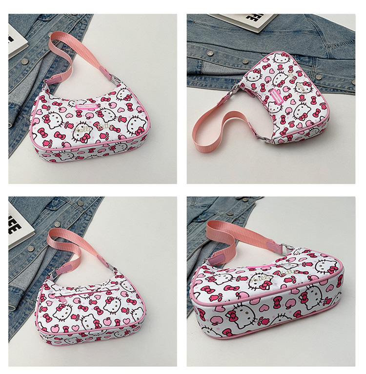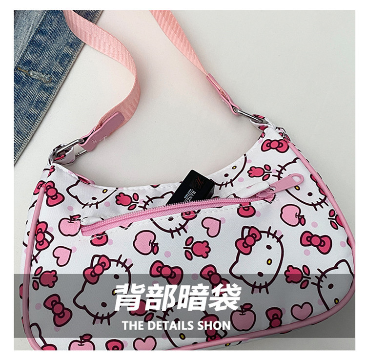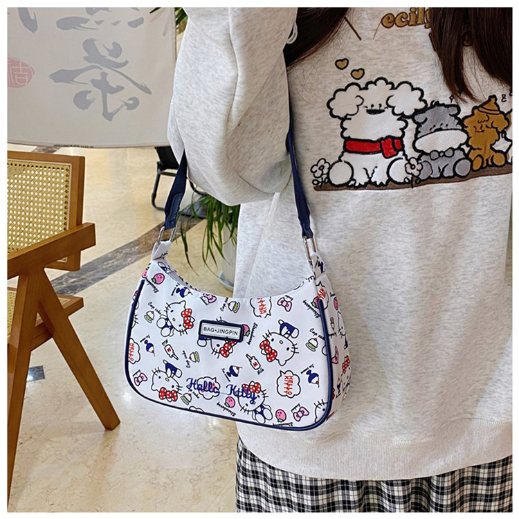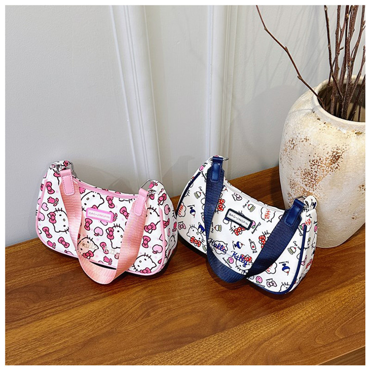 소녀 만화 스타일 KT 고양이 크로스 바디 백 2025 봄과 여름 새로운 도착 여성을위한 귀여운 하이 숄더 언더암 가방 핸드백스토어 가기
