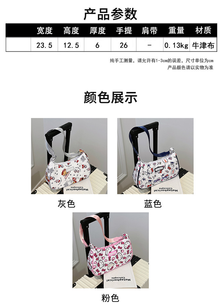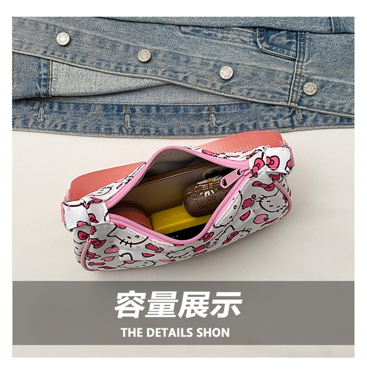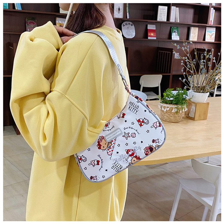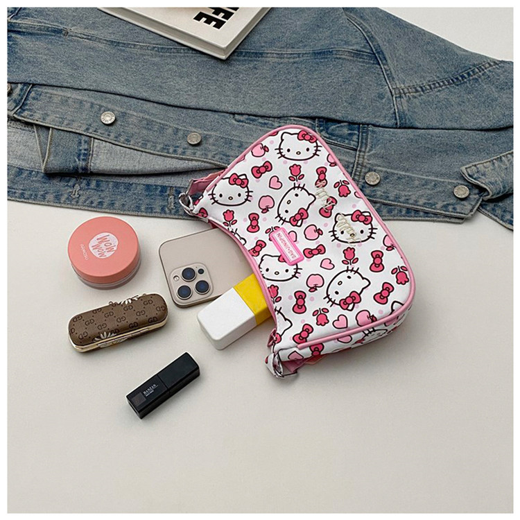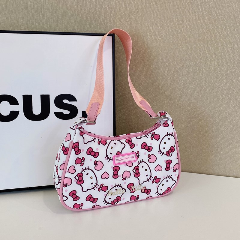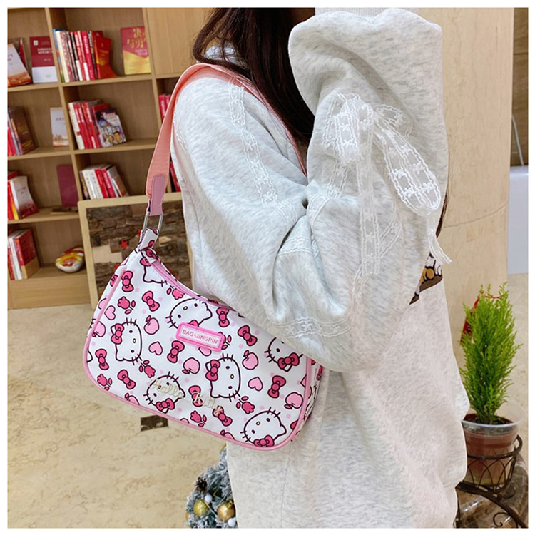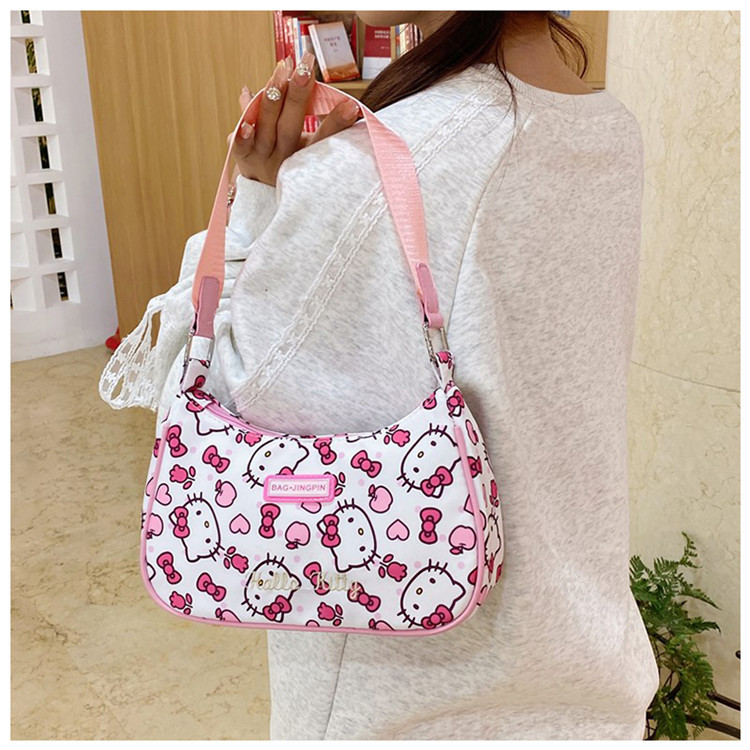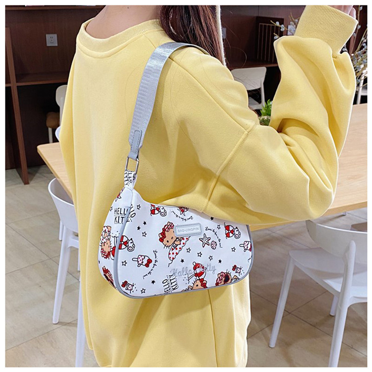 소녀 만화 스타일 KT 고양이 크로스 바디 백 2025 봄과 여름 새로운 도착 여성을위한 귀여운 하이 숄더 언더암 가방 핸드백스토어 가기