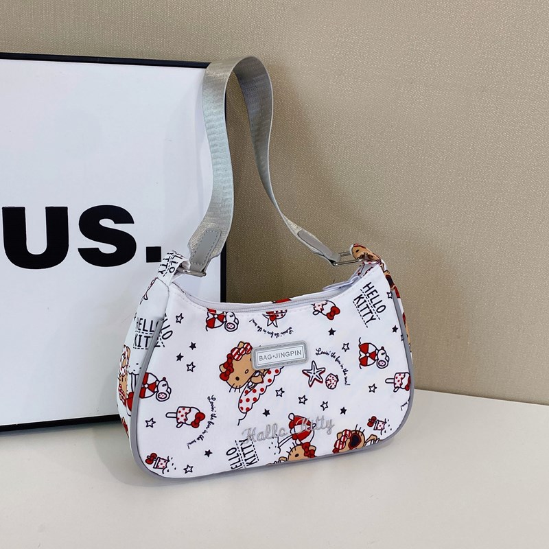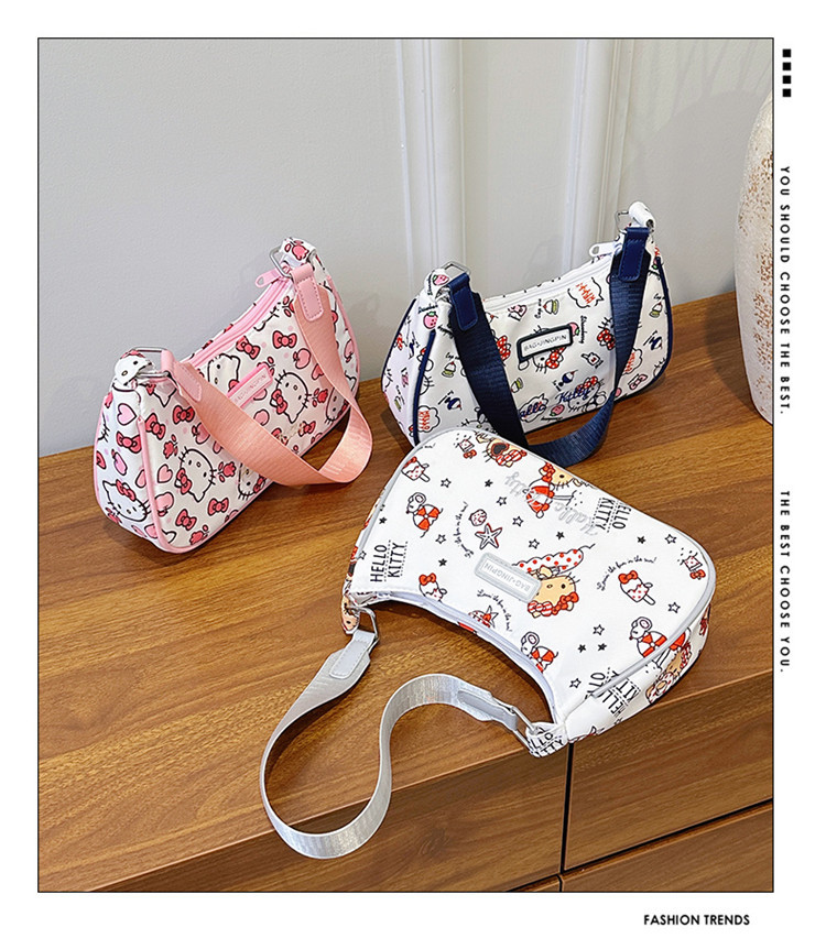 소녀 만화 스타일 KT 고양이 크로스 바디 백 2025 봄과 여름 새로운 도착 여성을위한 귀여운 하이 숄더 언더암 가방 핸드백