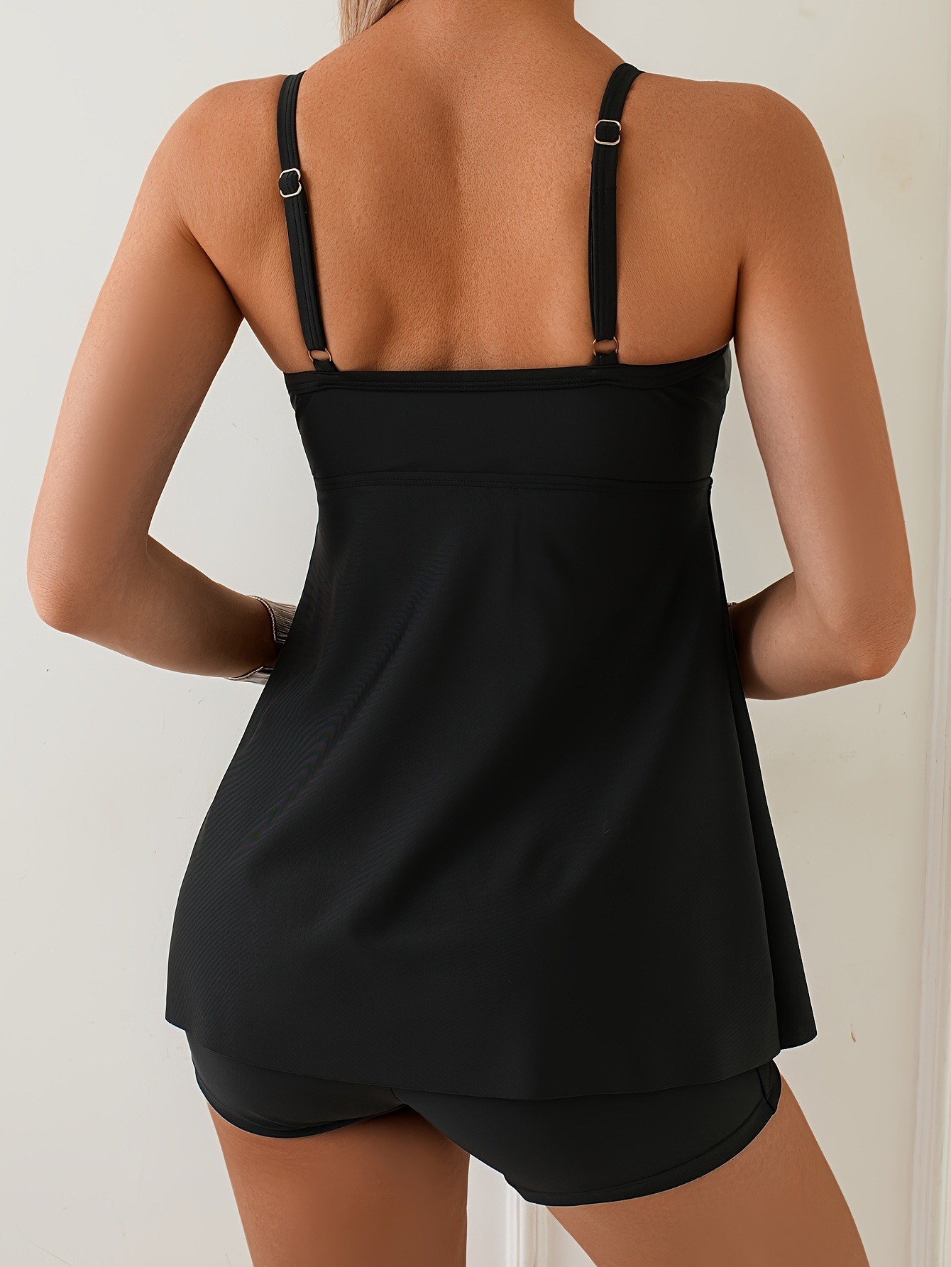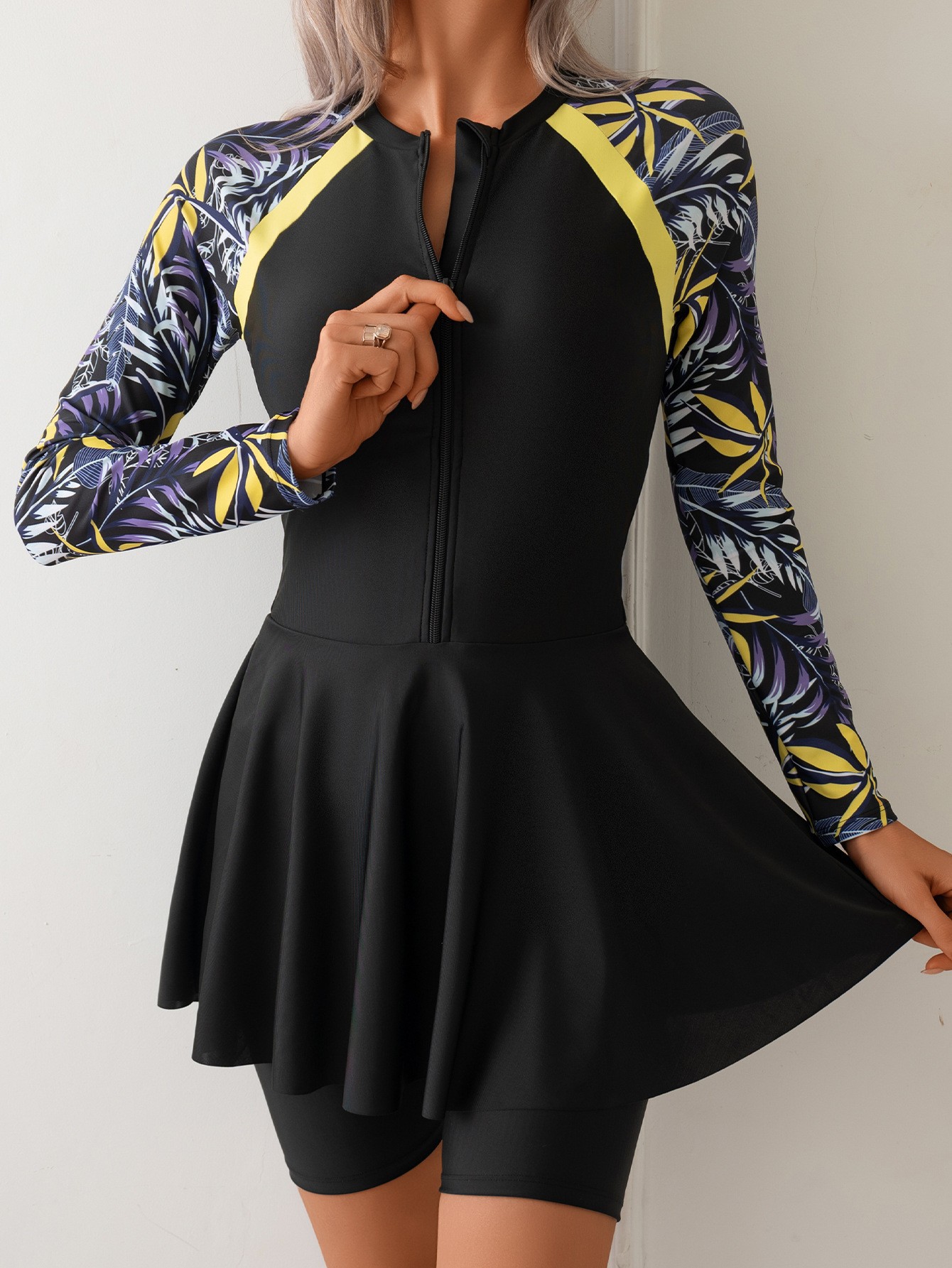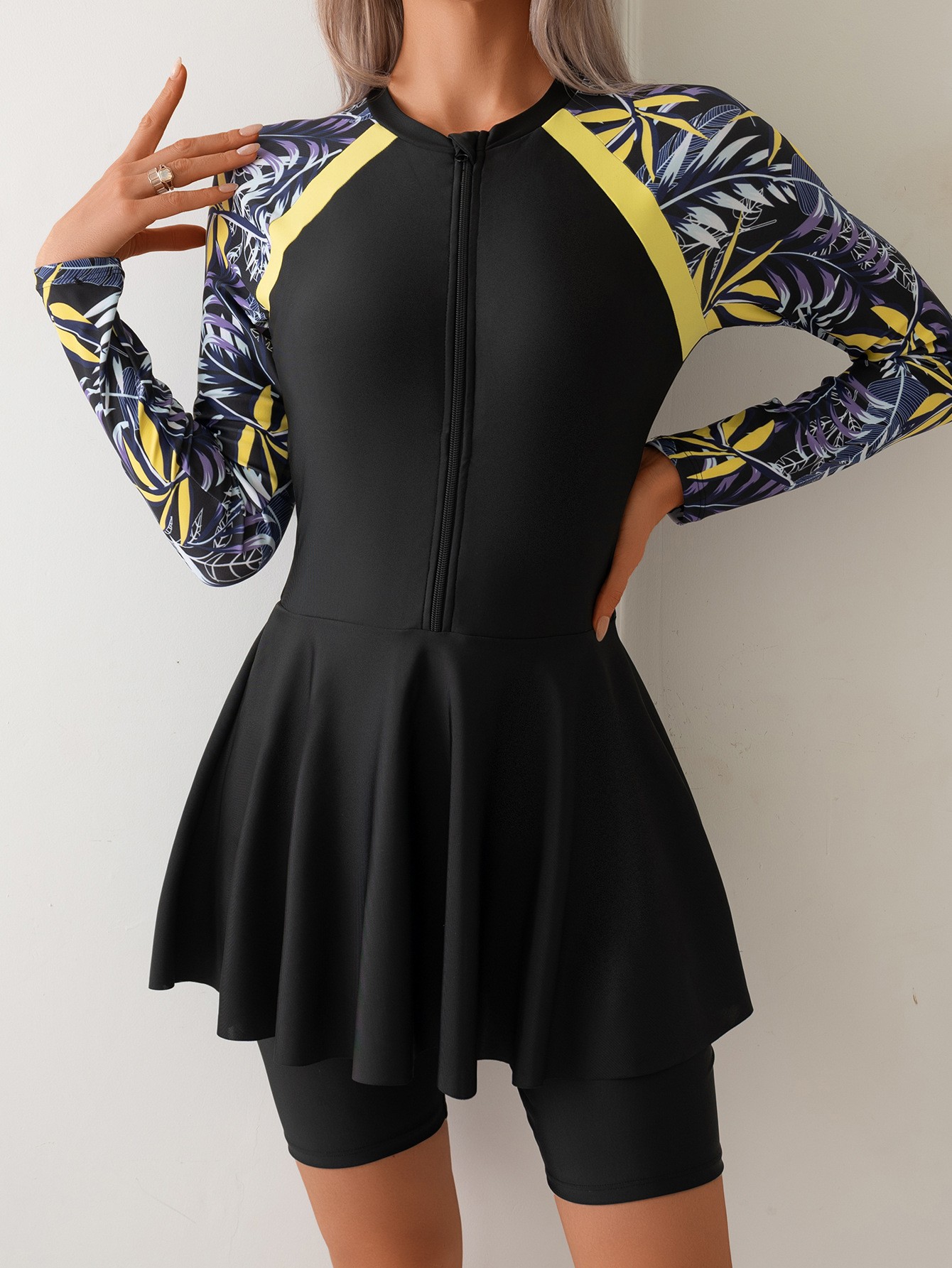 국경 간 새로운 유럽과 미국의 단색 수영복 스플릿 스커트 복서 팬티 아마존 보수적 인 수영복