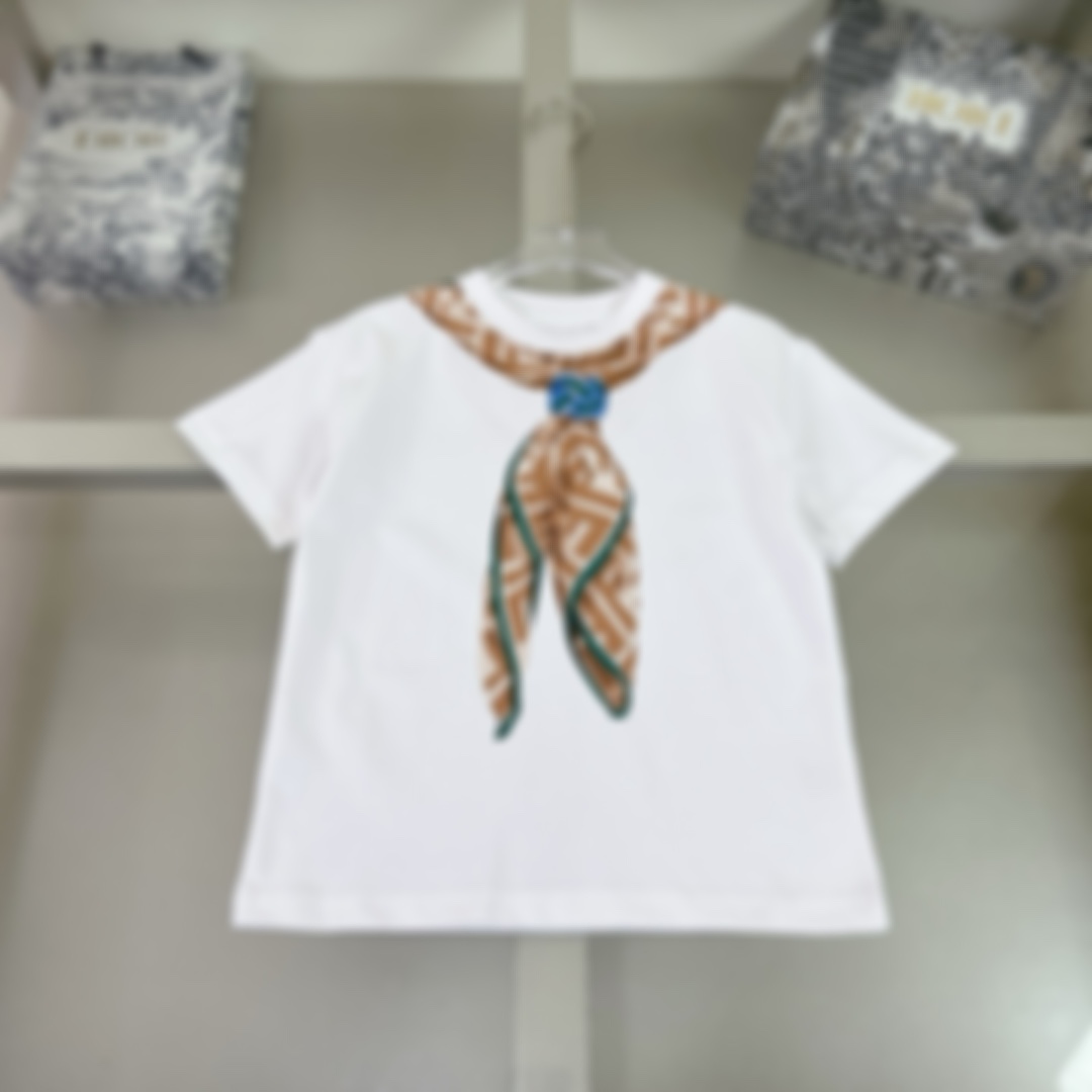 2025 새로운 여름 티셔츠 반팔 디지털 인쇄 실크 스카프 소녀 반팔 티셔츠 어린이 반팔 티셔츠 세트스토어 가기