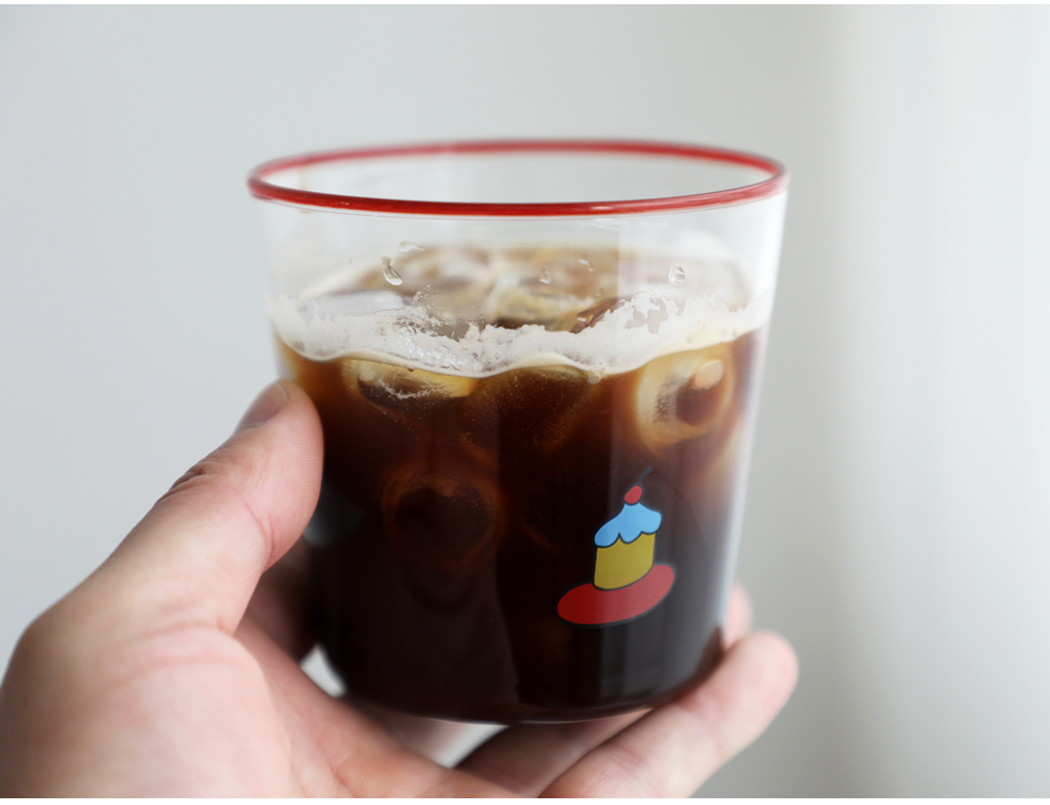 다채로운 여름 유리 귀여운 핸디 컵 레드 블루 노란색 반지 그림 머그잔 원래 라떼 아이스 커피 컵스토어 가기