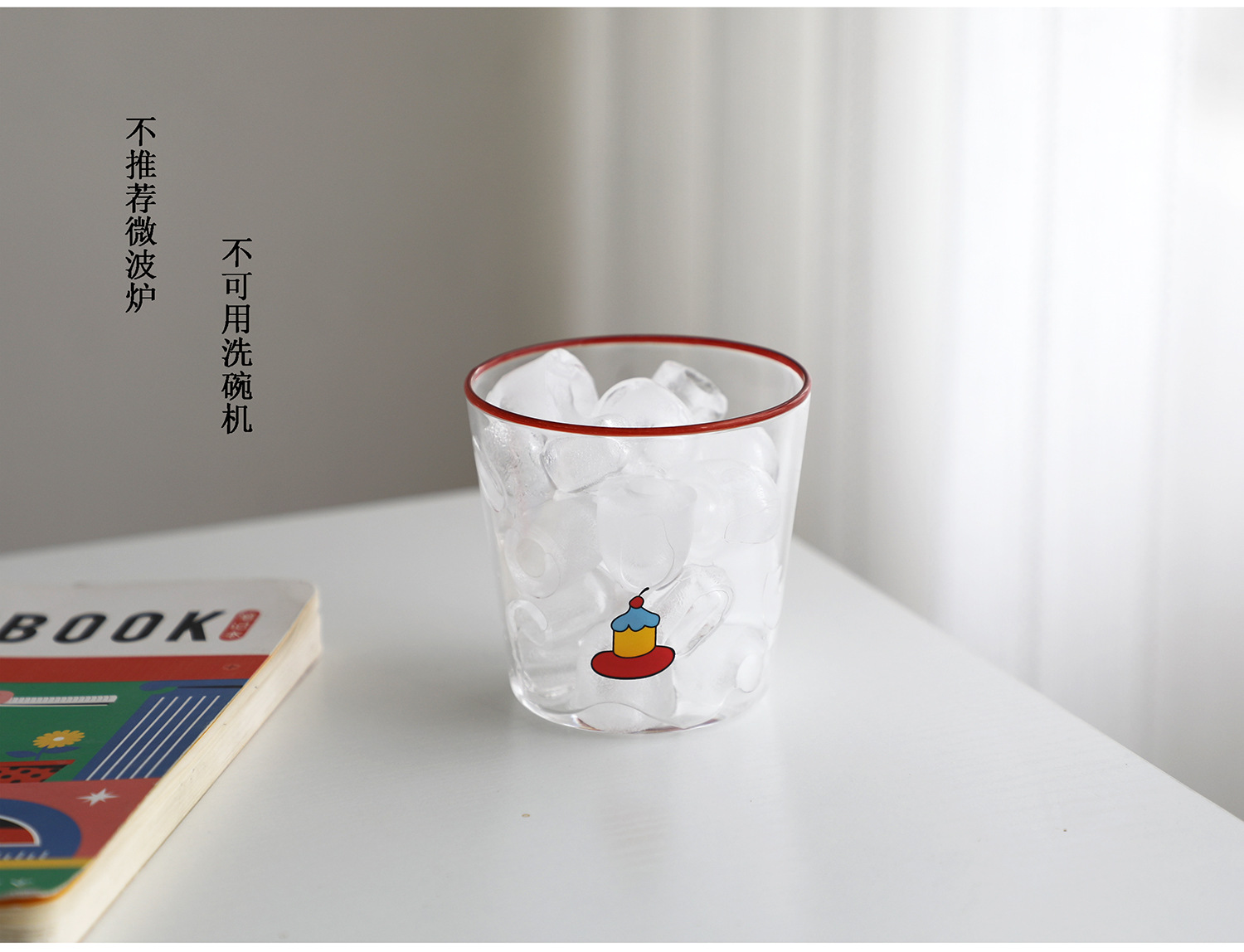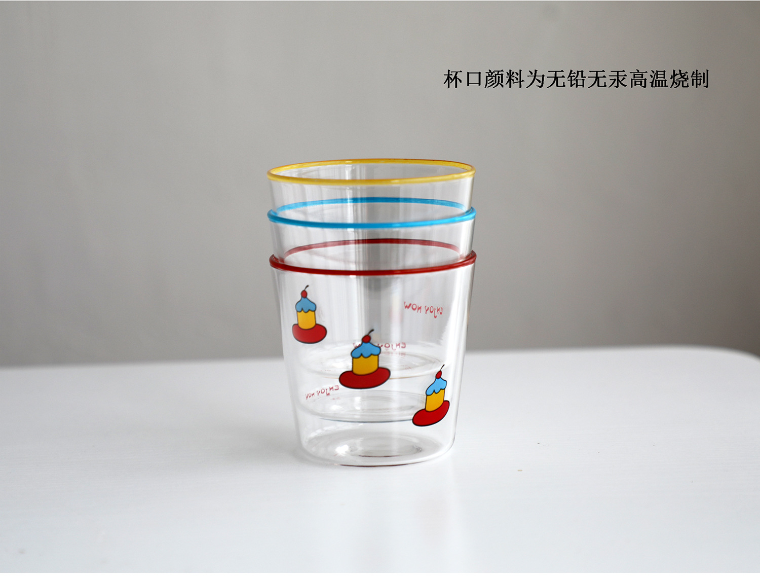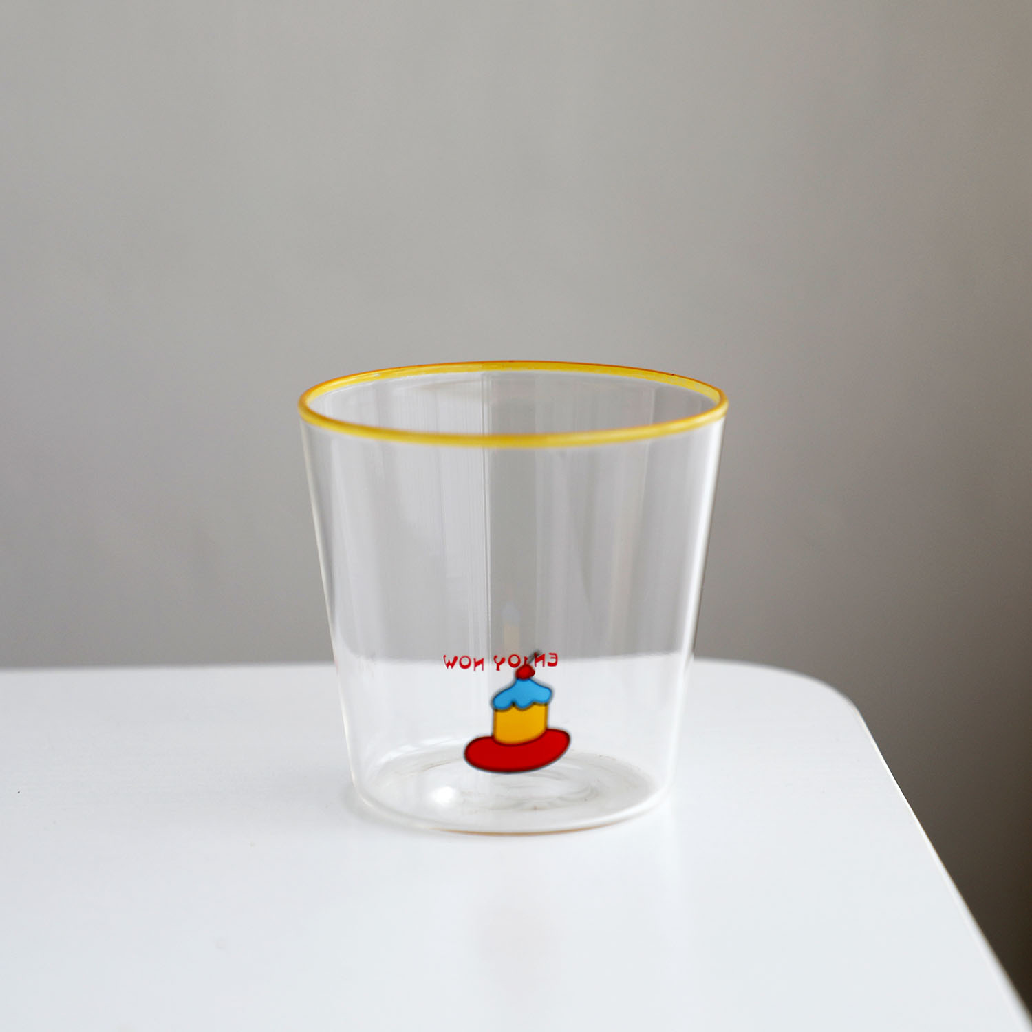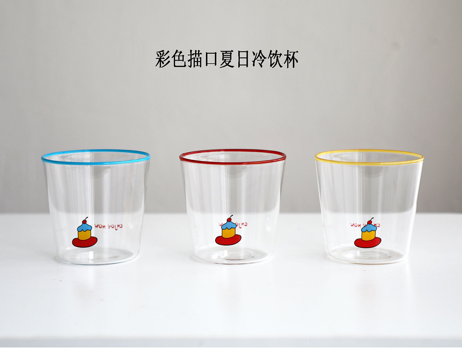 다채로운 여름 유리 귀여운 핸디 컵 레드 블루 노란색 반지 그림 머그잔 원래 라떼 아이스 커피 컵
