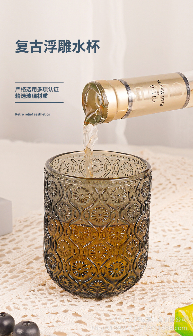 공장 도매 유럽풍 레트로 외국 무역 호텔 구강 세정컵 엠보싱 주스컵 두꺼운 유리 우유컵 물컵