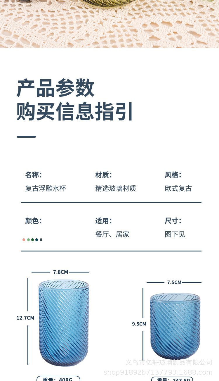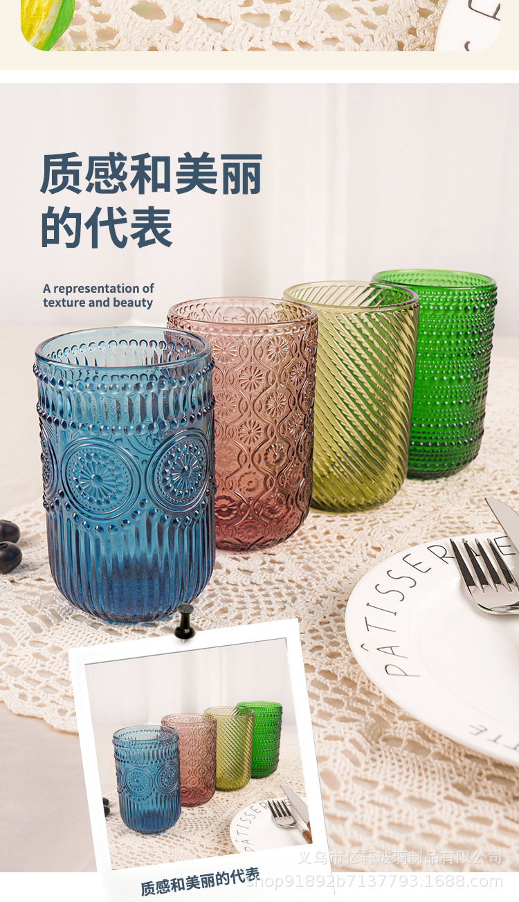 공장 도매 유럽풍 레트로 외국 무역 호텔 구강 세정컵 엠보싱 주스컵 두꺼운 유리 우유컵 물컵스토어 가기