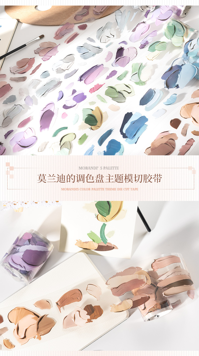 Morandi의 팔레트 다이 커팅 테이프 안료 패턴 손 계정 예술적 조커 장식 DIY 크리에이티브 콜라주