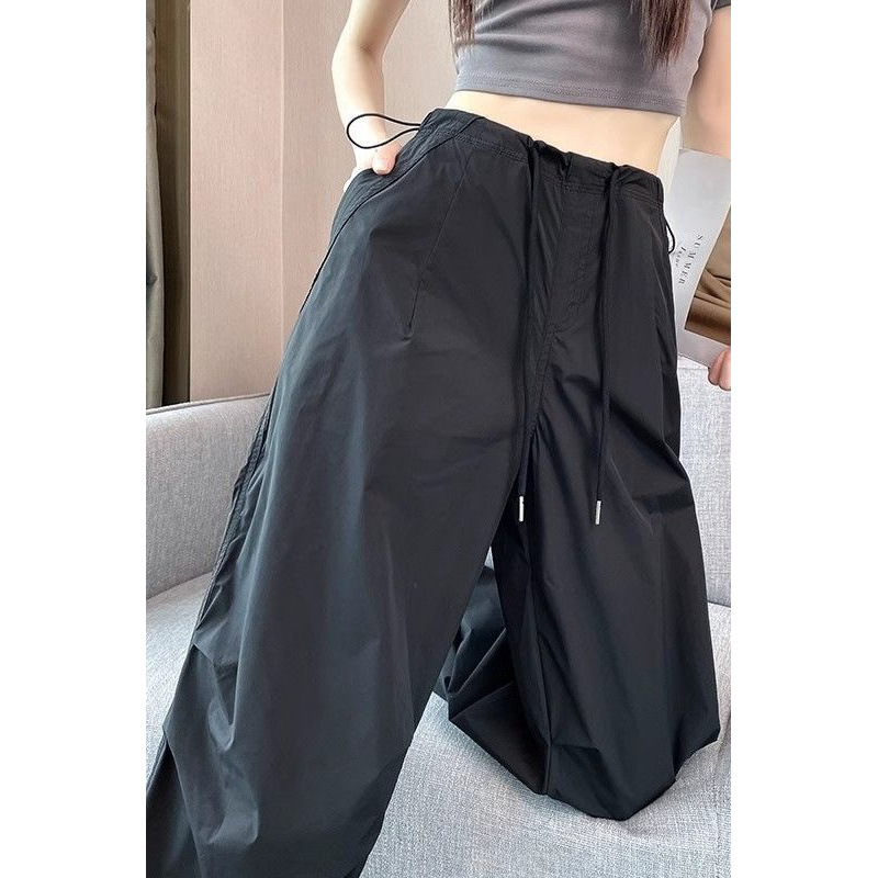 여성용 아메리칸 스타일 속건성 작업복, 여름 로우 웨이스트 드로스트링 디자인, 투웨어 레깅스 스웨트팬츠, 루즈한 캐주얼 하이킹 팬츠