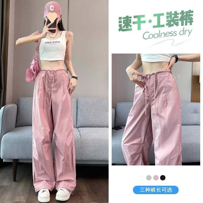 여성용 아메리칸 스타일 속건성 작업복, 여름 로우 웨이스트 드로스트링 디자인, 투웨어 레깅스 스웨트팬츠, 루즈한 캐주얼 하이킹 팬츠스토어 가기