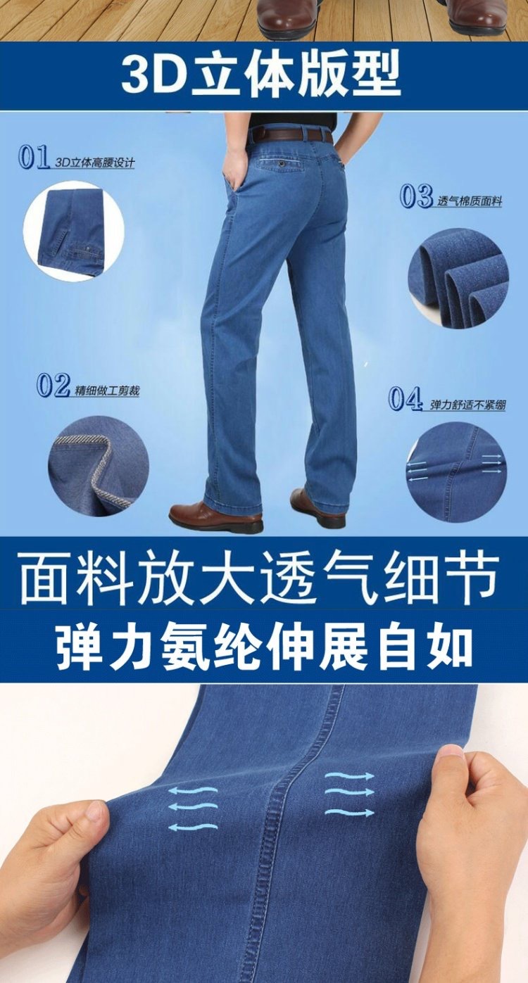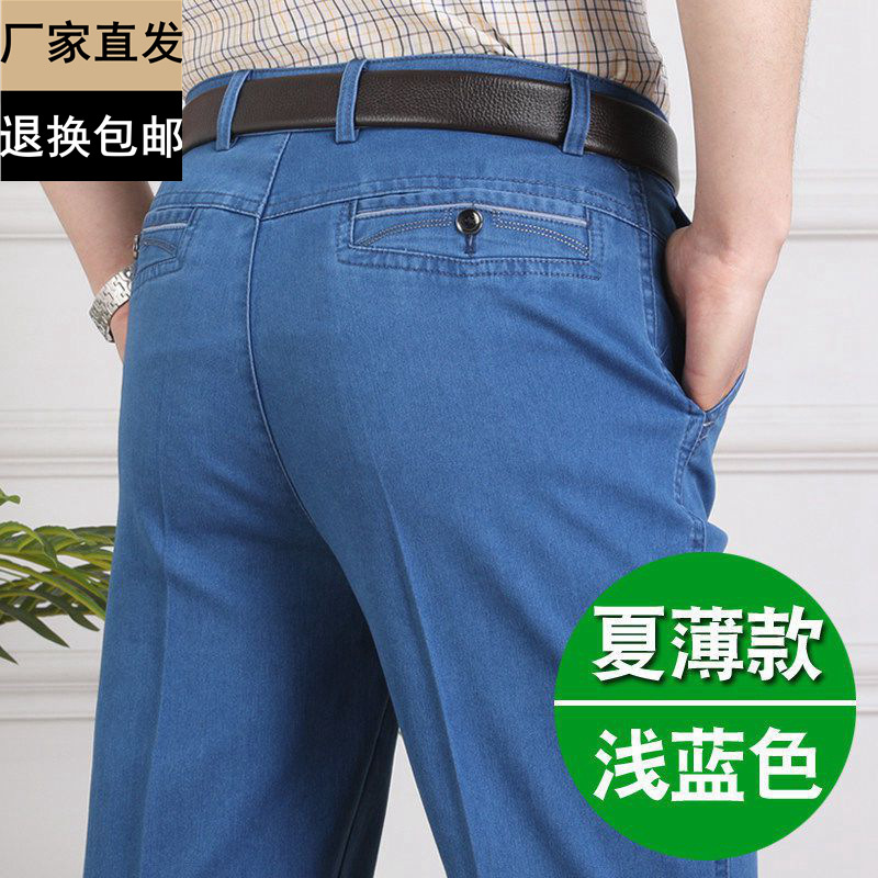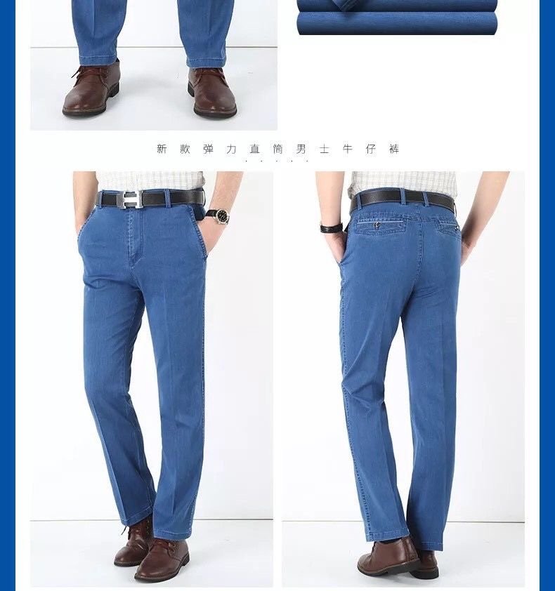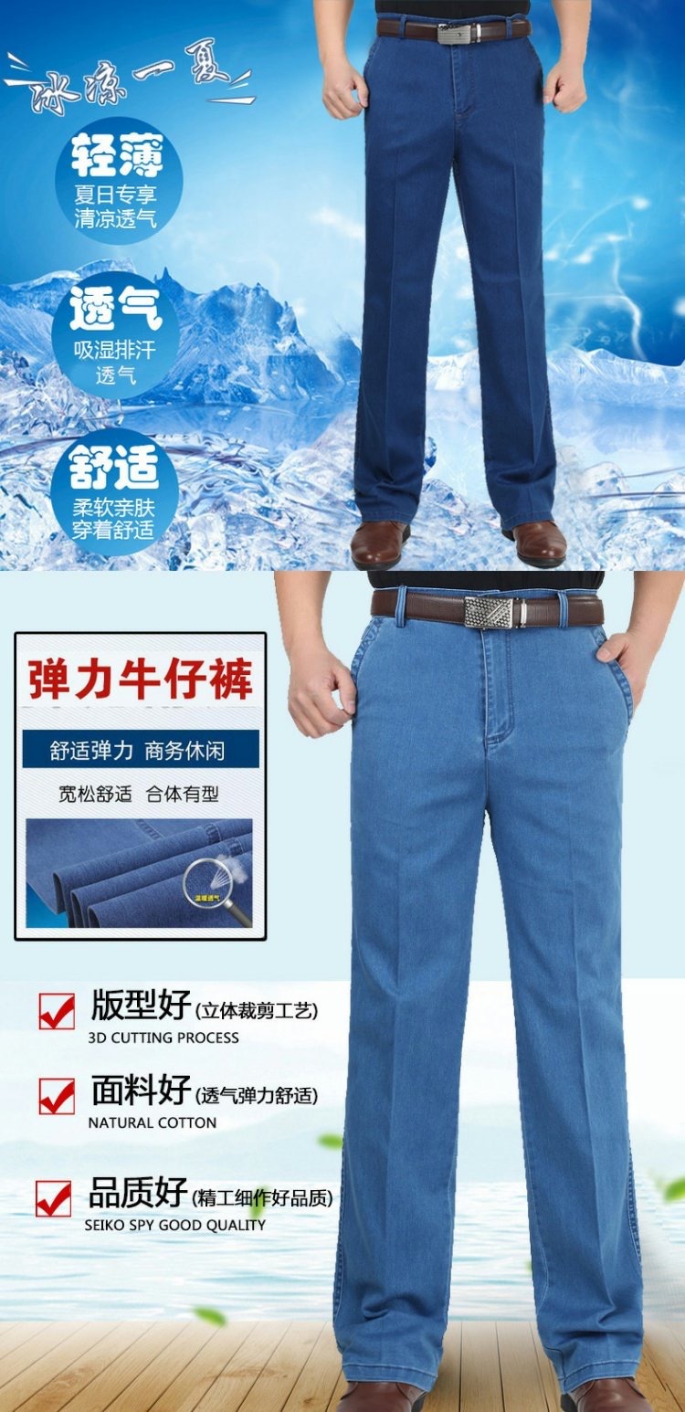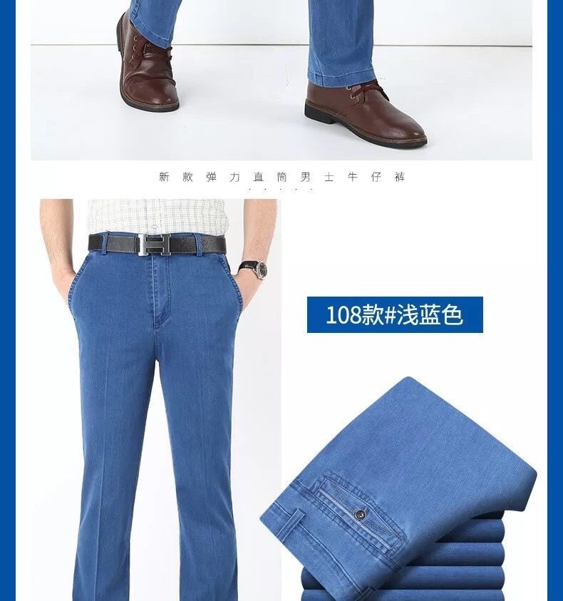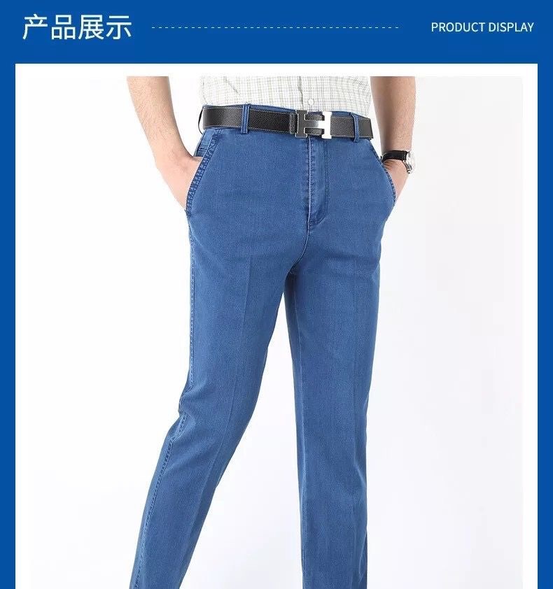 중년 아이스 실크 청바지 남성 여름 얇은 느슨한 스트레이트 스트레치 2025 새로운 비즈니스 캐주얼 긴 바지스토어 가기