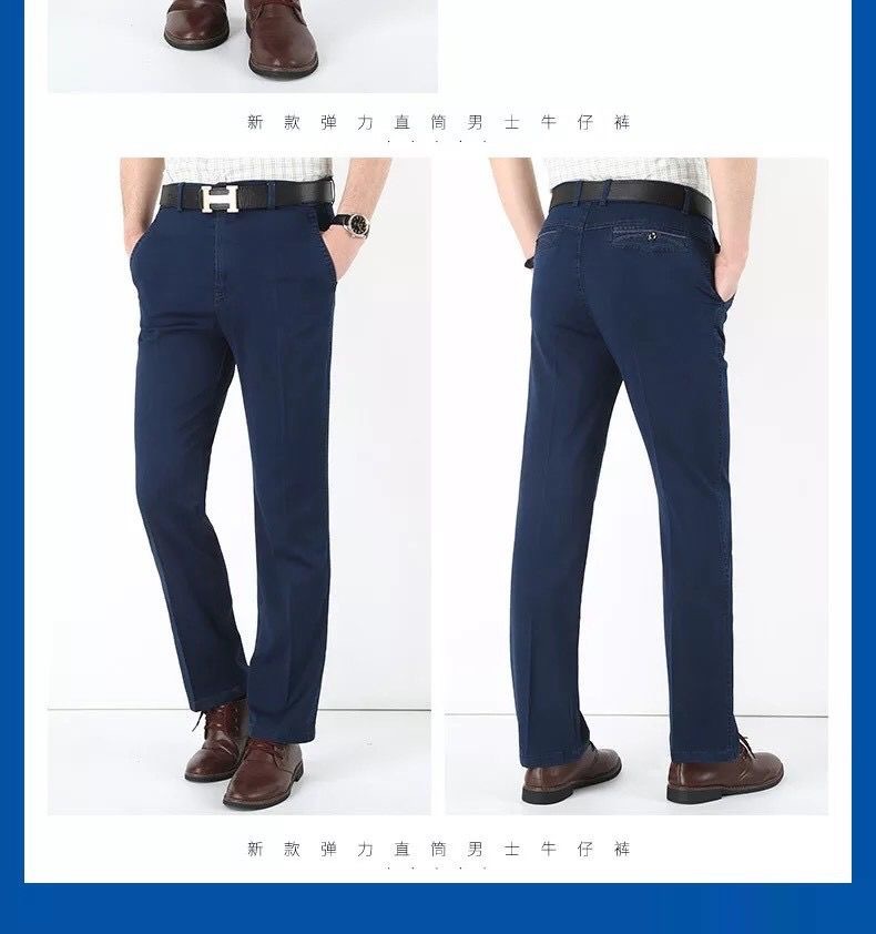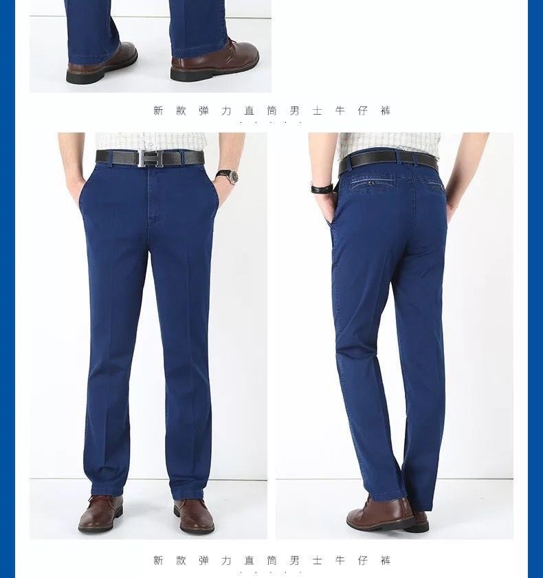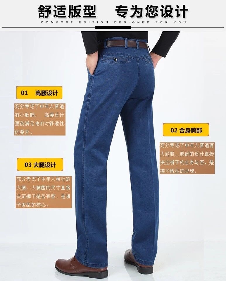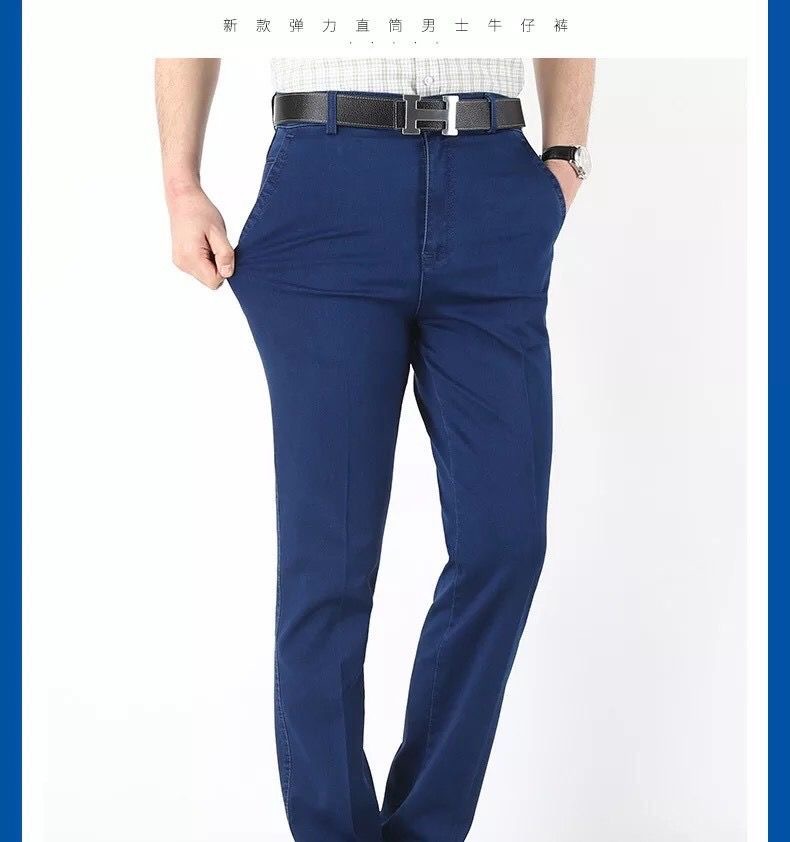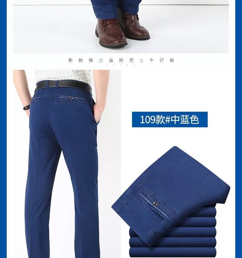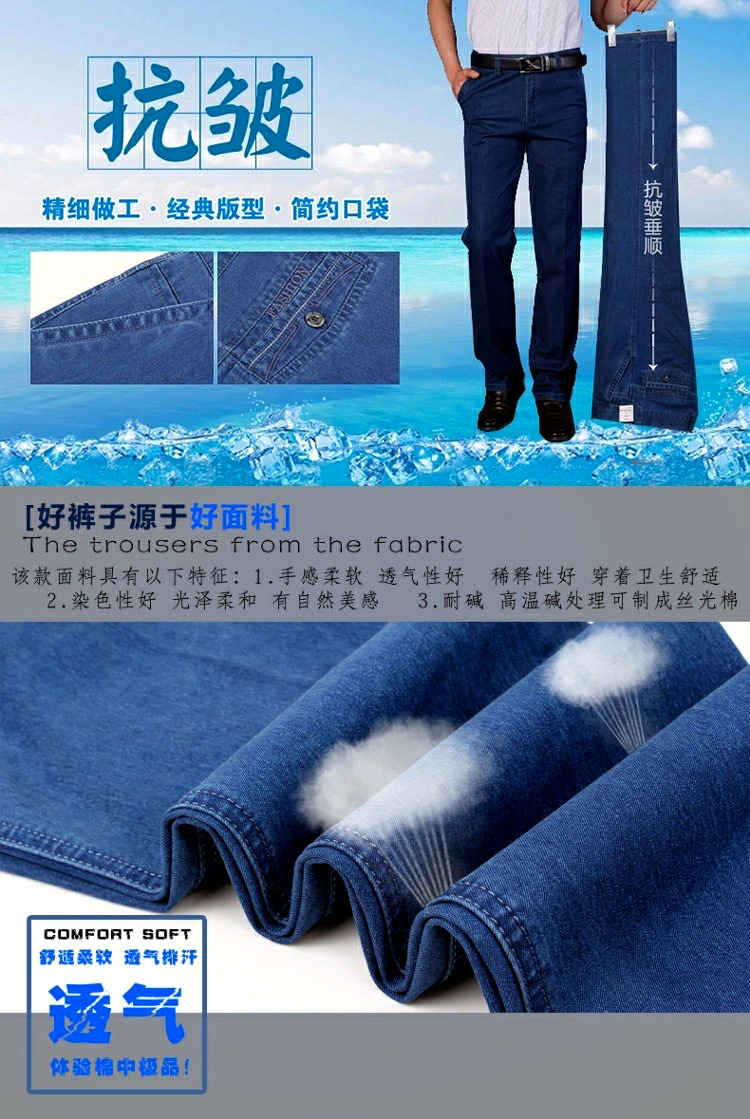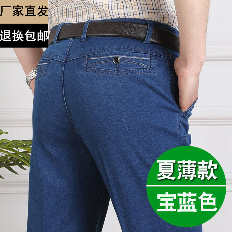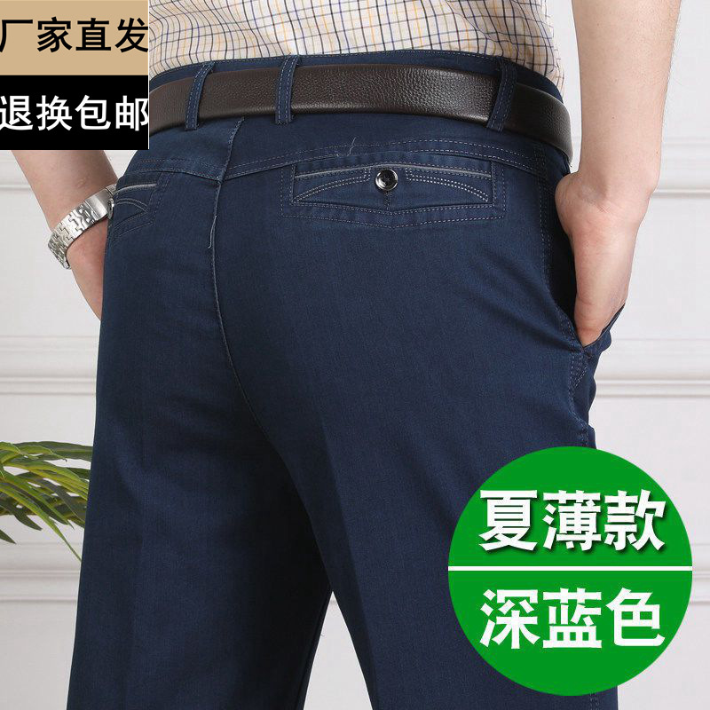 중년 아이스 실크 청바지 남성 여름 얇은 느슨한 스트레이트 스트레치 2025 새로운 비즈니스 캐주얼 긴 바지스토어 가기