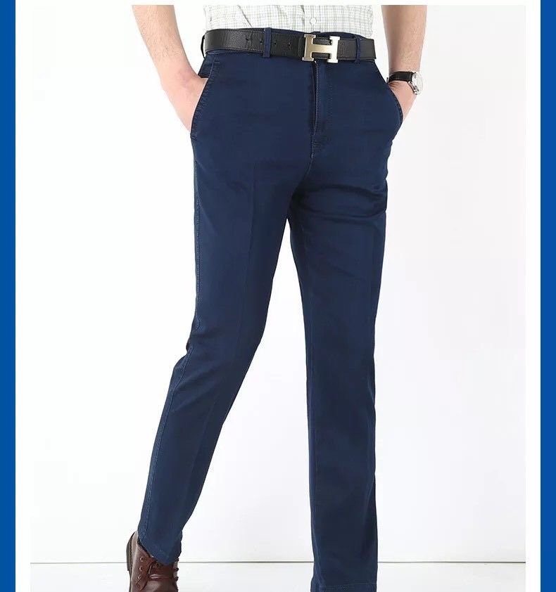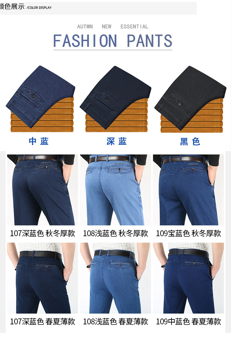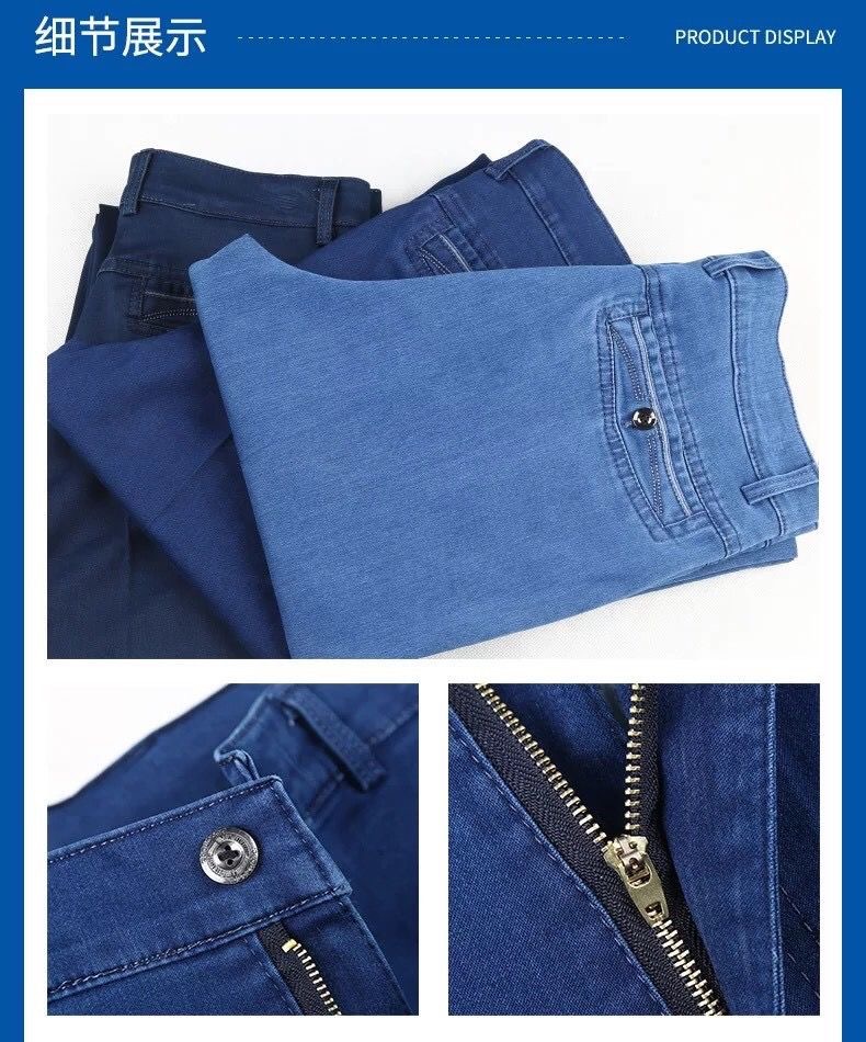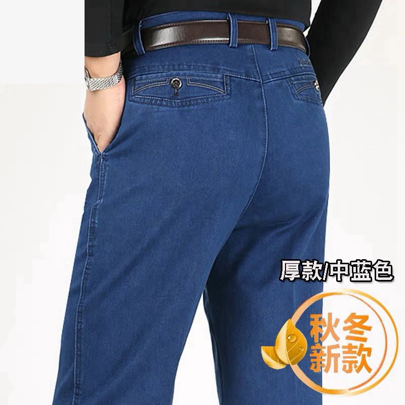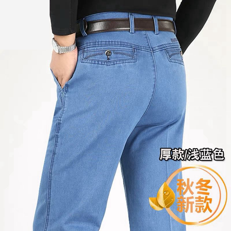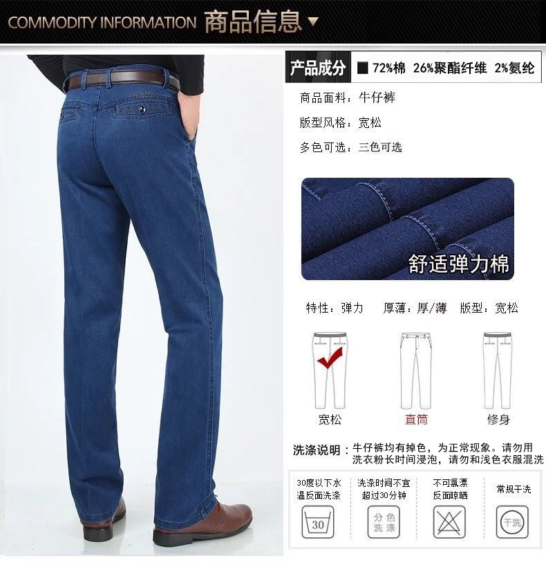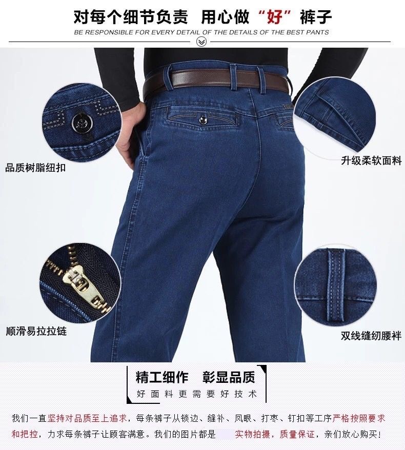 중년 아이스 실크 청바지 남성 여름 얇은 느슨한 스트레이트 스트레치 2025 새로운 비즈니스 캐주얼 긴 바지스토어 가기