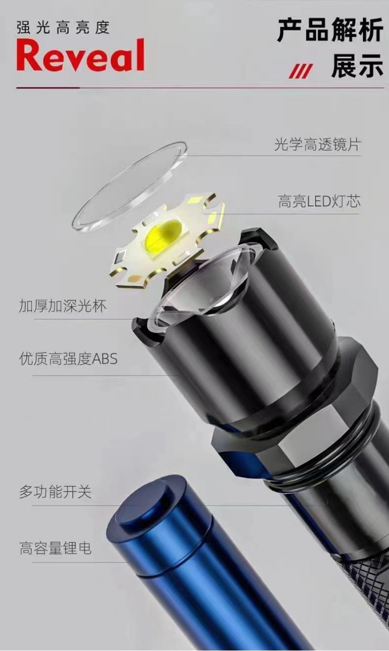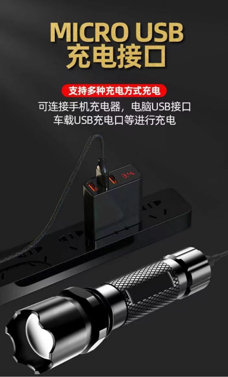 국경 간 LED 밝은 손전등 USB 충전식 미니 조명 휴대용 초고휘도 포켓 장거리 야외 손전등