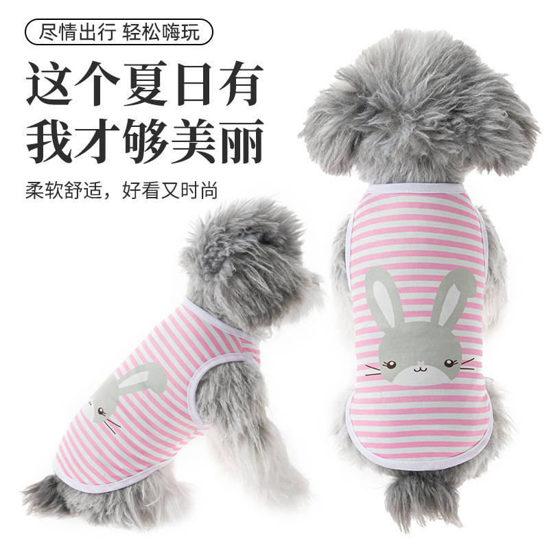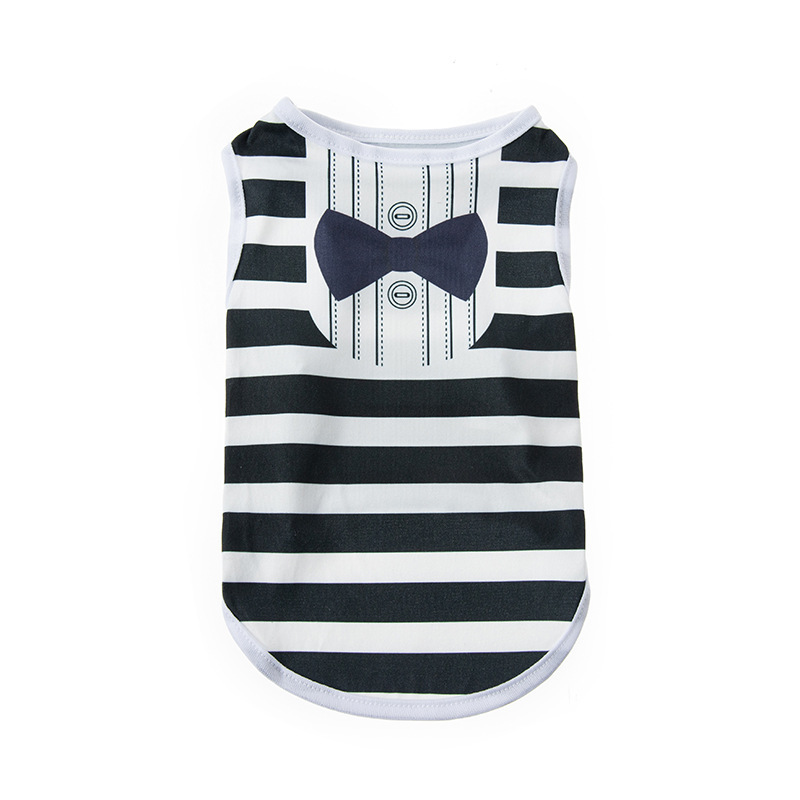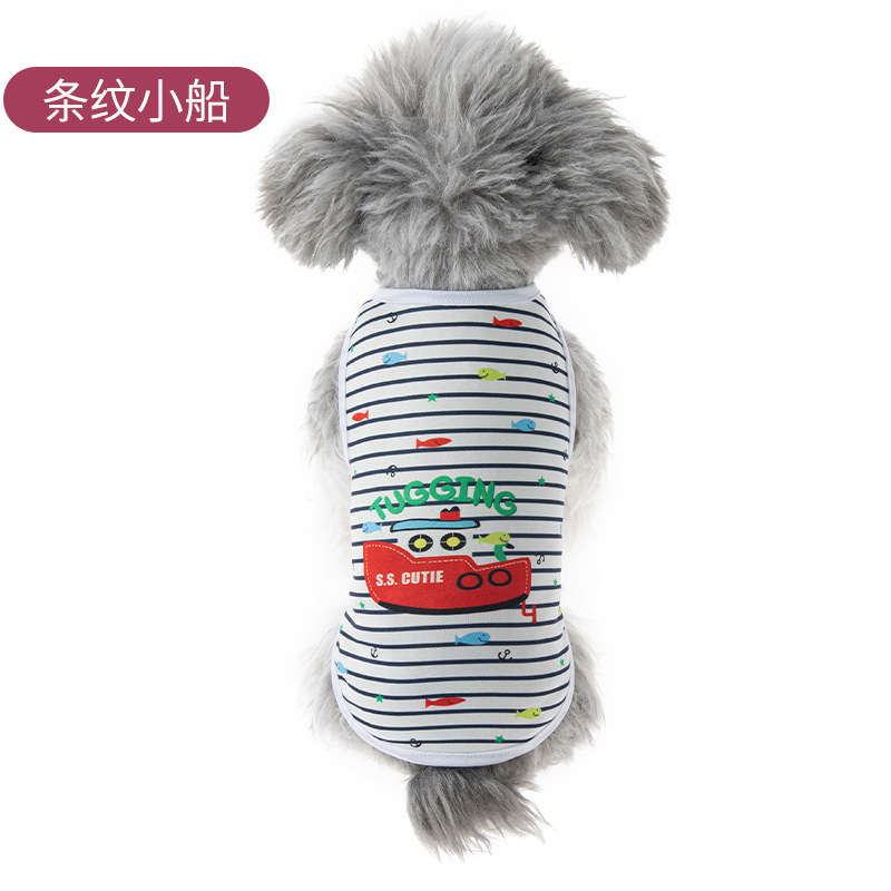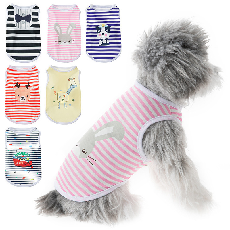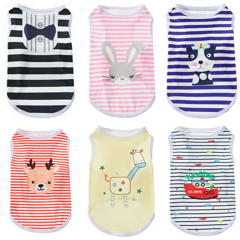 애완견 의류 고양이 의류 인기 상품 봄 여름 공용 프린트 반팔 스트라이프