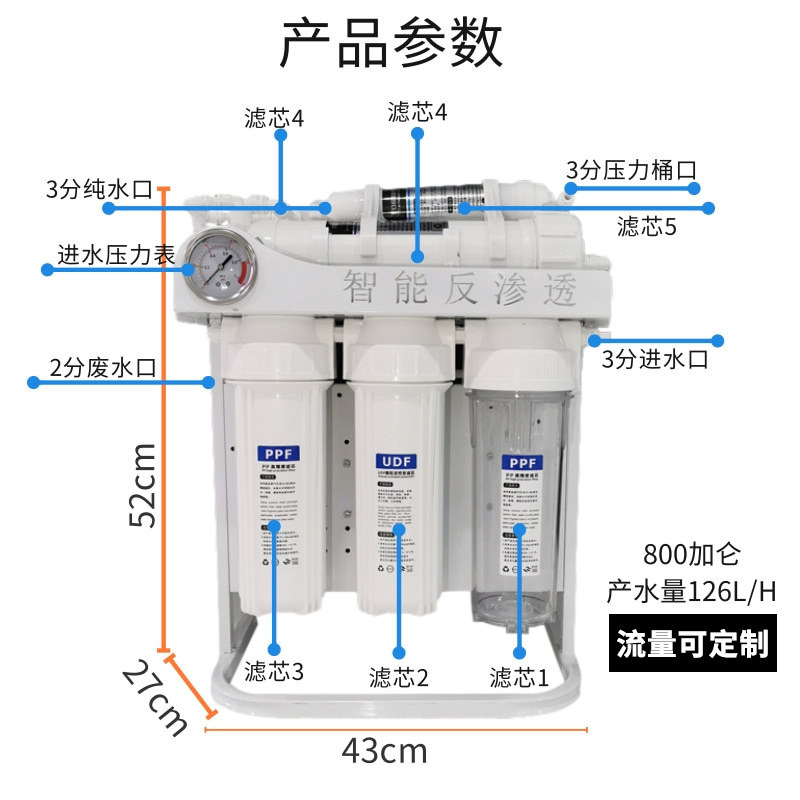 DIY 정수기 1200G 대형 흐름 직접 마시는 기계 가정용 버킷리스 필터 주방 RO 역삼투 정수기스토어 가기