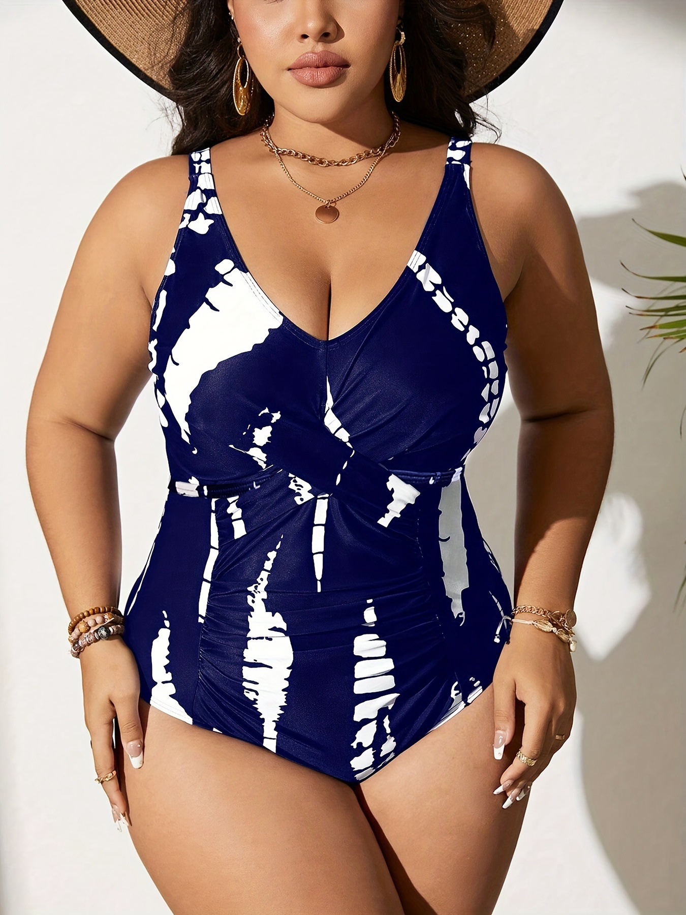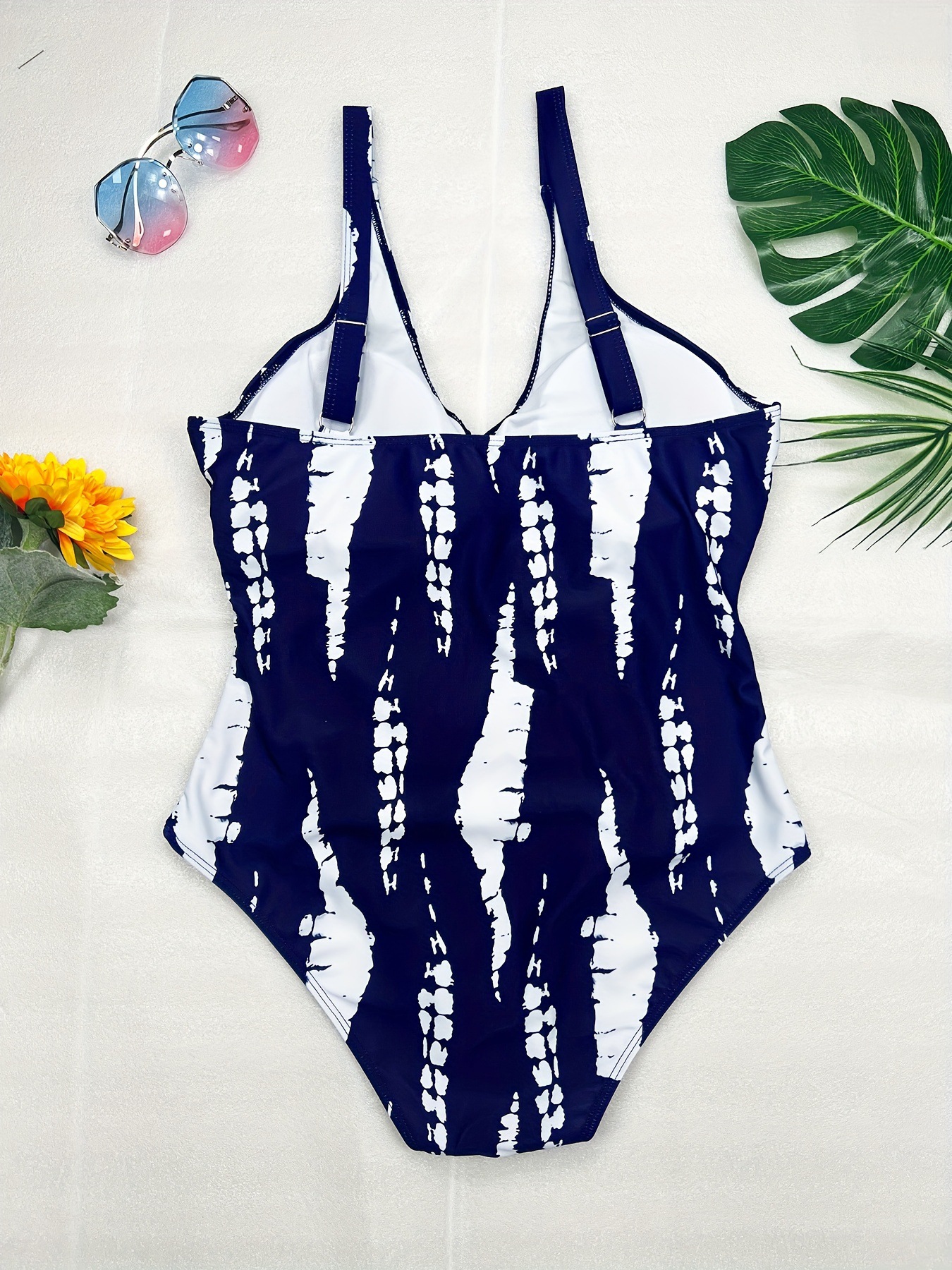 2025 새로운 디지털 인쇄 플러스 사이즈 원피스 수영복 여성 유럽과 미국의 섹시한 레이스 업 백리스 비키니 수영복 크로스 국경