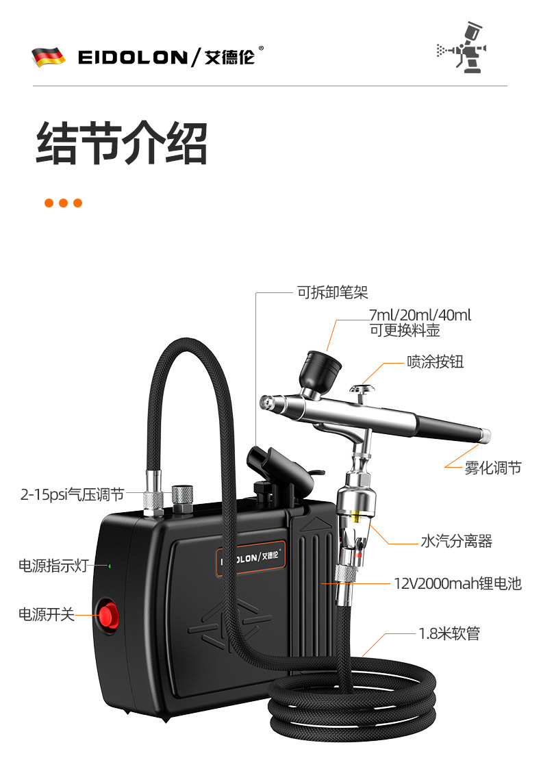 • [플러그인 모델] 미니 에어펌프 화이트-0.3+0.5mm 듀얼 에어브러시 세트