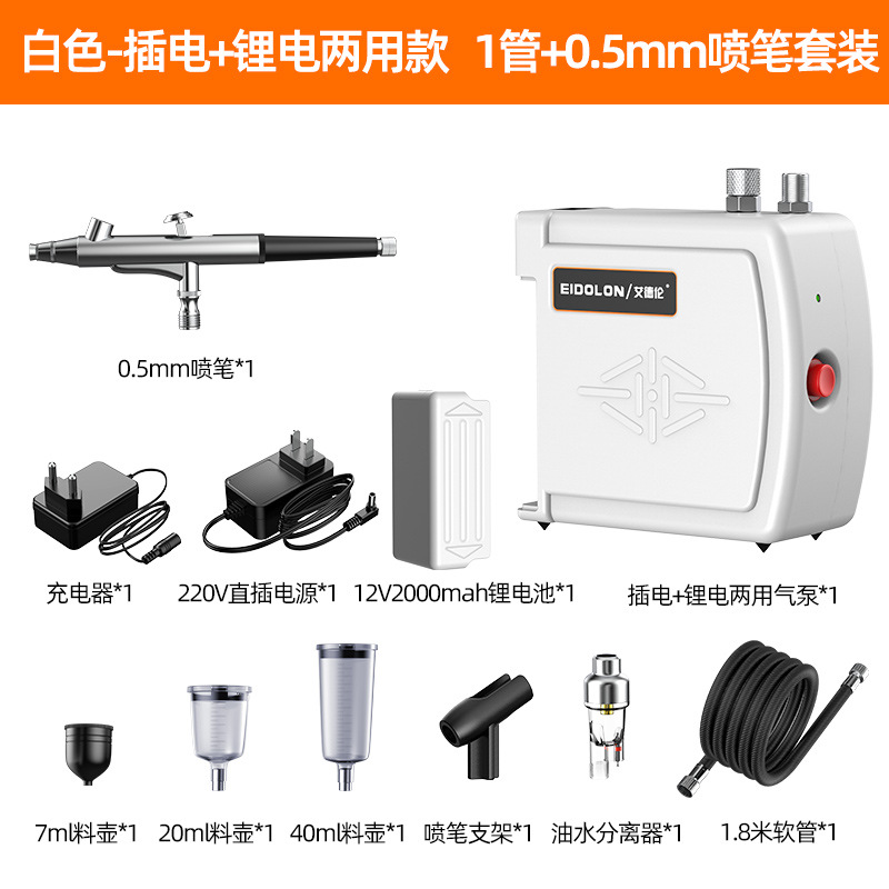 • [플러그인+리튬배터리 겸용모델] 미니에어펌프 화이트-0.3+0.5mm 듀얼 에어브러시 세트