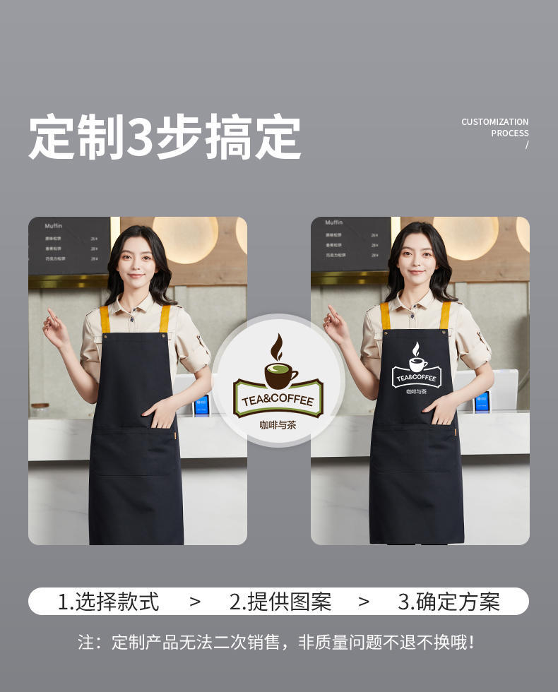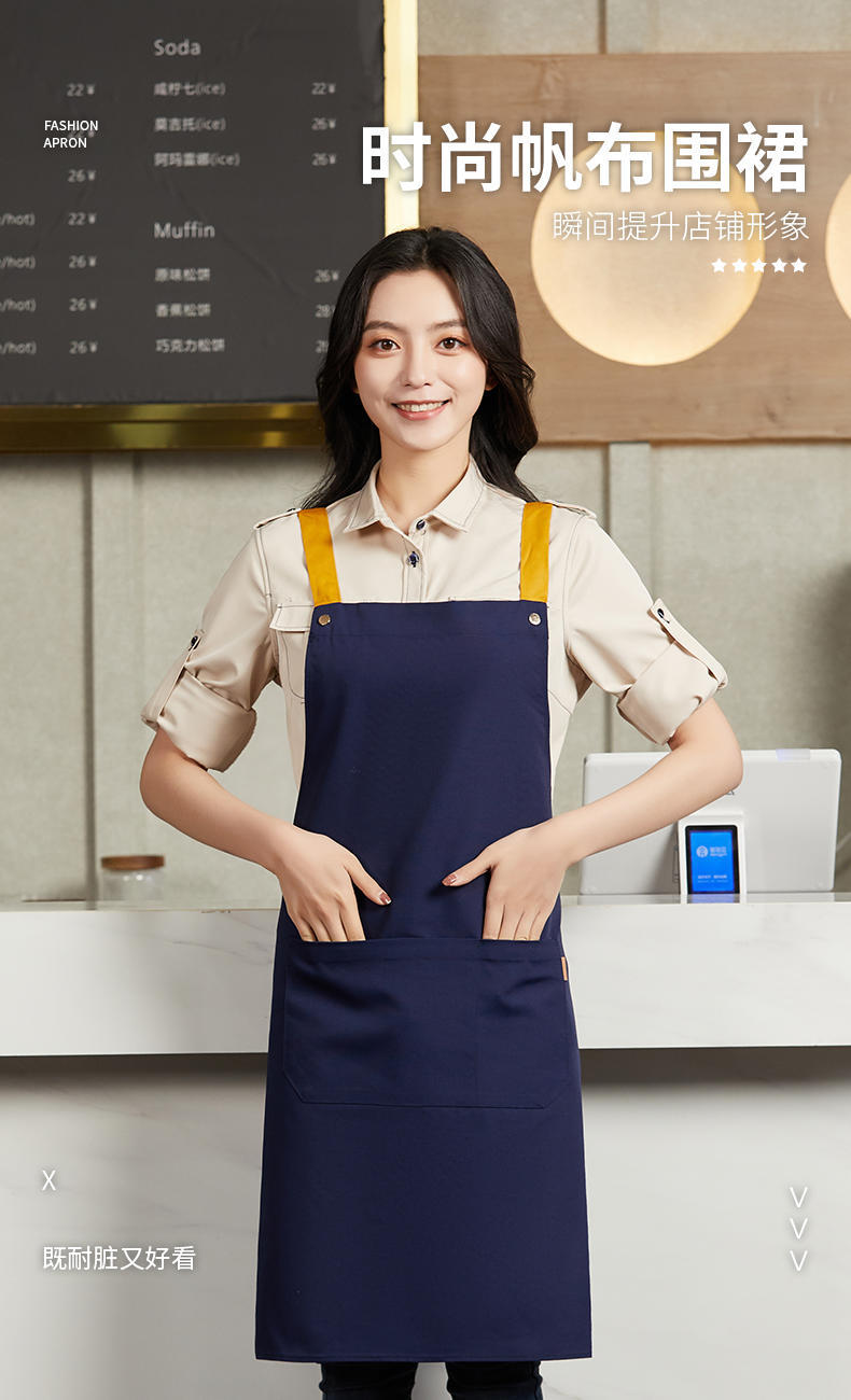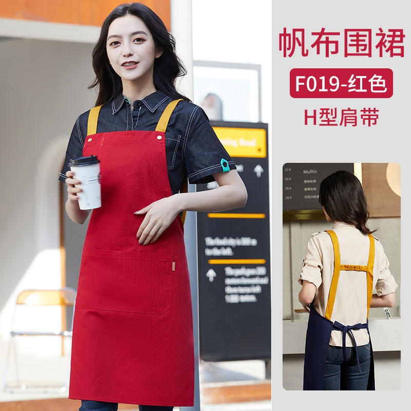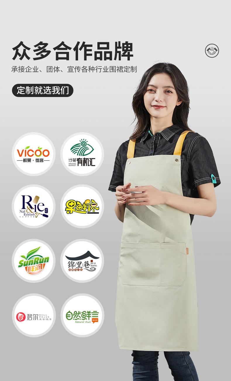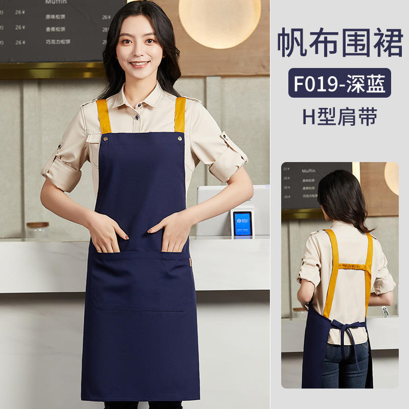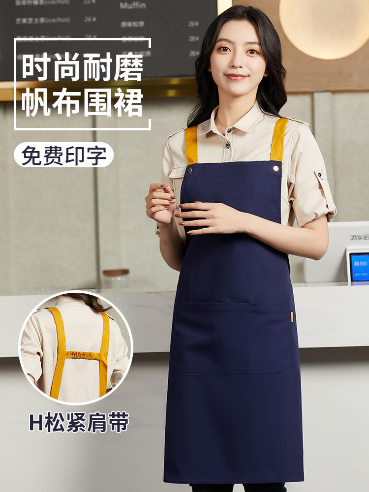 여성을위한 특별 케이터링 베이킹 밀크 티 샵 웨이터 작업복을위한 국경 간 방수 및 내유성 맞춤형 로고 캔버스 앞치마