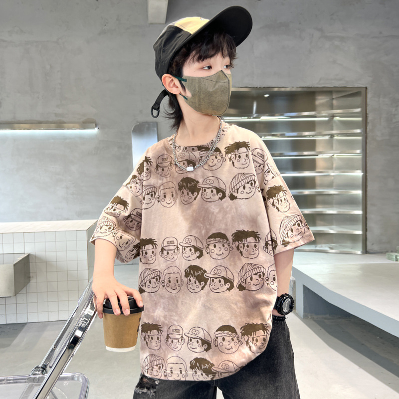 소년 반팔 티셔츠 2025 새로운 어린이 여름 옷 큰 어린이 반팔 스타일 여름 한국 스타일 티셔츠 만화 탑 T스토어 가기