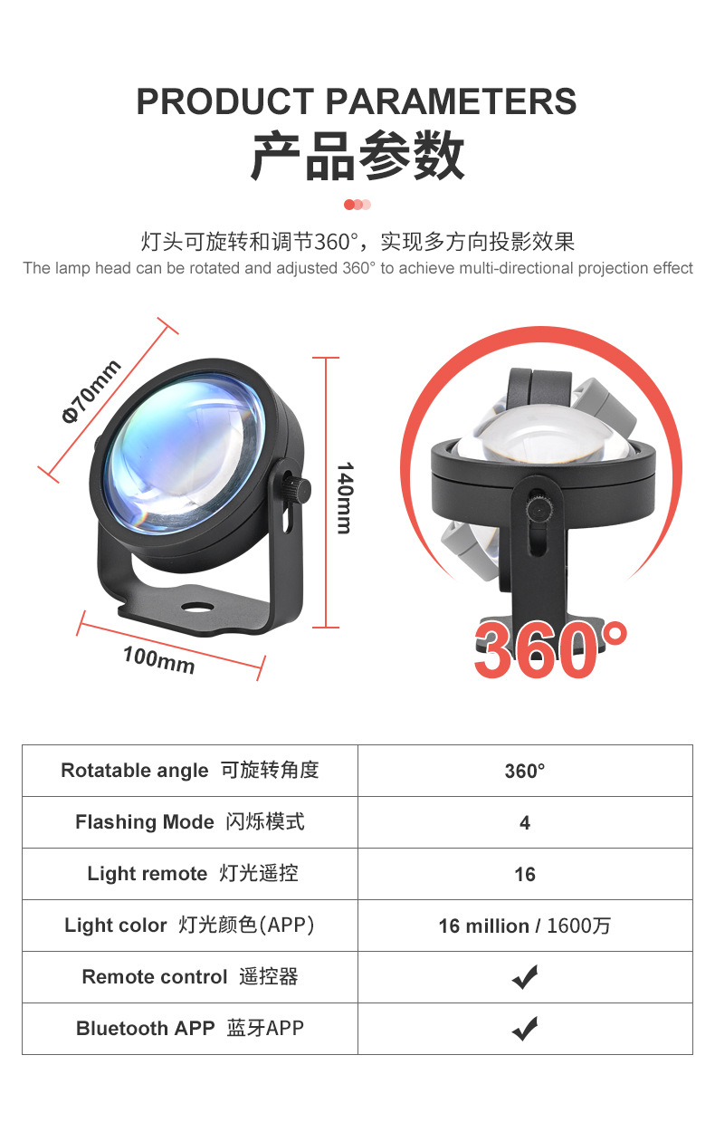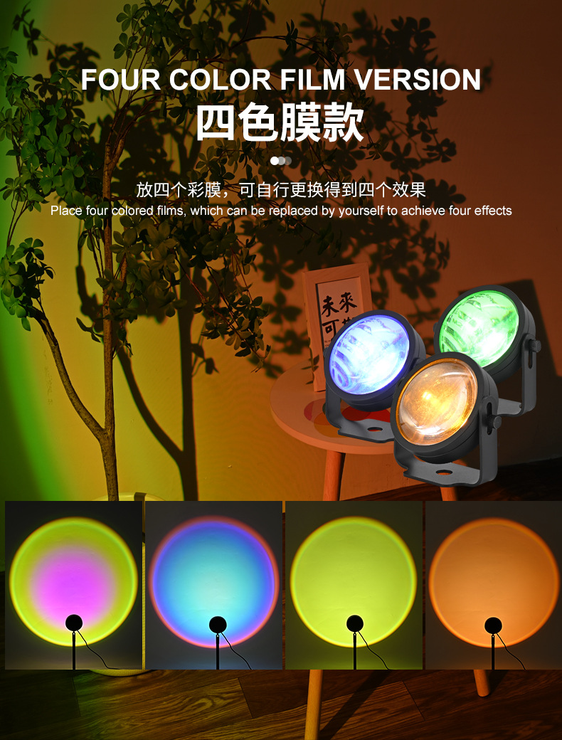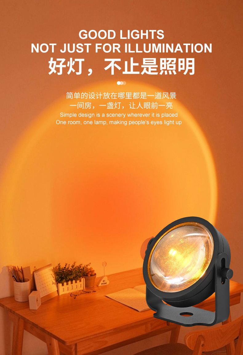 국경 간 인터넷 연예인 생방송 미니 필 라이트 선셋 램프 일몰 분위기 장식 야간 조명 프로젝션 선셋 램프