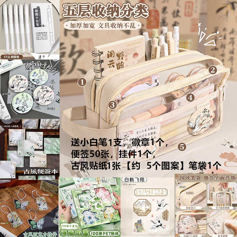 Guofeng 연필 케이스 5 층 투명한 골동품 대용량 학생 연필 케이스 새로운 하이 얀스토어 가기