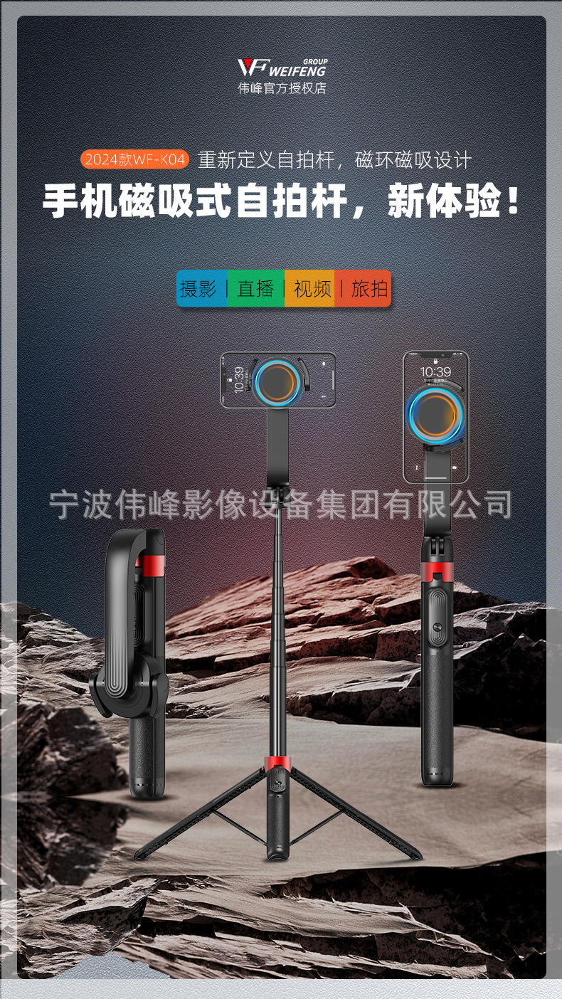 Weifeng K04 자기 셀카 스틱 삼각대 통합 바닥 휴대 전화 카메라 사진 라이브 흔들림 방지스토어 가기