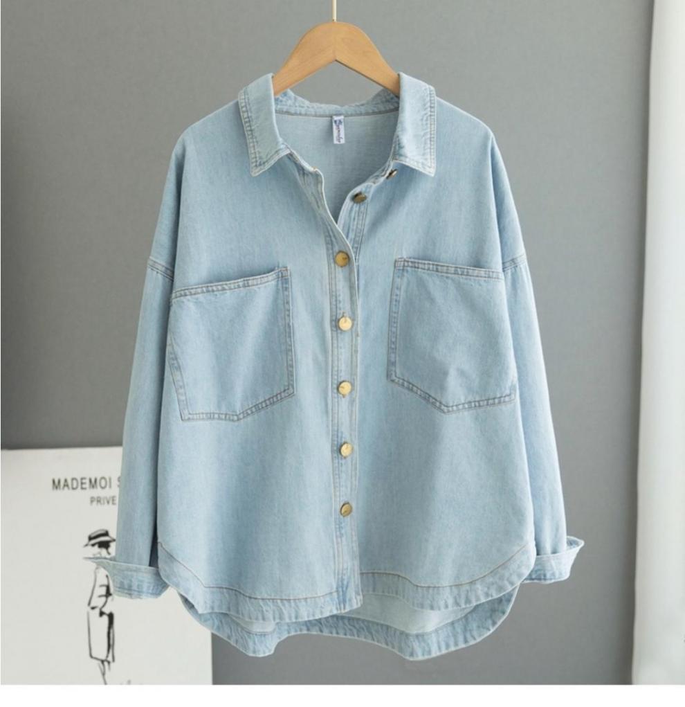 데님 셔츠 여성 봄과 가을 작은 느슨한 슬리밍 캐주얼 올매치 긴팔 셔츠 여성용 셔츠스토어 가기