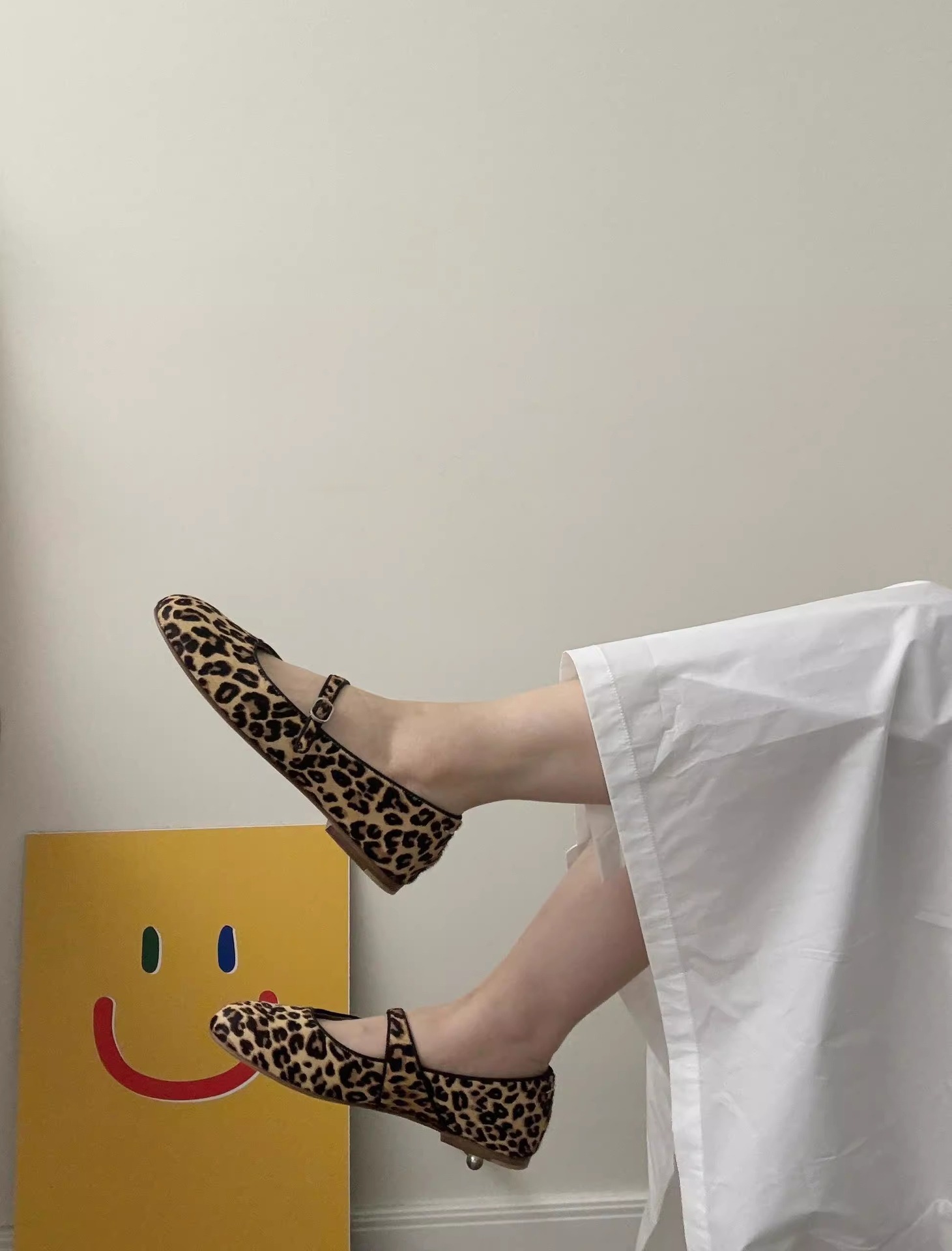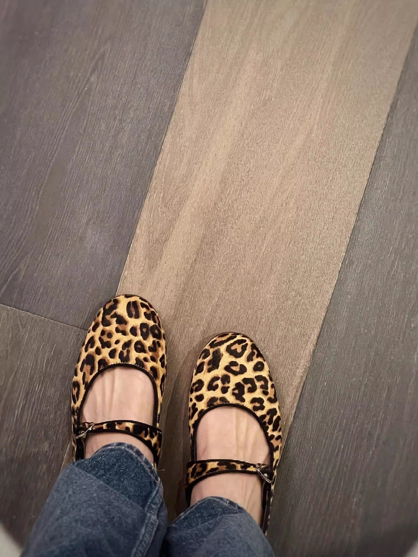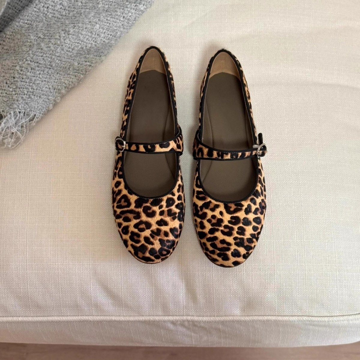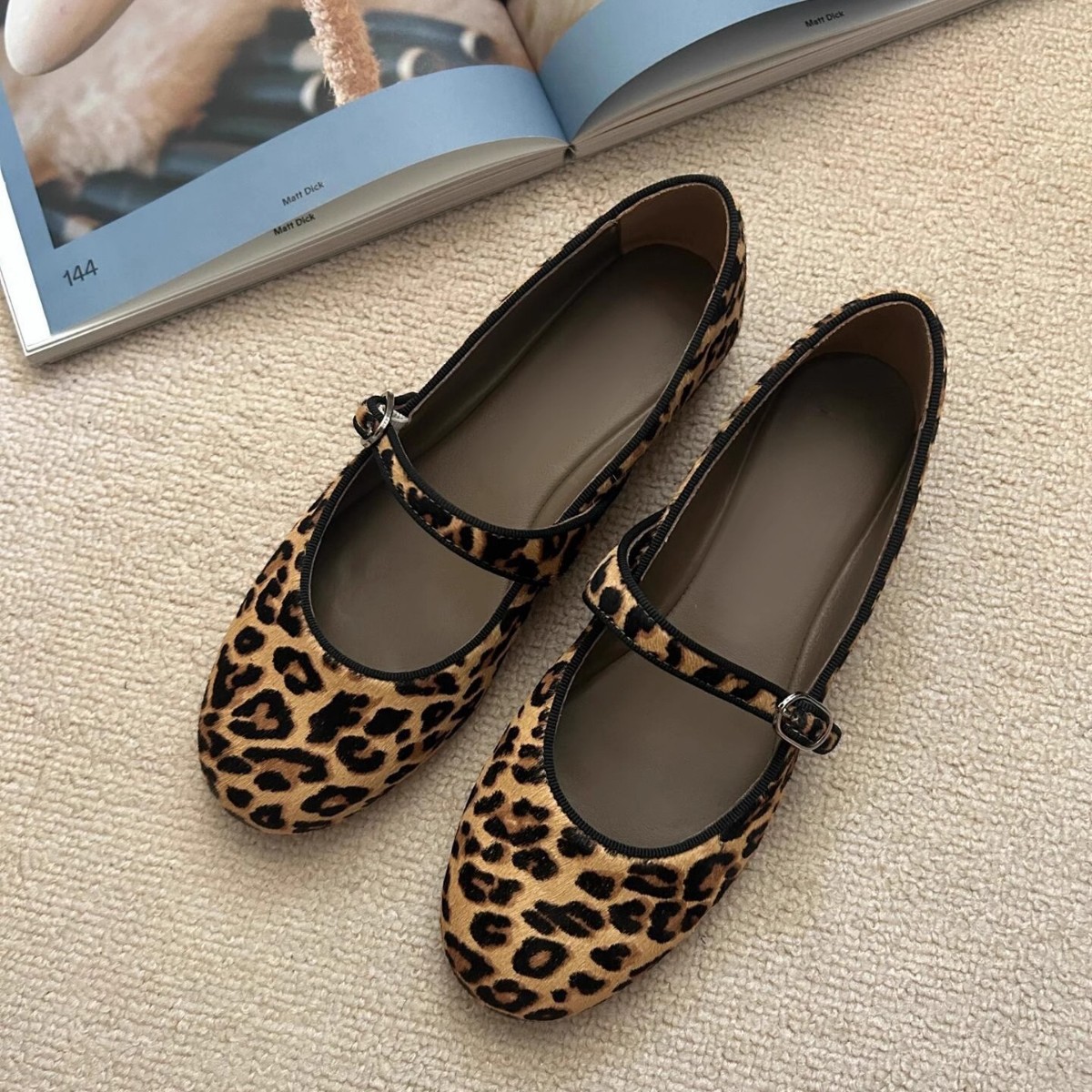 양가죽 버전 ~ 여성용 슈퍼 소프트 솔 가죽 레오파드 프린트 메리 제인 슈즈, 가을 발레 스타일 플랫 슈즈, 원라인 버클 스트랩 슈즈스토어 가기