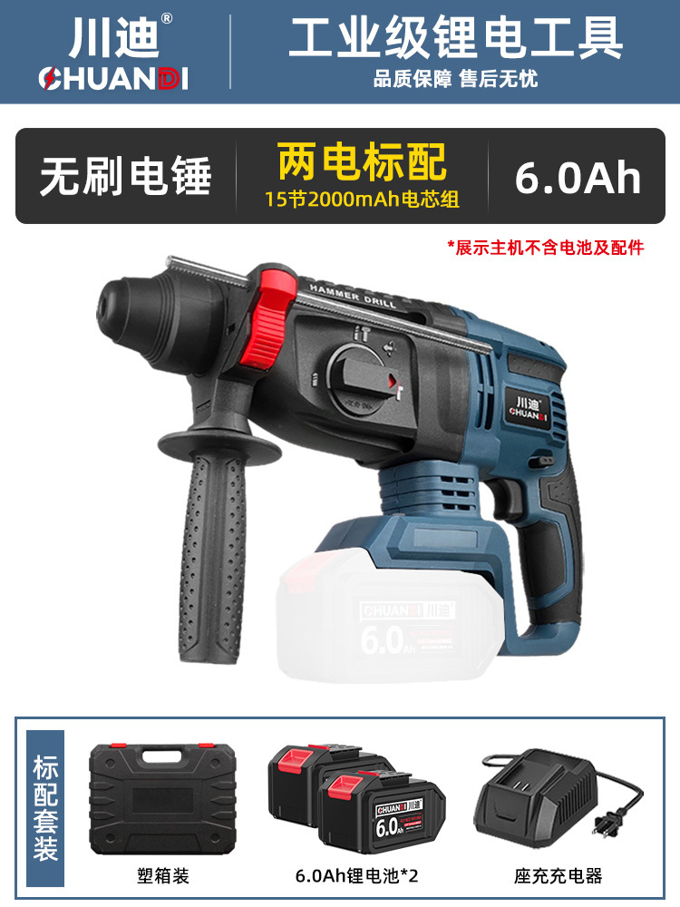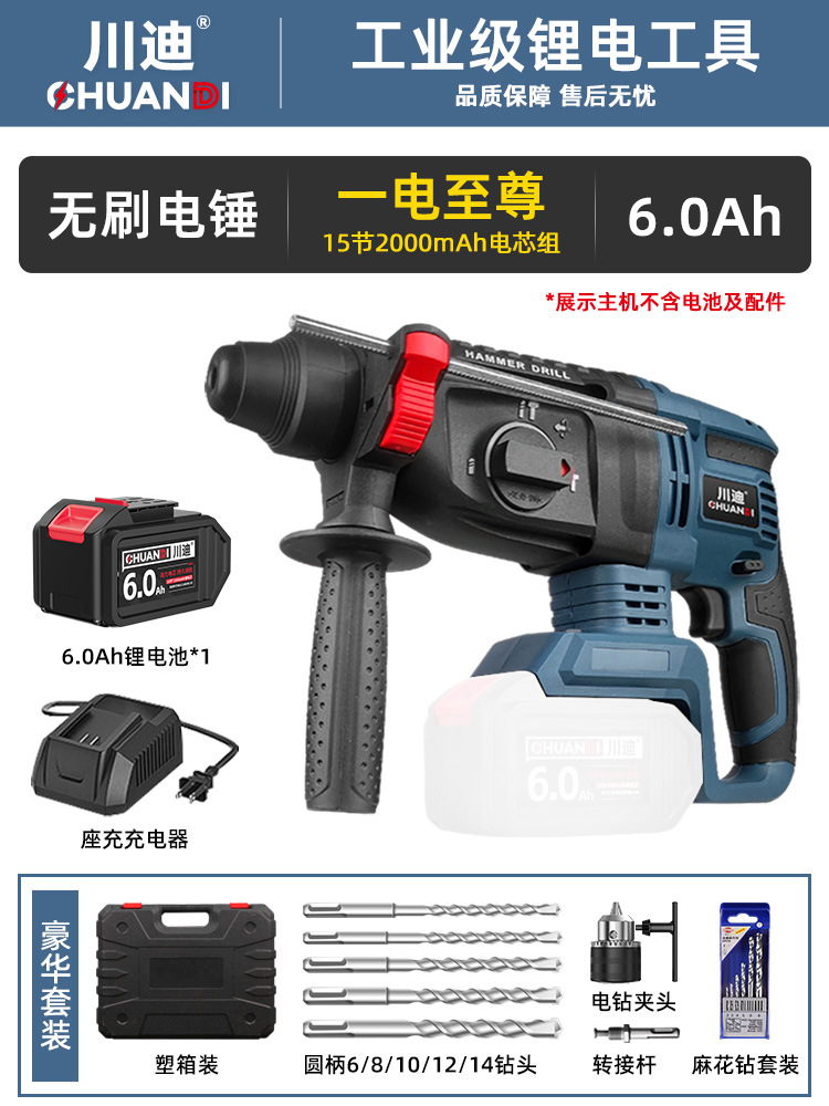 • 충전식 전동 해머[15섹션 6.0Ah] 배터리 2개 및 충전 1개 + 드릴 비트 선물 팩