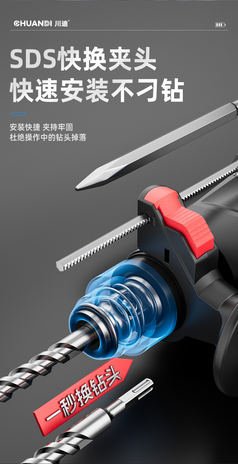 • 충전식 전동 해머 [15섹션 6.0Ah] 배터리 1개, 충전 1개 + 드릴 비트 선물팩