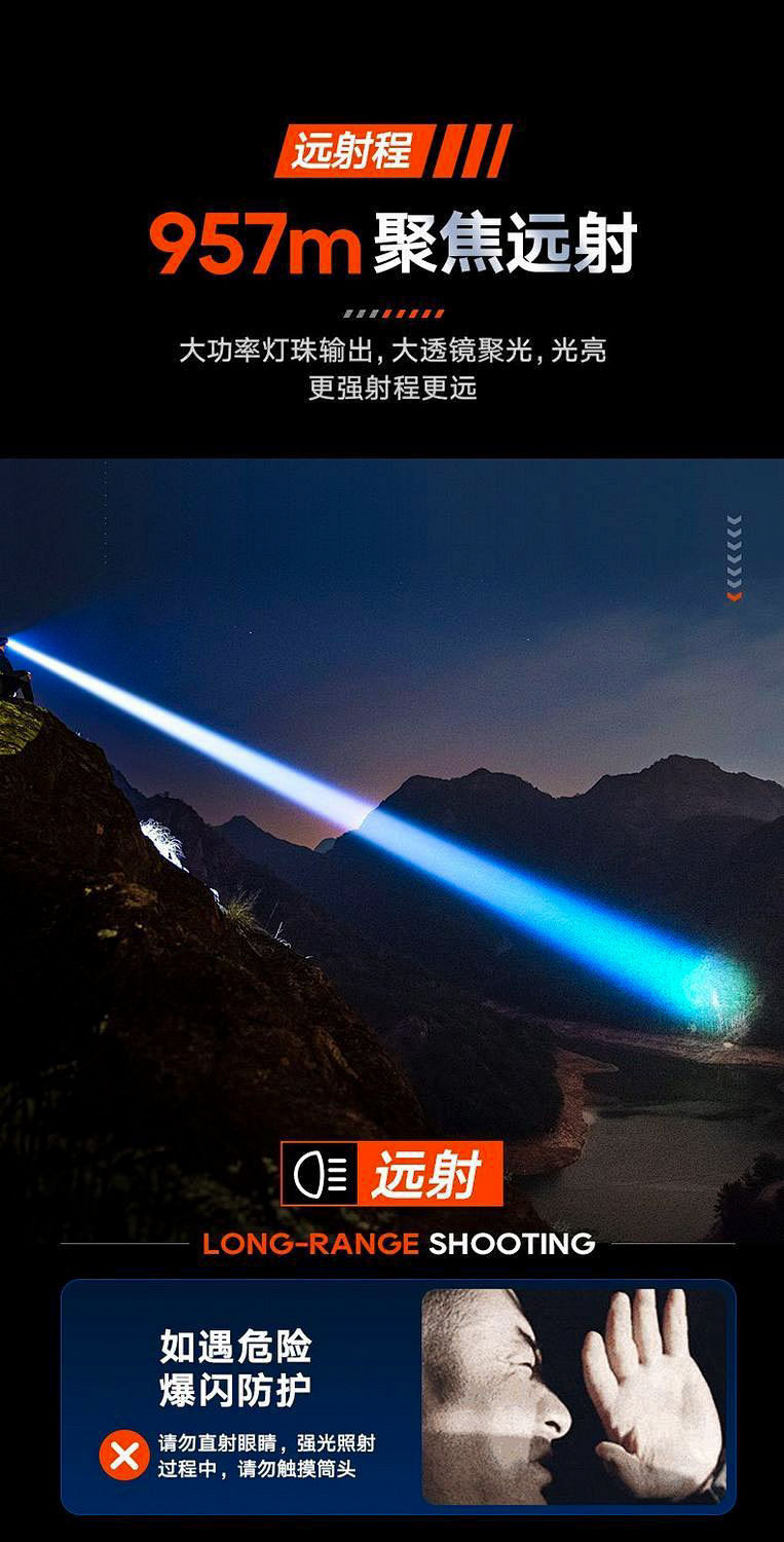 产品镜片材质:光学透镜 957m聚焦远射