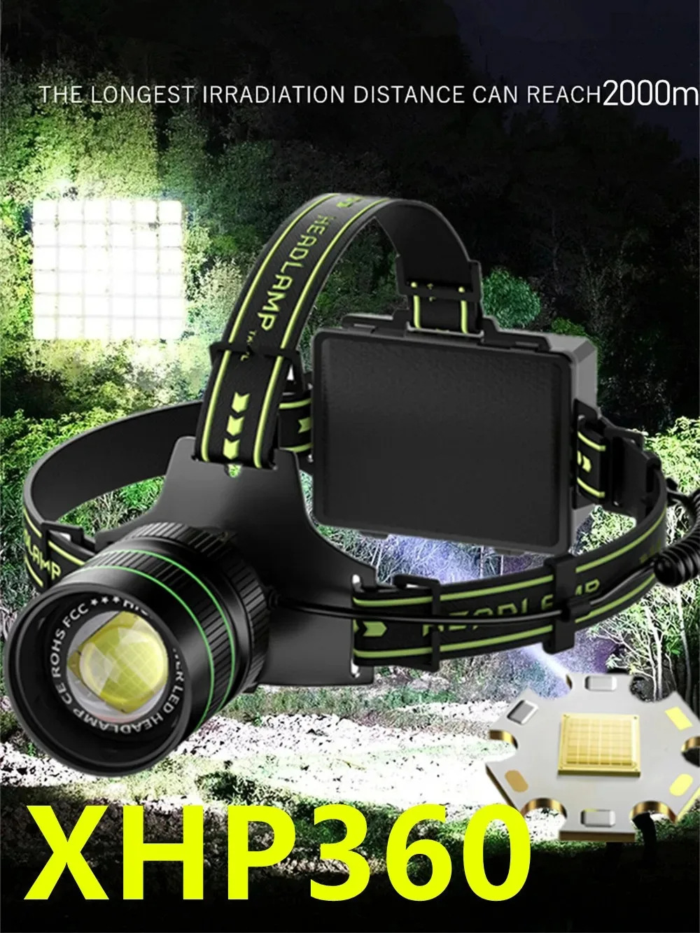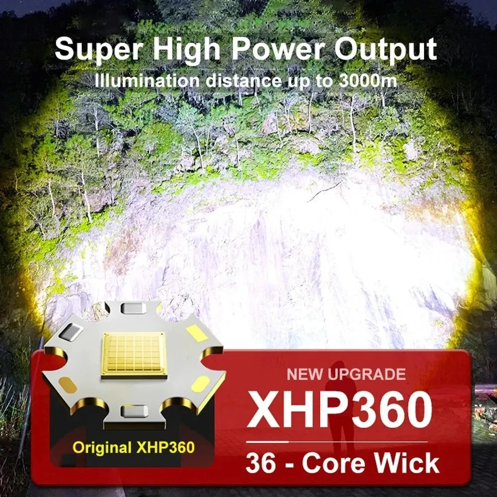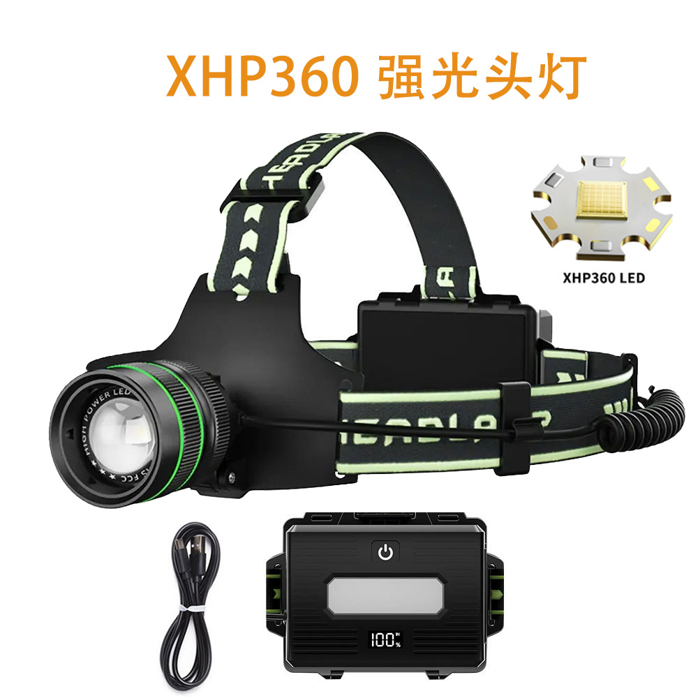 국경 XHP360 유도 전조등 USB 다기능 강한 빛 슈퍼 밝은 장거리 형광 헤드 장착 헤드라이트 낚시 램프스토어 가기