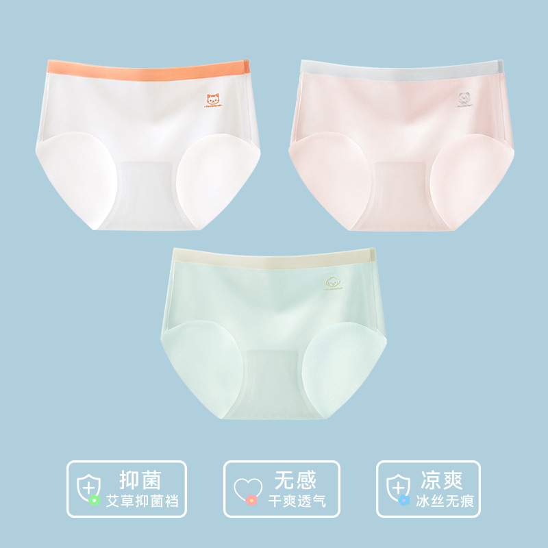 클래스 A 여자 속옷 아이스 실크 traceless 여자 아기 박테리아 복서 반바지 여름 얇은 비 클립 pp 브리프