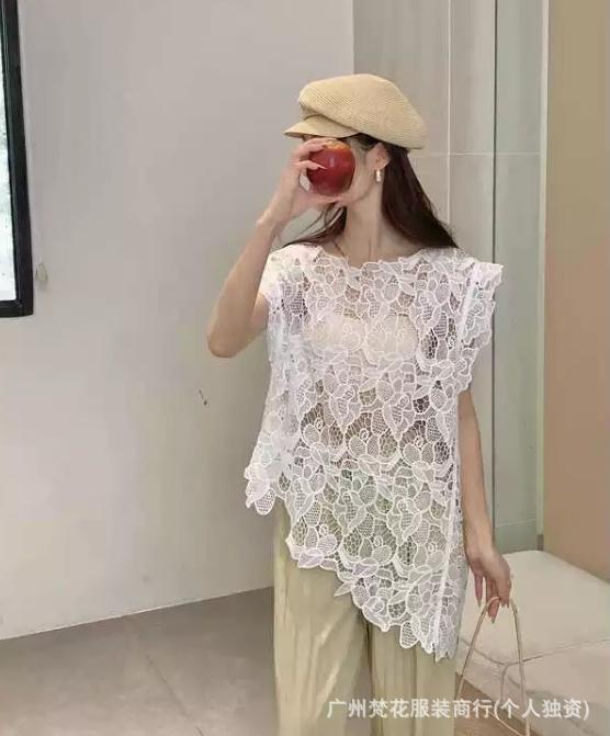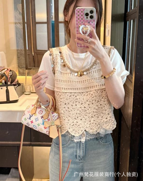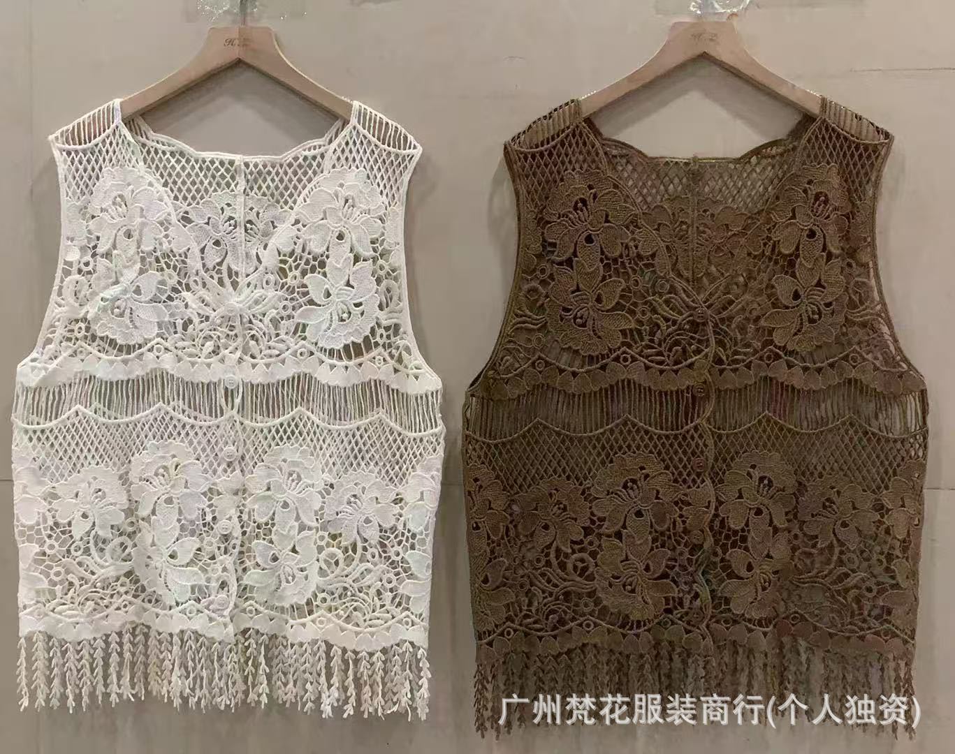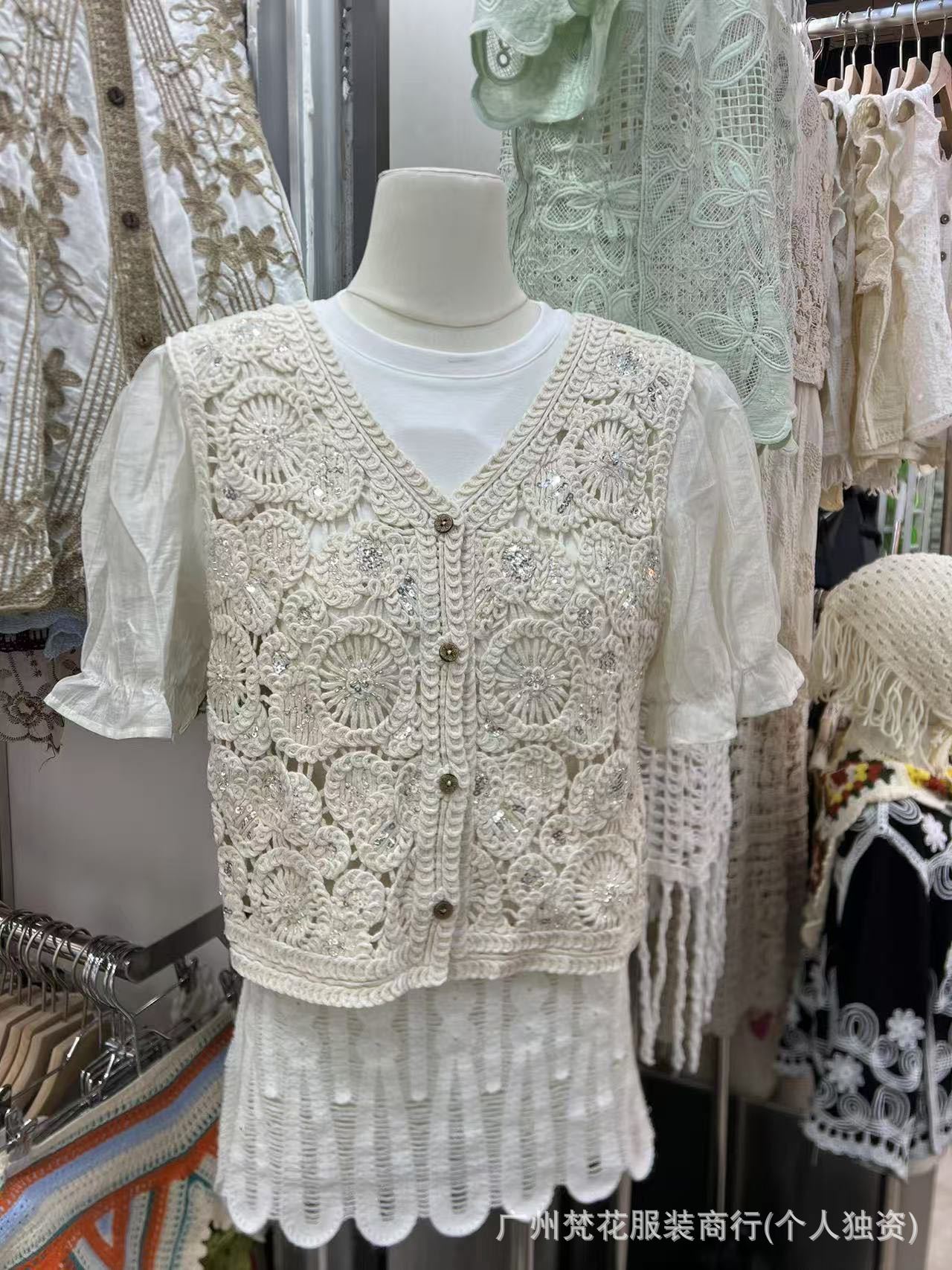 새로운 빈티지 할로우 아웃 후크 아웃 착용 헤비 듀티 니트 조끼 카디건 여자 올 매치 V-넥 쇼트 조끼 여름
