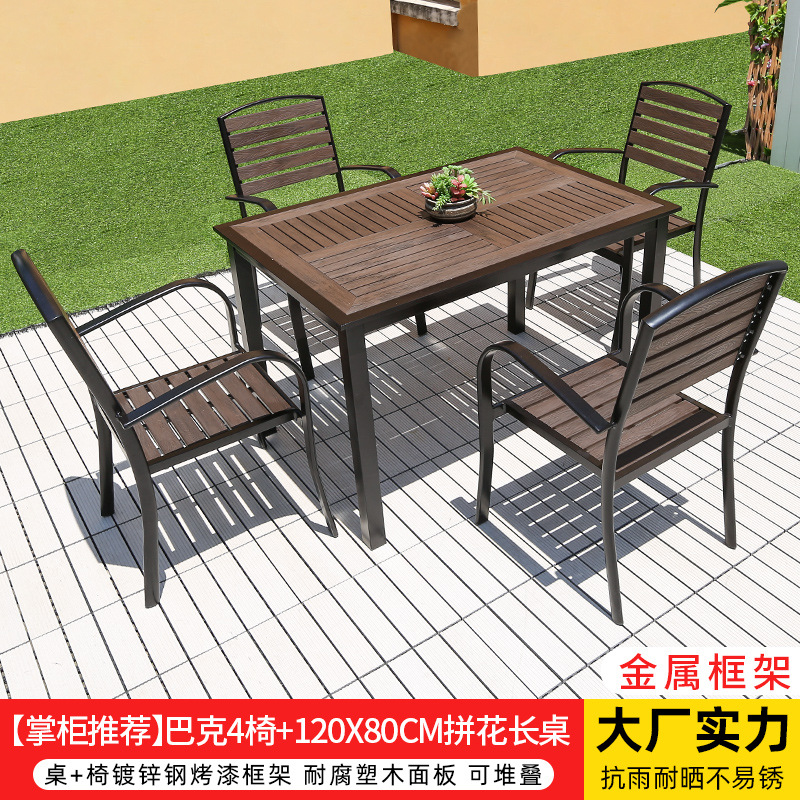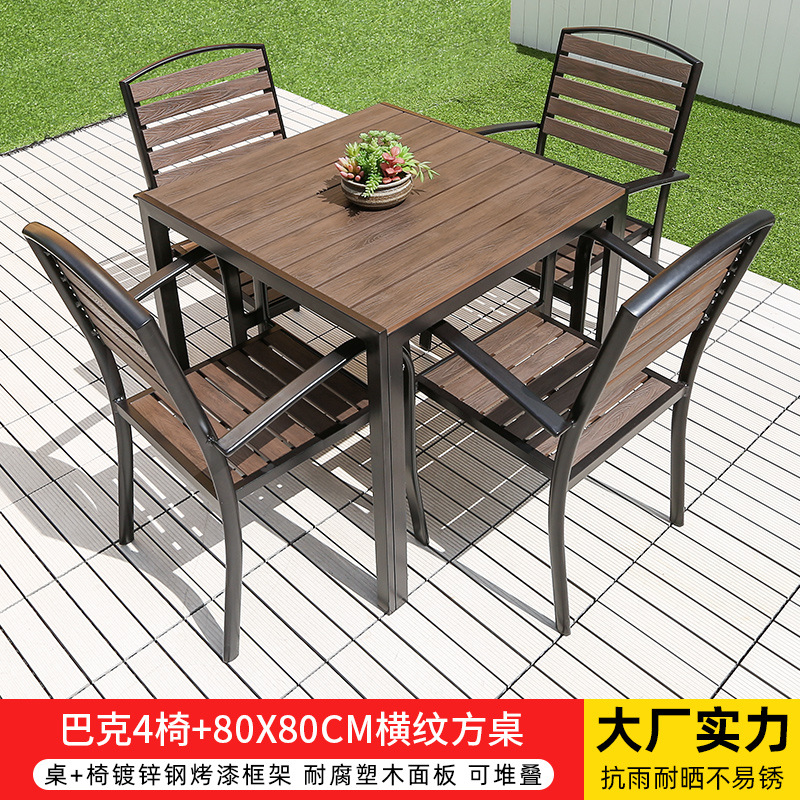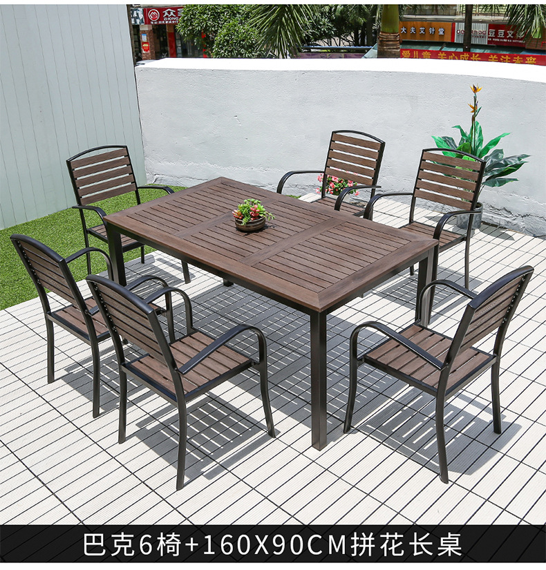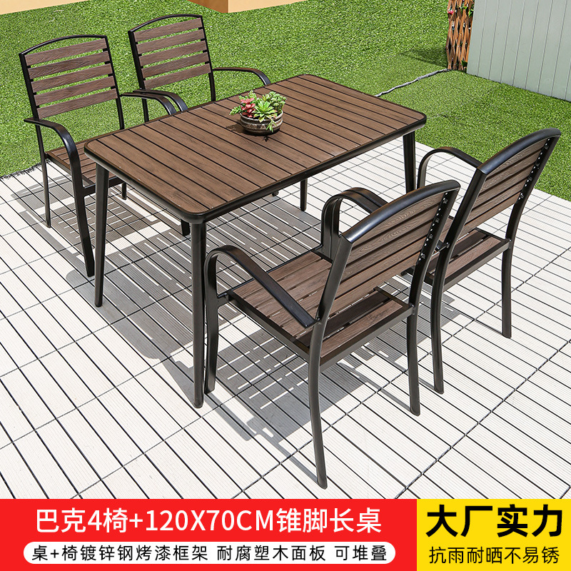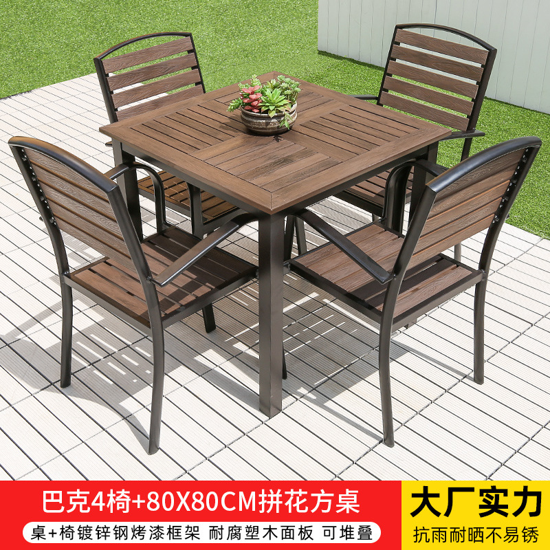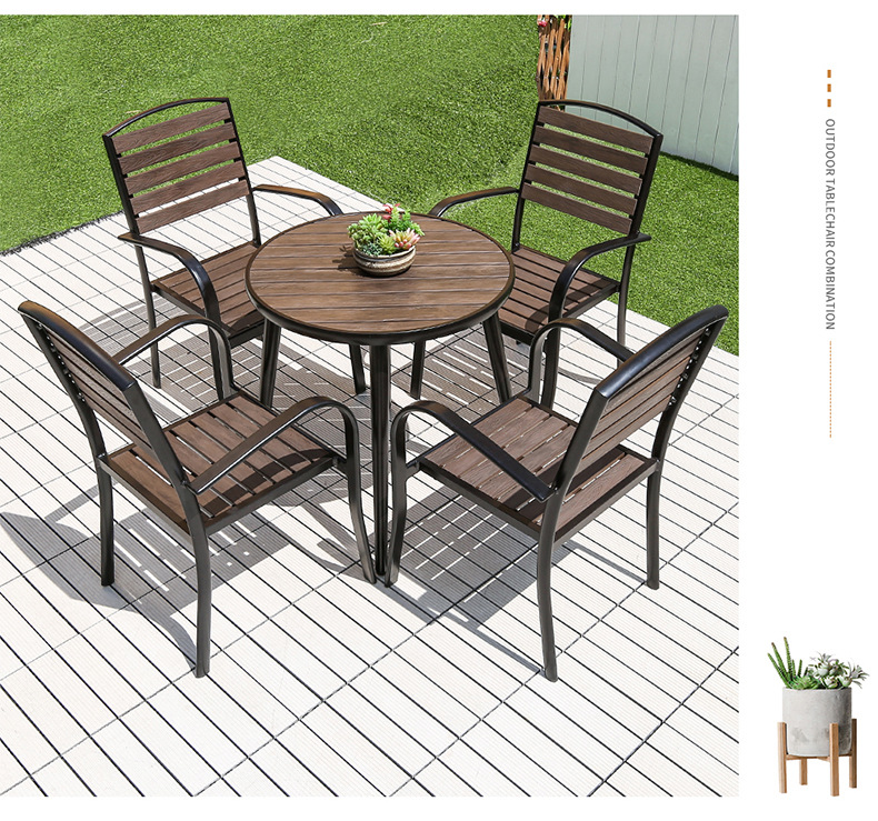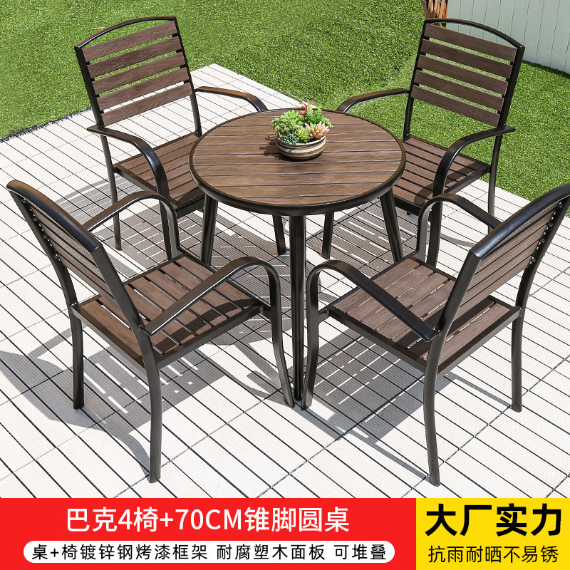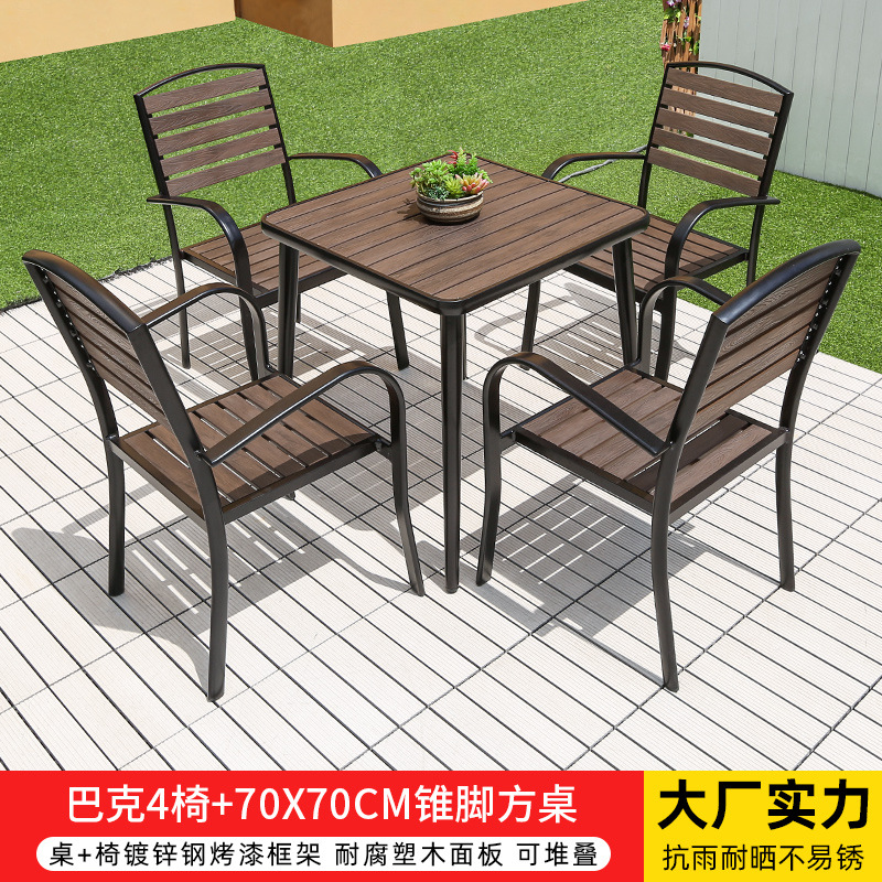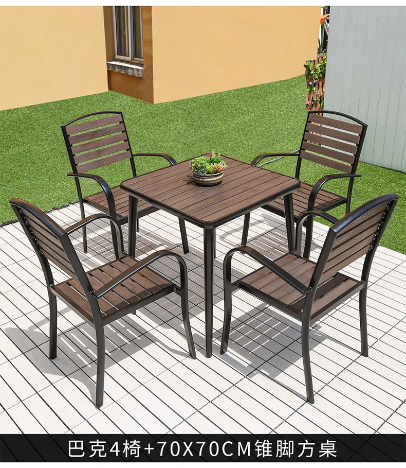 야외 안뜰 테이블과 의자 플라스틱 나무 야외 야외 레저 식탁 방수 탈색 목재 발코니 정원 카페 조합스토어 가기