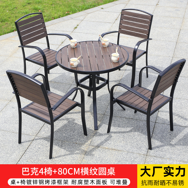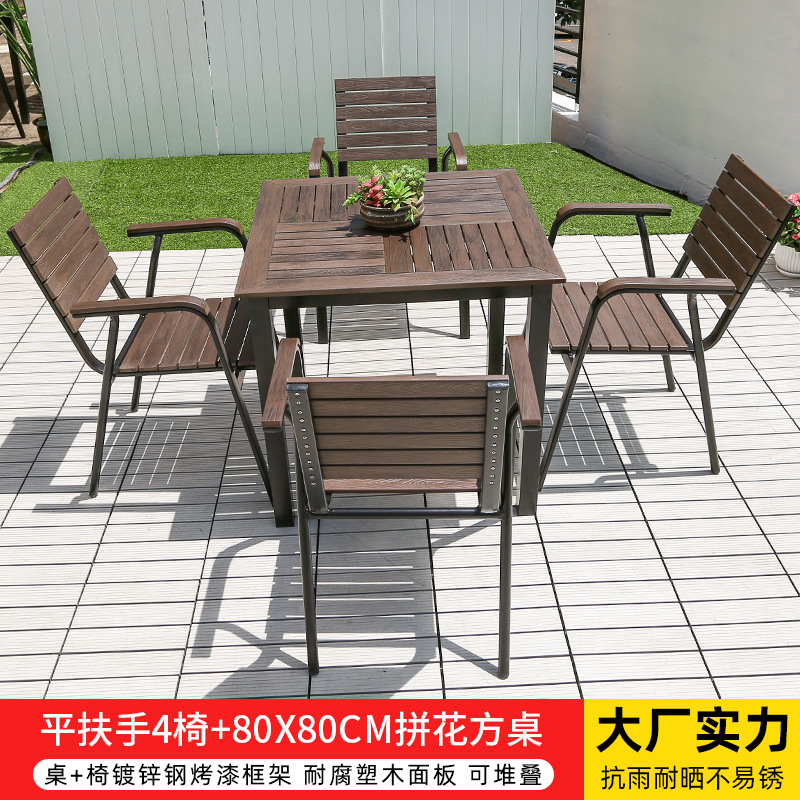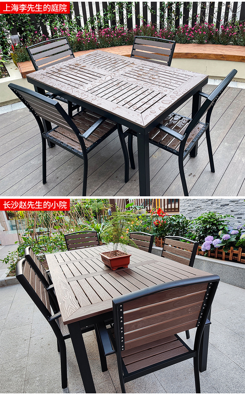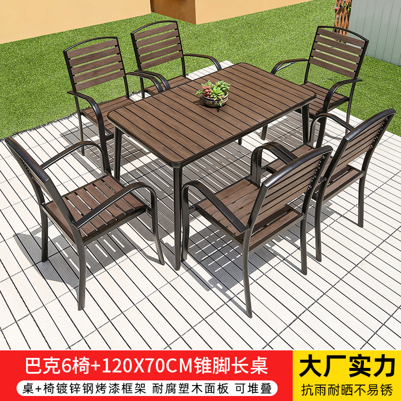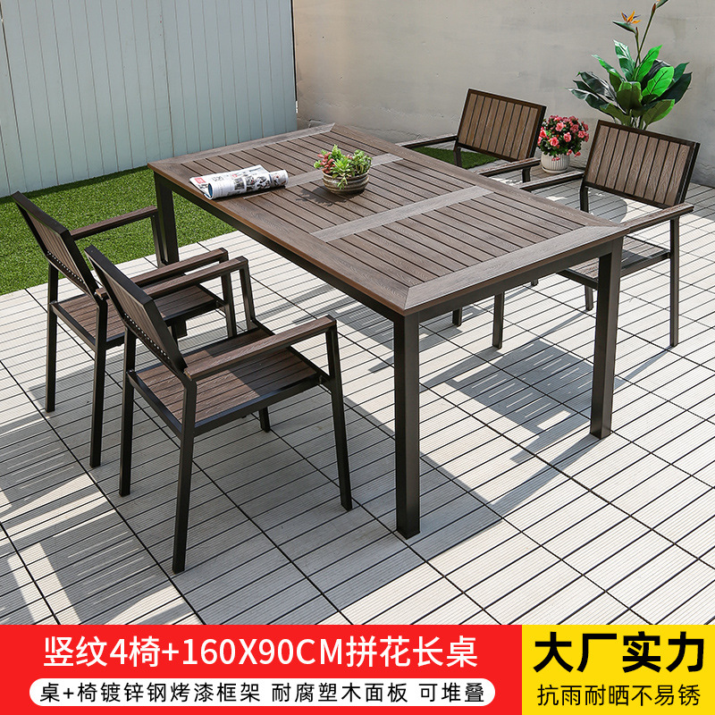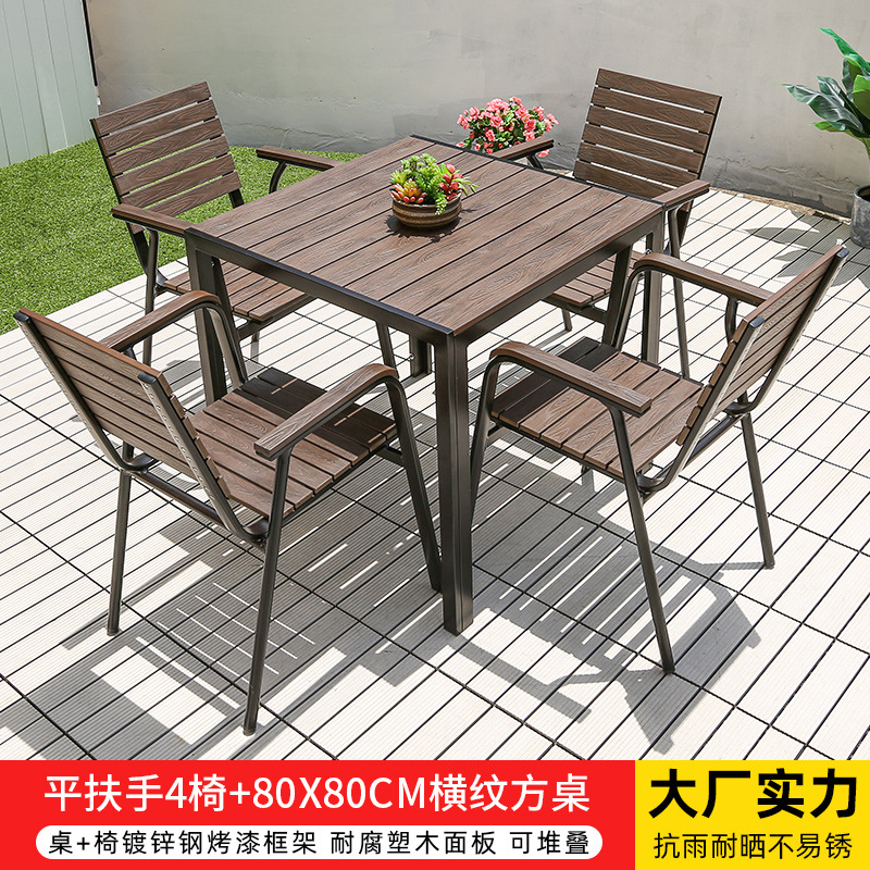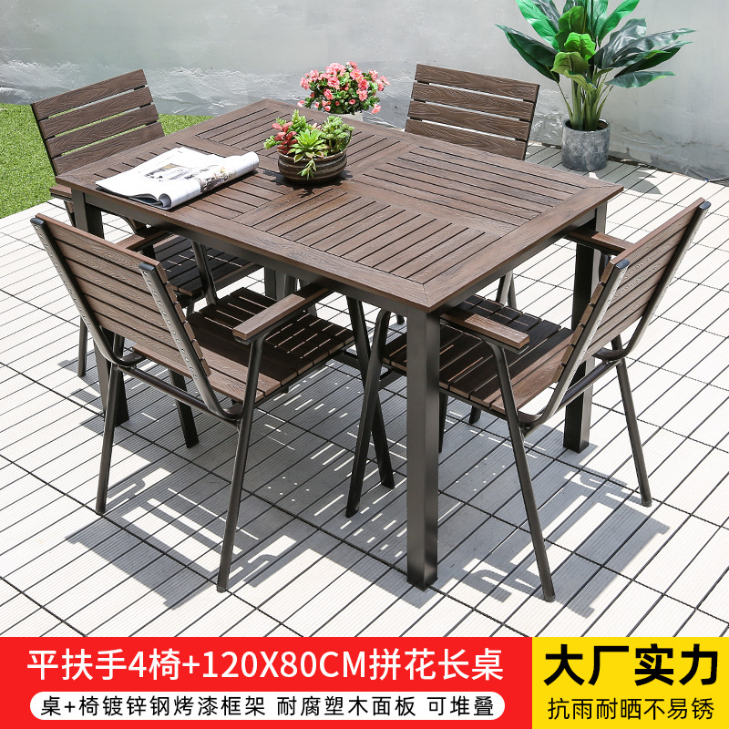 야외 안뜰 테이블과 의자 플라스틱 나무 야외 야외 레저 식탁 방수 탈색 목재 발코니 정원 카페 조합스토어 가기