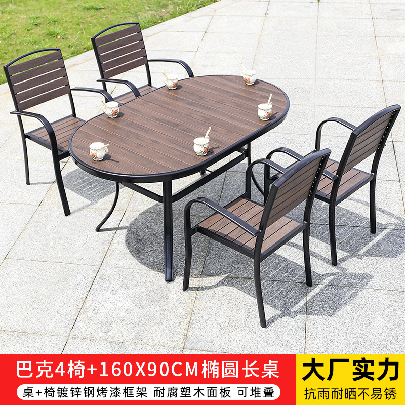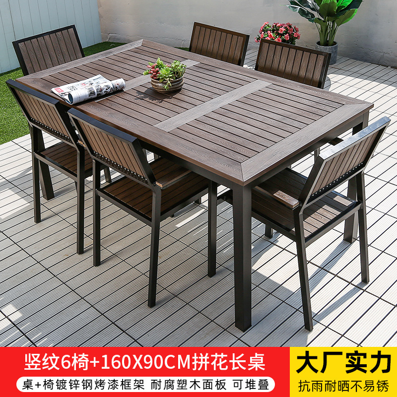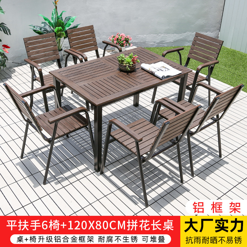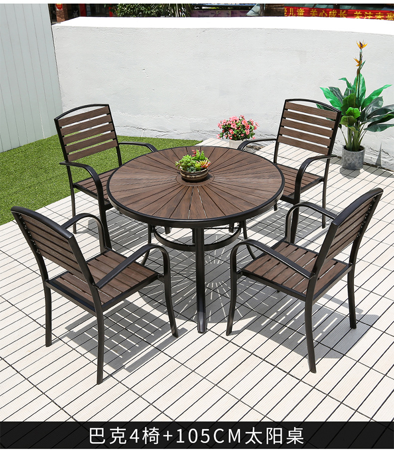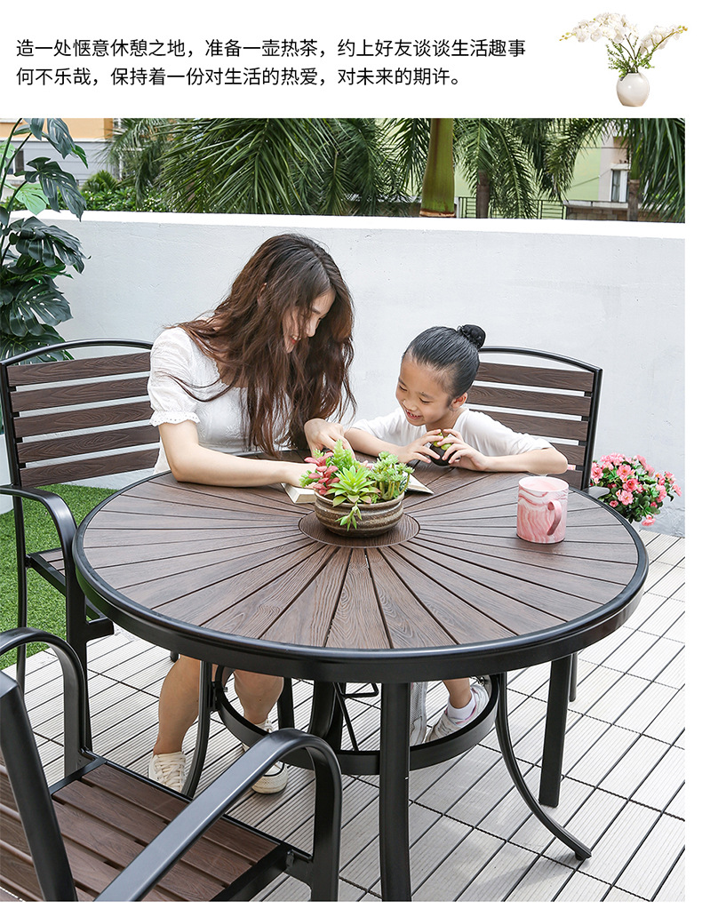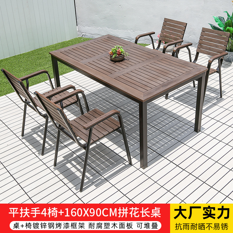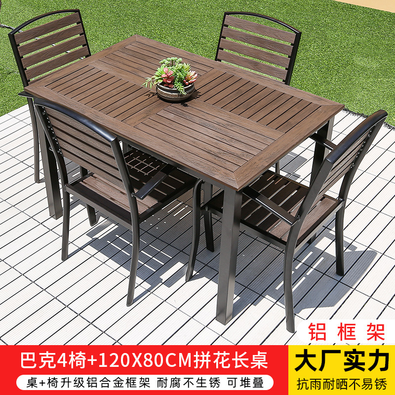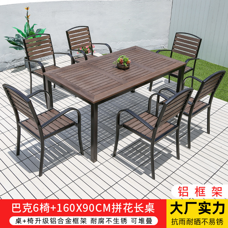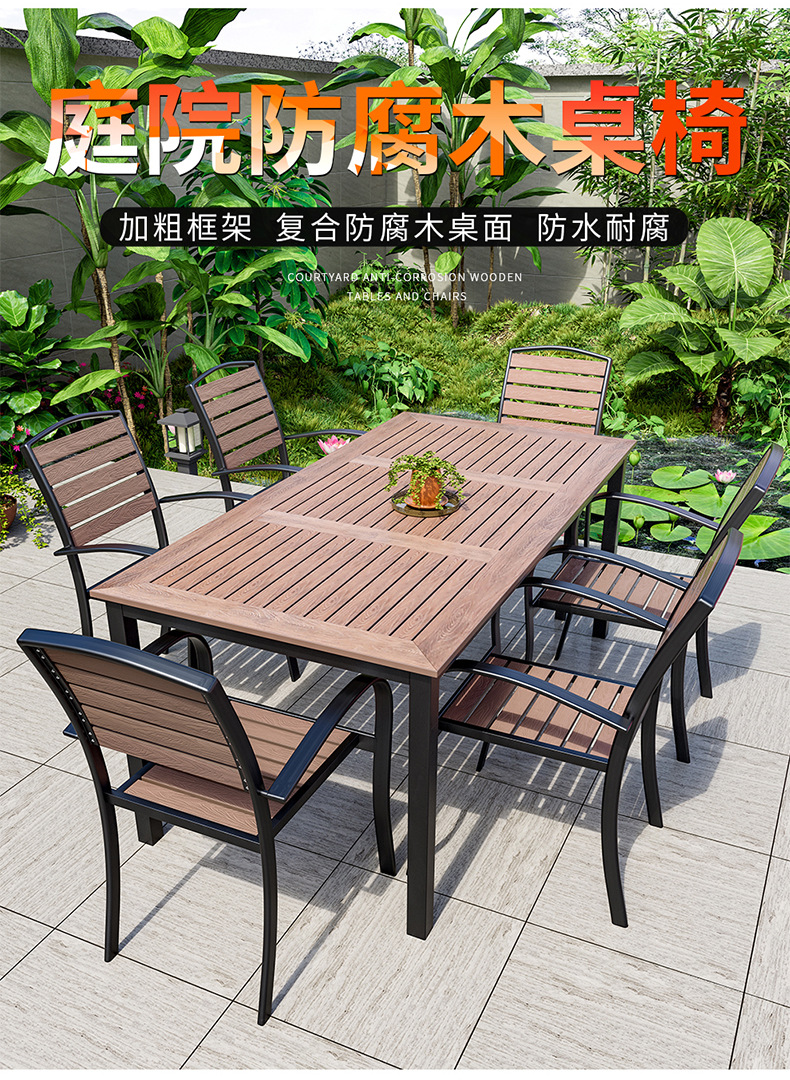 야외 안뜰 테이블과 의자 플라스틱 나무 야외 야외 레저 식탁 방수 탈색 목재 발코니 정원 카페 조합스토어 가기