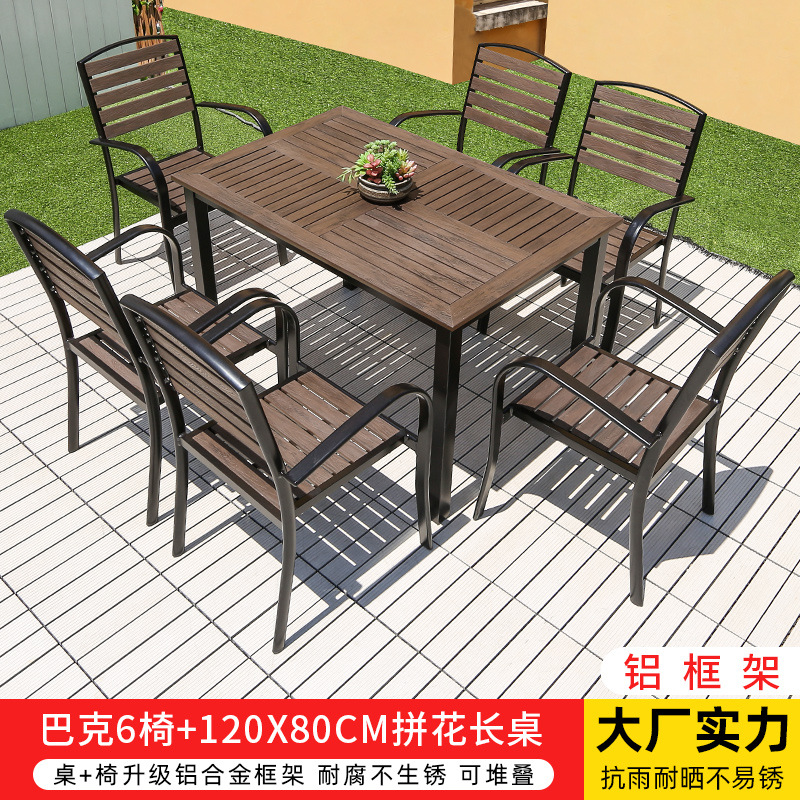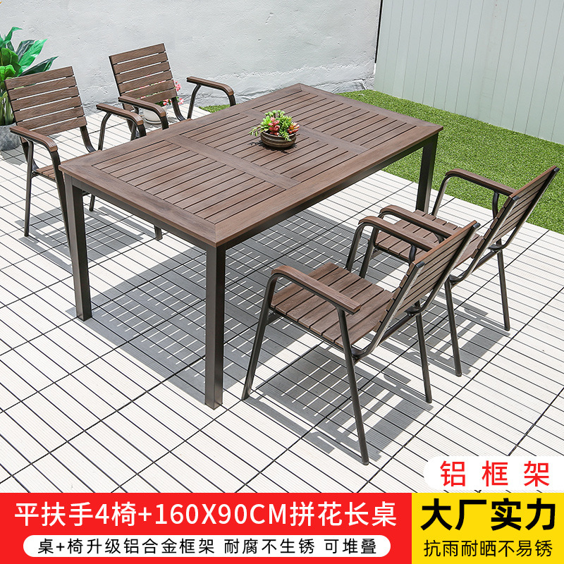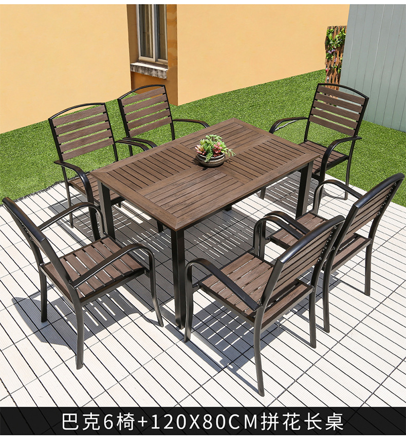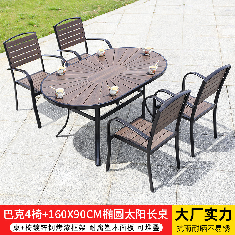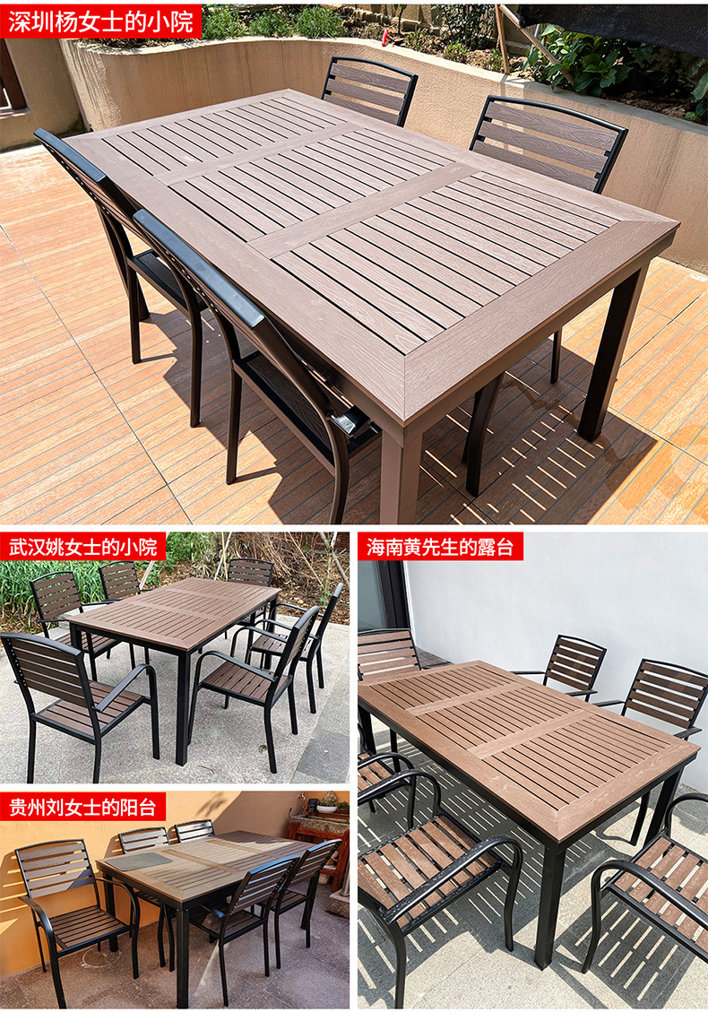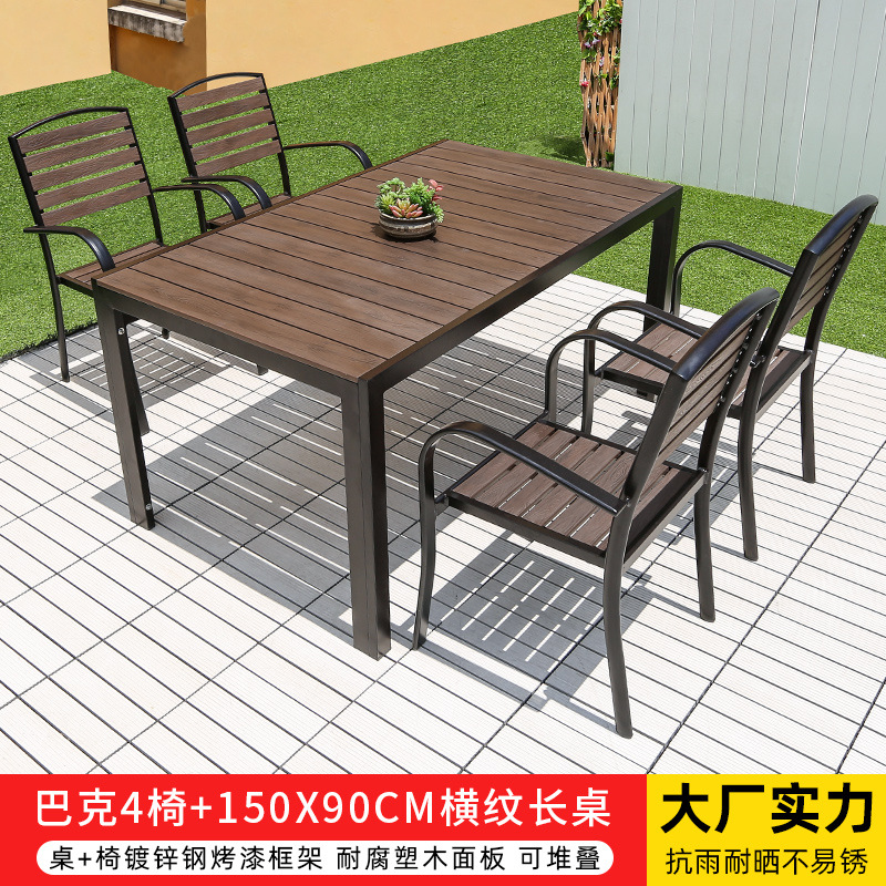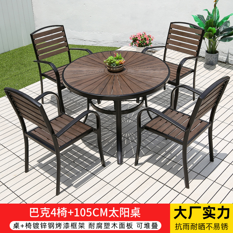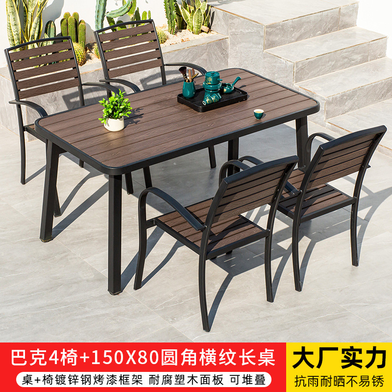 야외 안뜰 테이블과 의자 플라스틱 나무 야외 야외 레저 식탁 방수 탈색 목재 발코니 정원 카페 조합스토어 가기