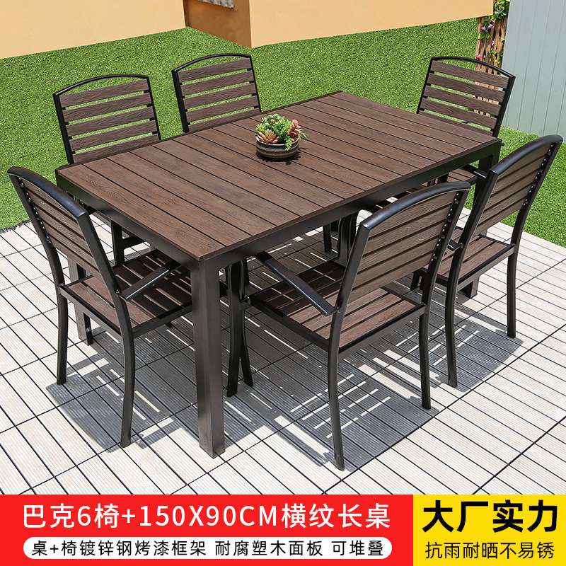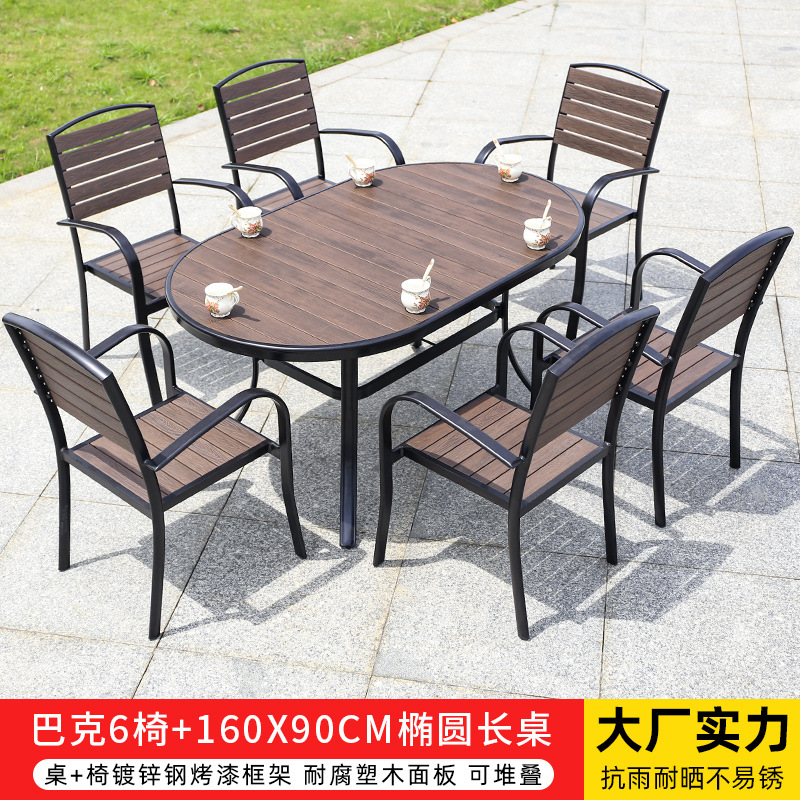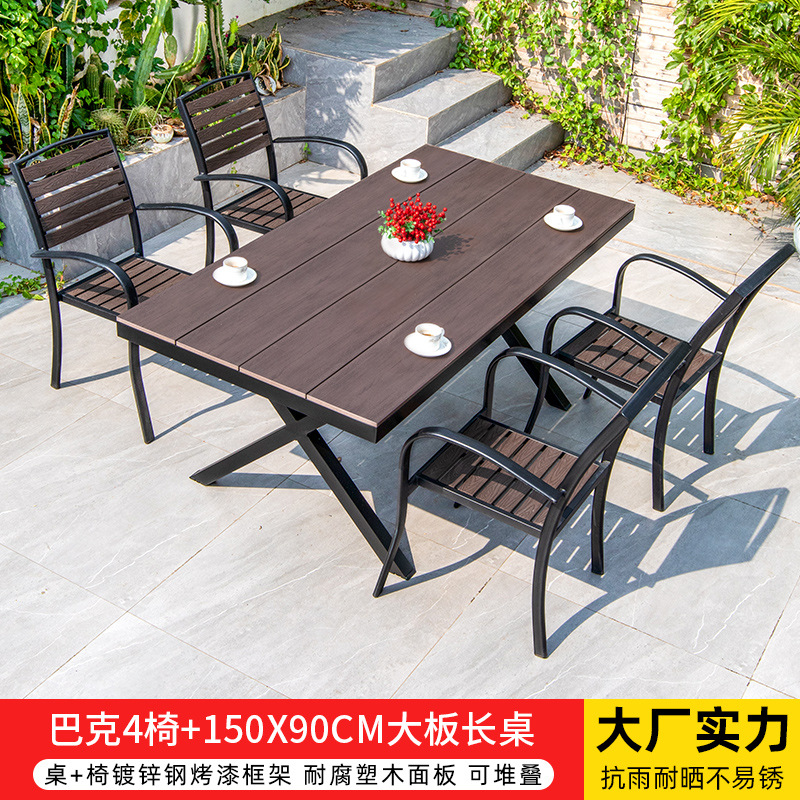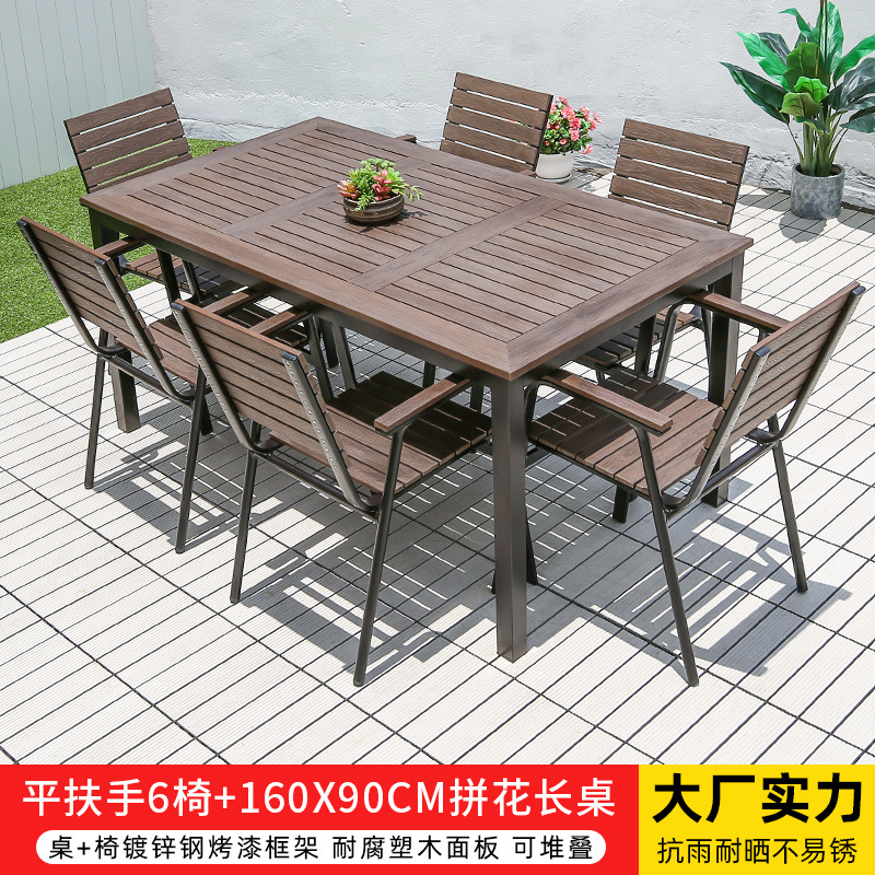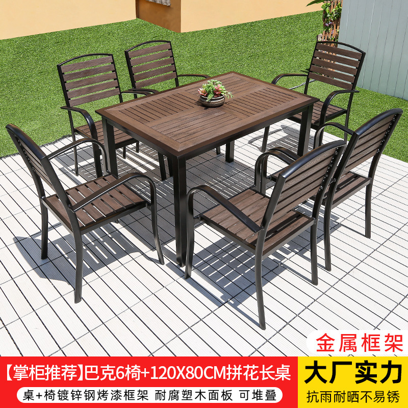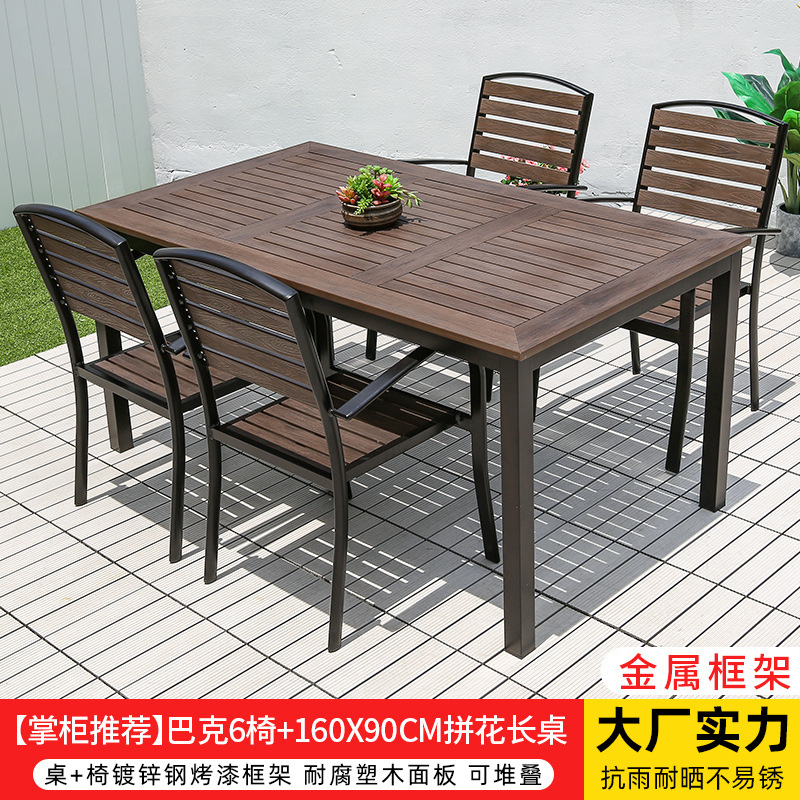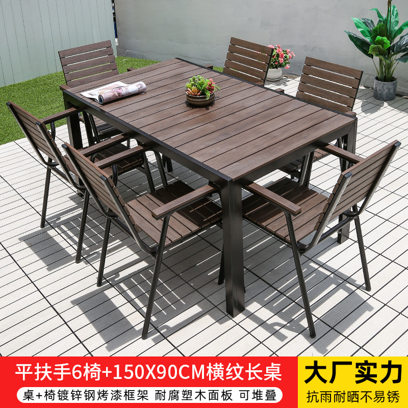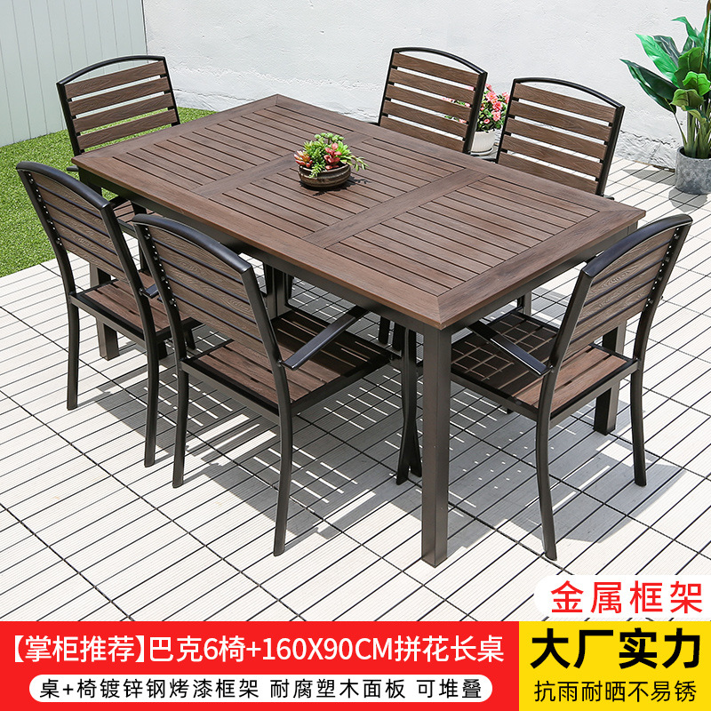 야외 안뜰 테이블과 의자 플라스틱 나무 야외 야외 레저 식탁 방수 탈색 목재 발코니 정원 카페 조합스토어 가기