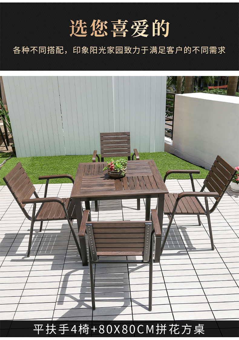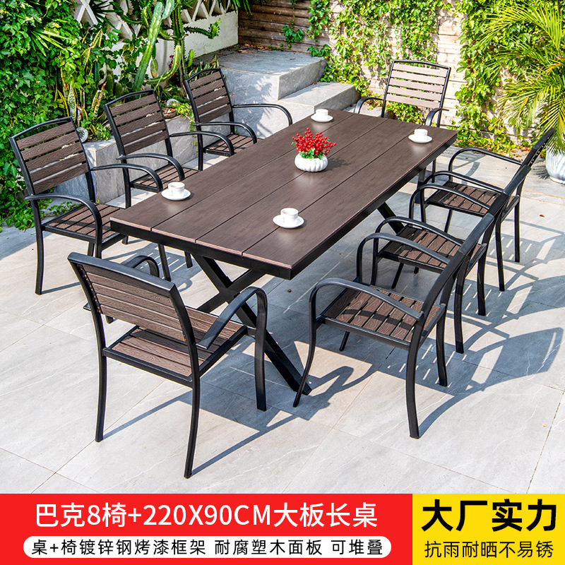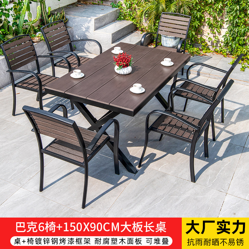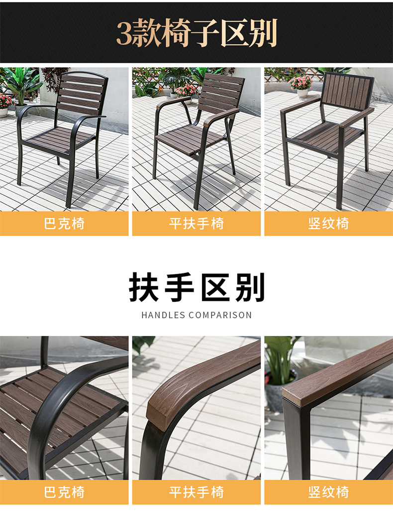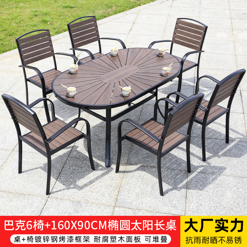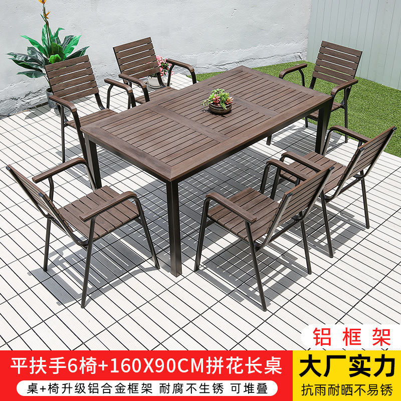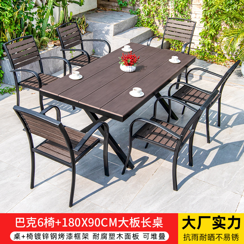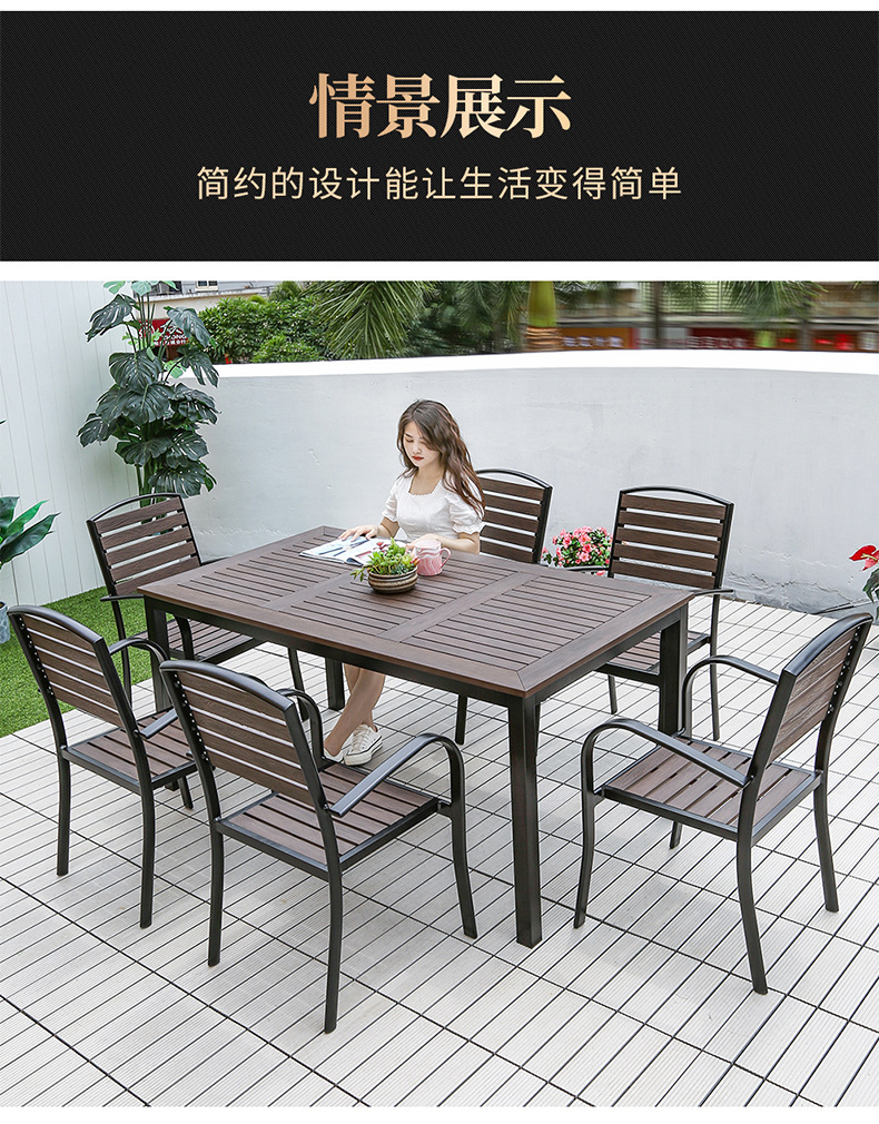 야외 안뜰 테이블과 의자 플라스틱 나무 야외 야외 레저 식탁 방수 탈색 목재 발코니 정원 카페 조합스토어 가기