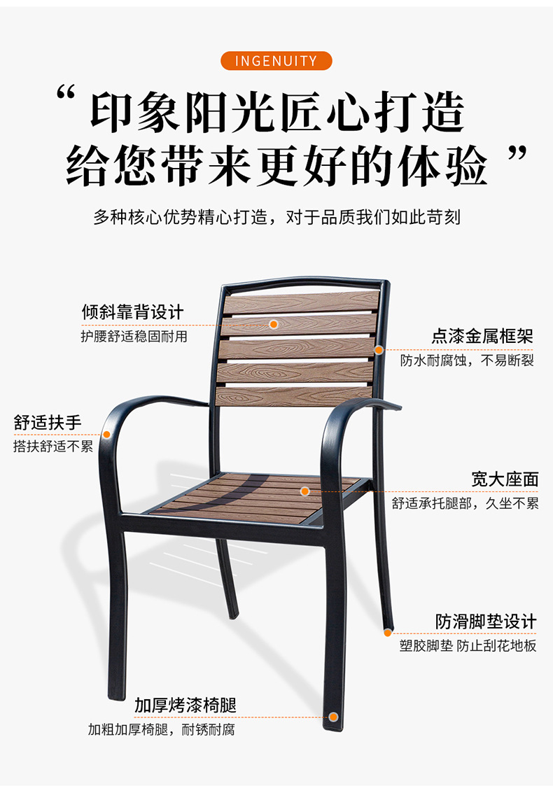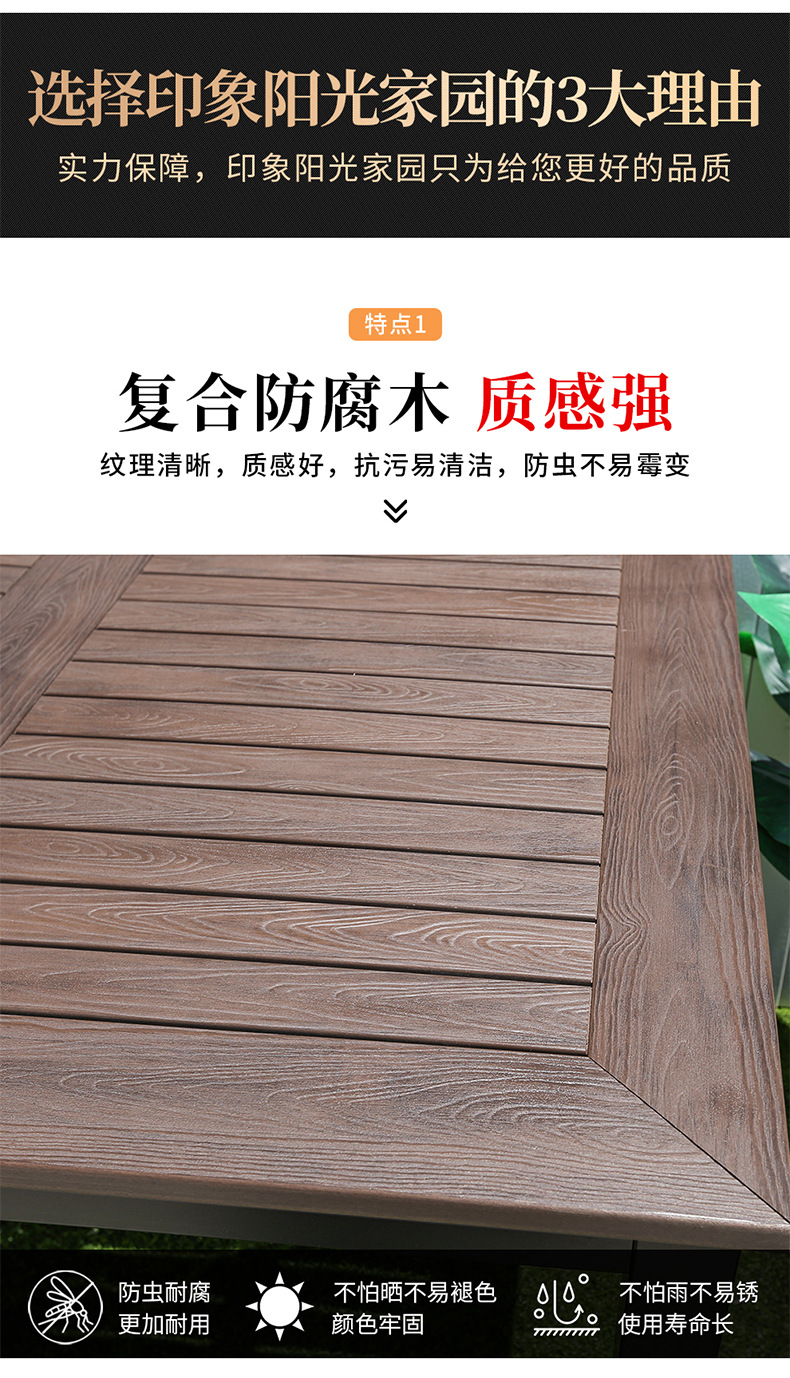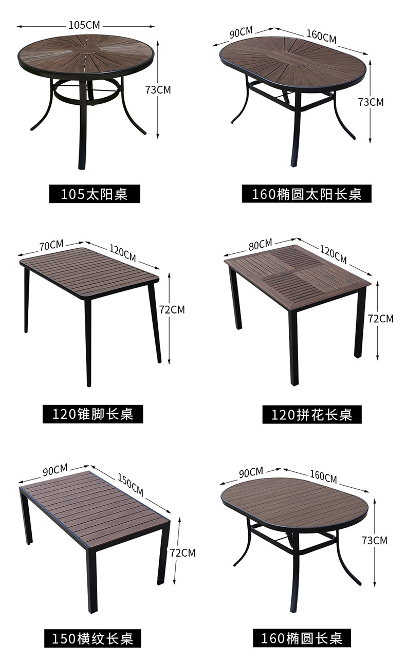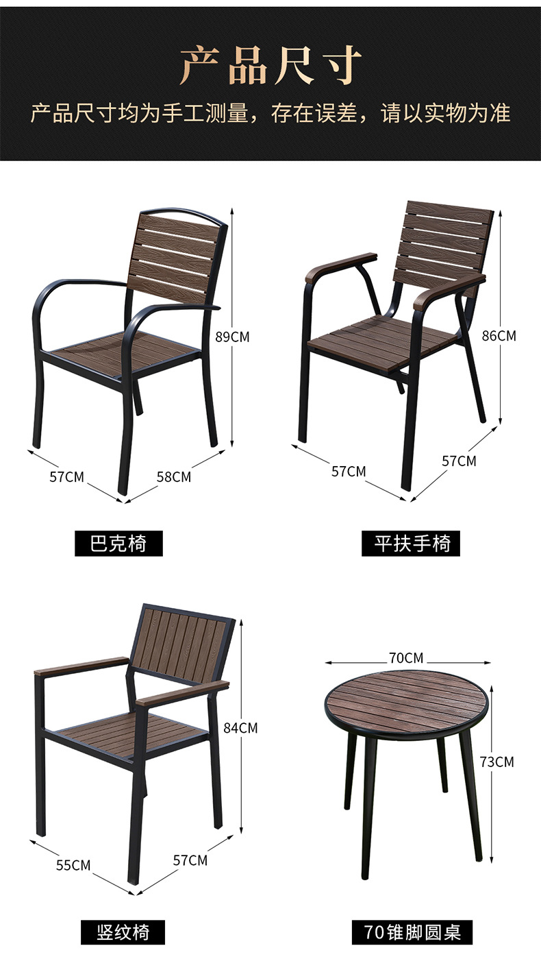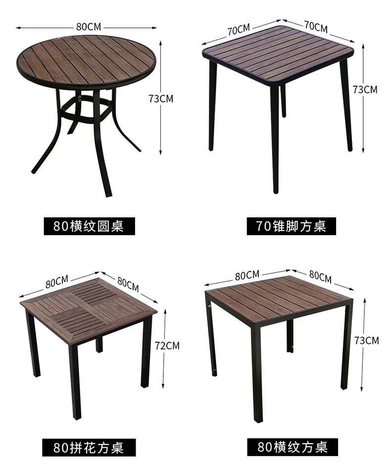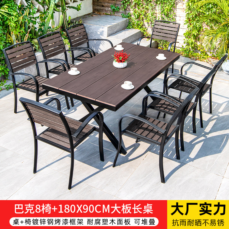 야외 안뜰 테이블과 의자 플라스틱 나무 야외 야외 레저 식탁 방수 탈색 목재 발코니 정원 카페 조합스토어 가기