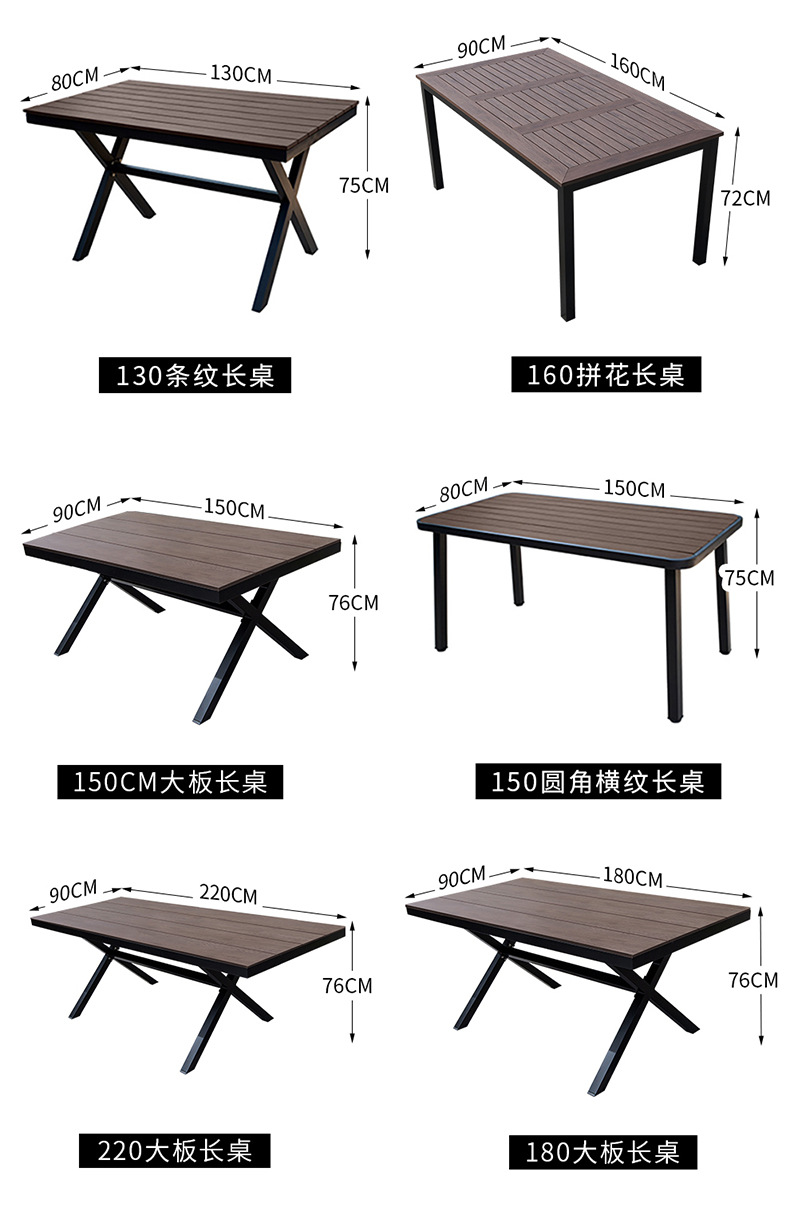 • 플랫팔걸이 의자 6개 + 160*90cm 쪽모이 세공 긴 테이블 [알루미늄 프레임]