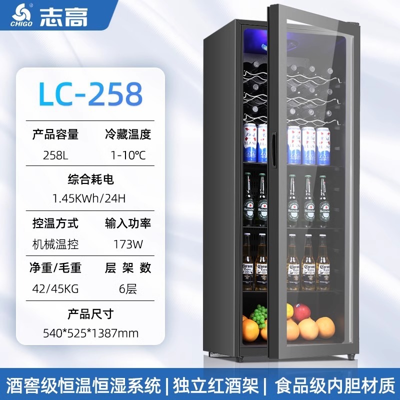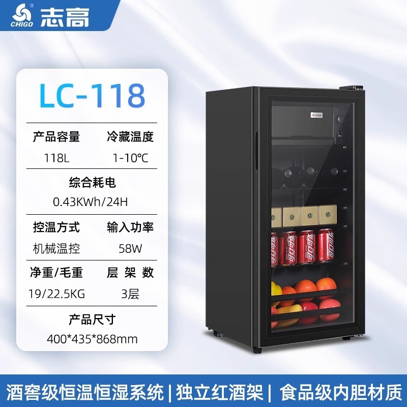 Chigo 아이스 바 와인 캐비닛 가정용 냉장 보존 캐비닛 투명 냉장고 사무실 차 레드 와인 물 음료 냉동 디스플레이