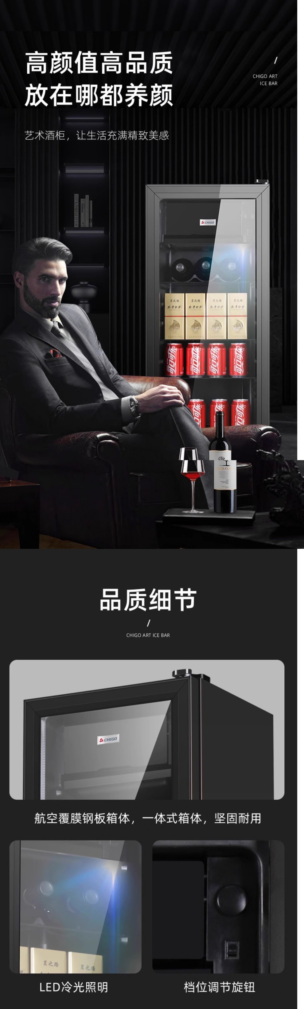 Chigo 아이스 바 와인 캐비닛 가정용 냉장 보존 캐비닛 투명 냉장고 사무실 차 레드 와인 물 음료 냉동 디스플레이스토어 가기