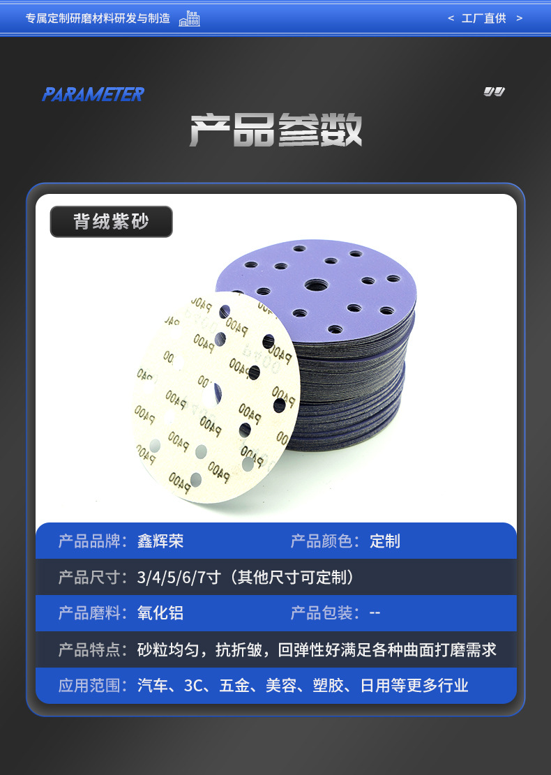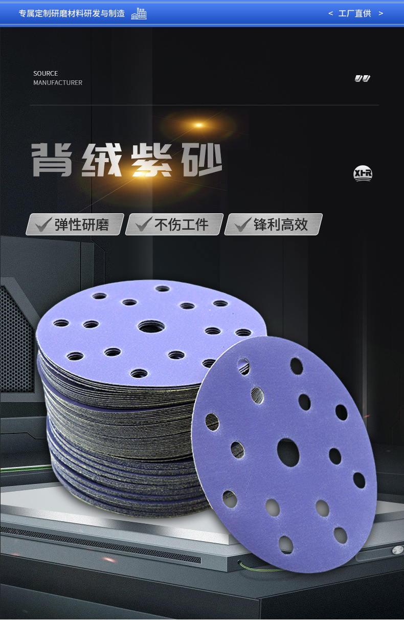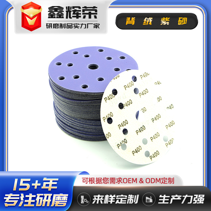 공장 도매 5 인치 6 인치 둥근 다공성 백 벨벳 보라색 모래 금속 연마 시트 자체 접착 스폰지 사포스토어 가기