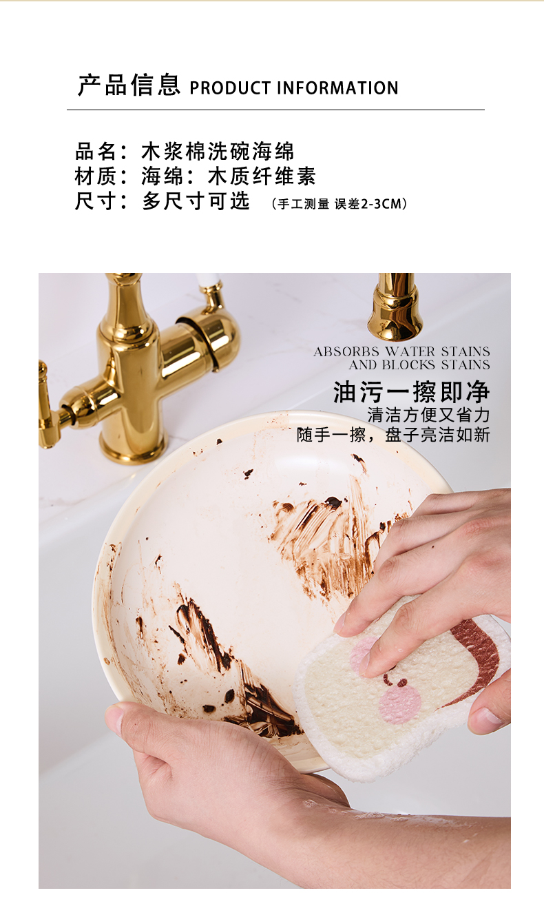 둥근 목재 펄프 면 스펀지, 거품 스펀지, 압축 수세미, 물을 흡수하고 기름이 들러붙지 않는 주방 설거지 및 냄비 세척 도구스토어 가기