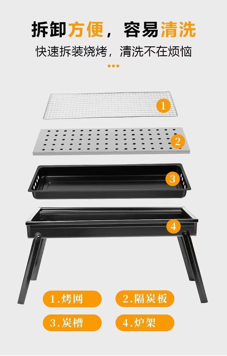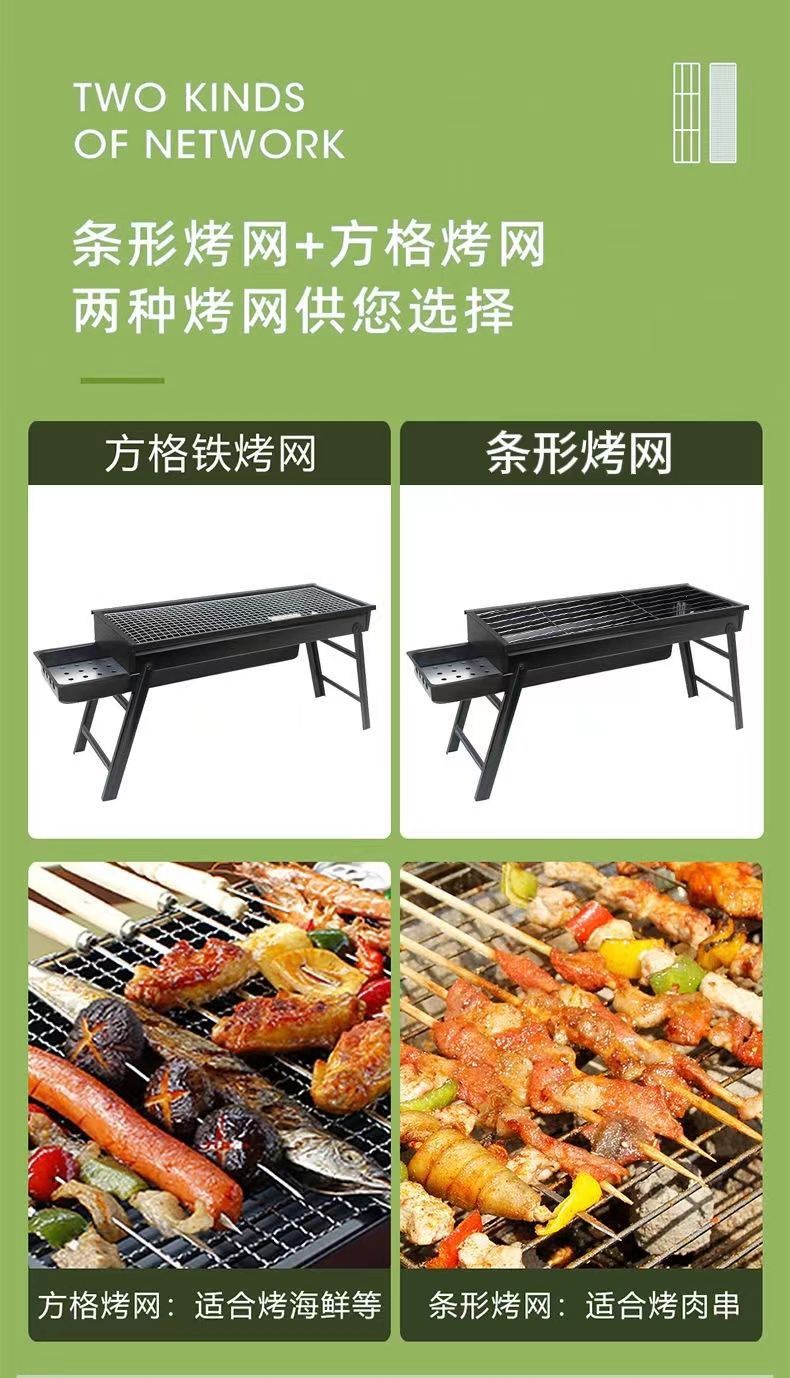 • 스트립 메쉬 긴 인출식 탄소 홈 접이식 바베큐 그릴 + 더블 조미료 테이블 + 4종 세트